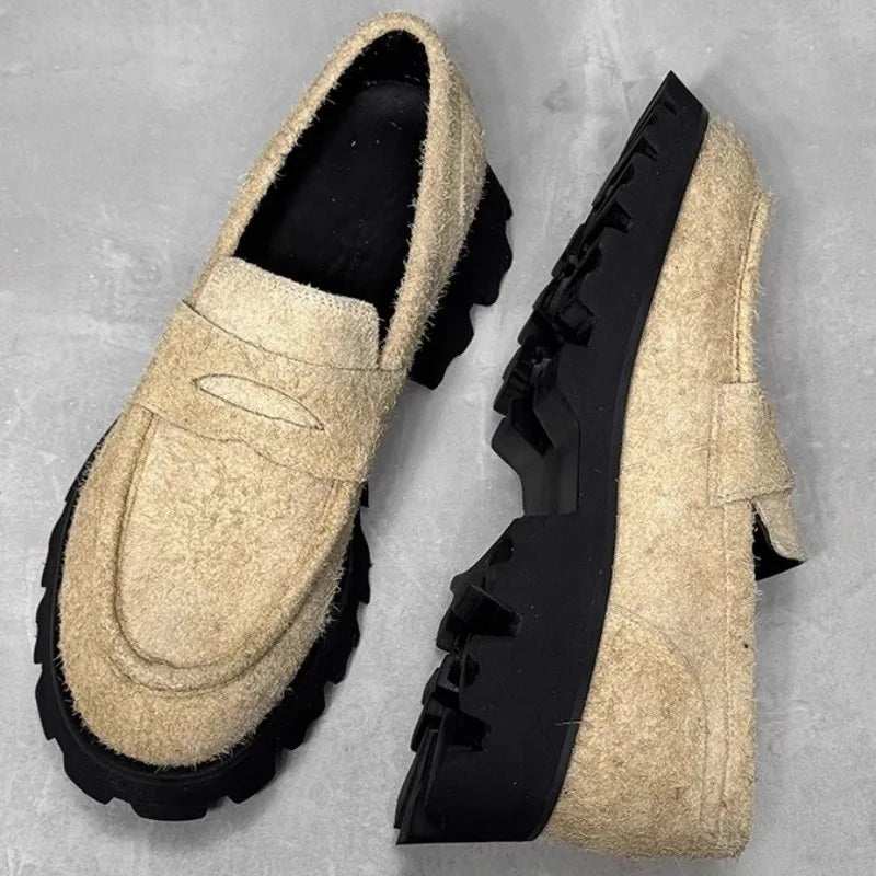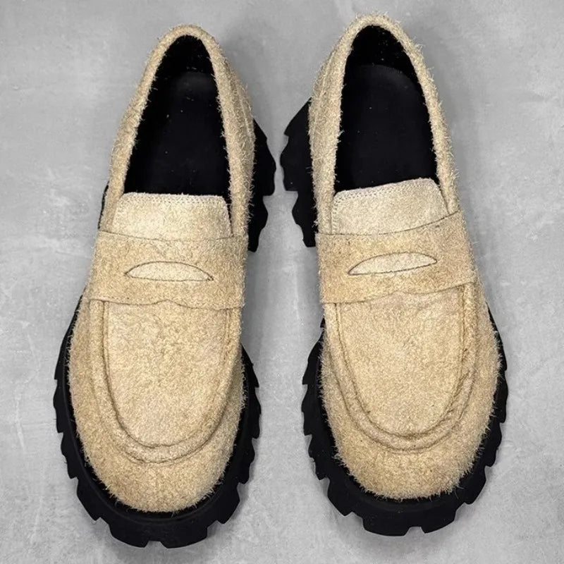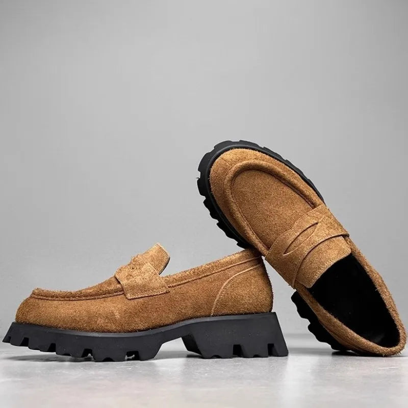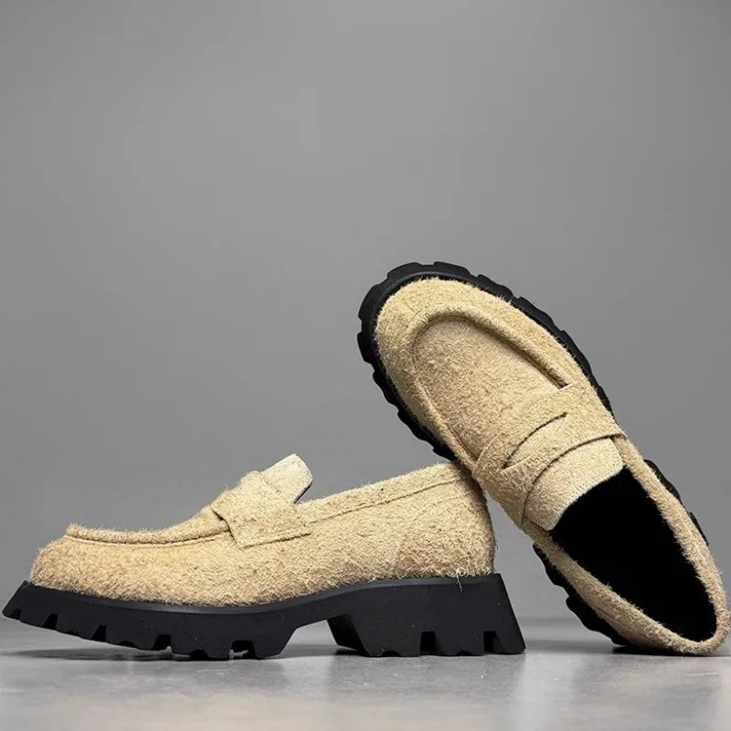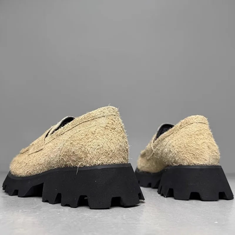 Handmade Cow Suede Slip On Hard-Wearing Platform Round Toe Casual Loafers for Men