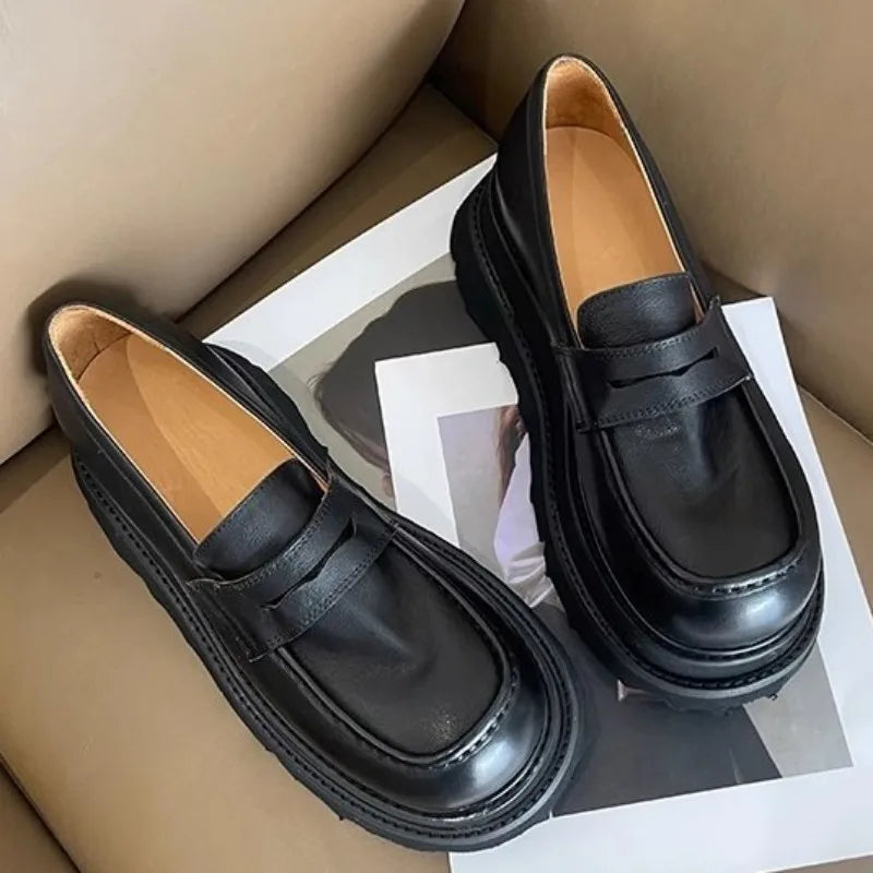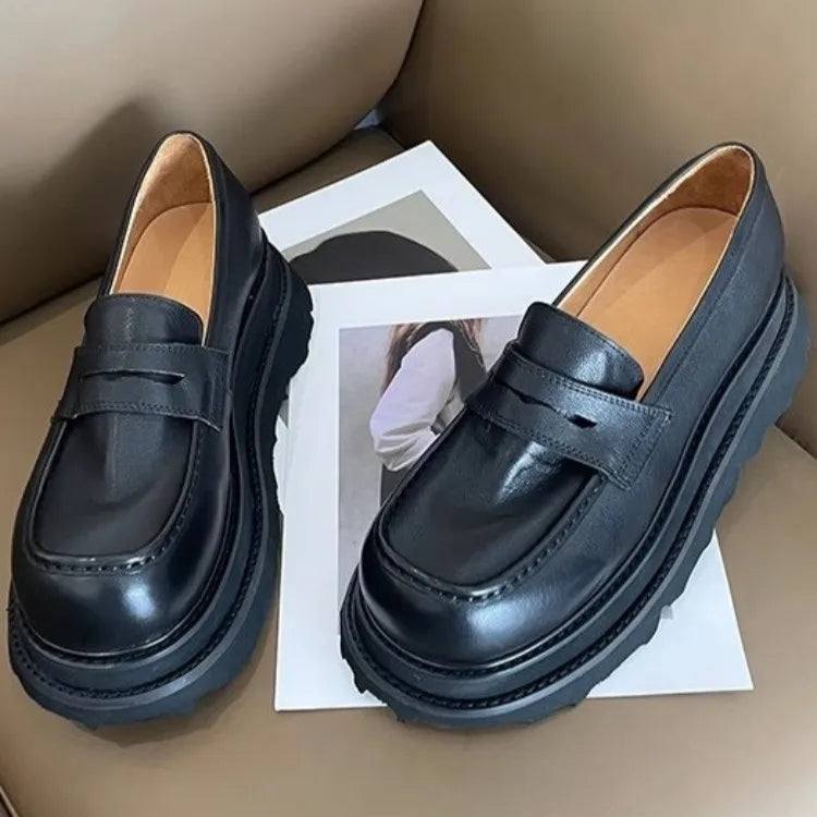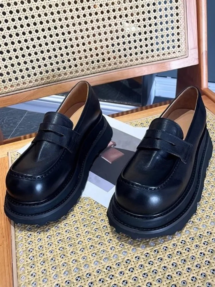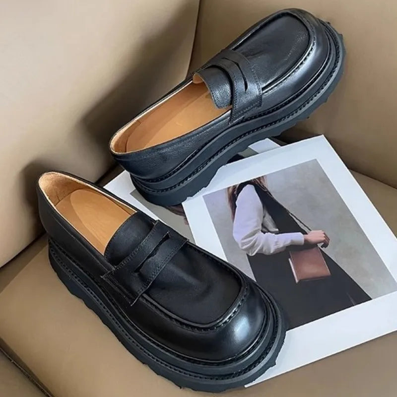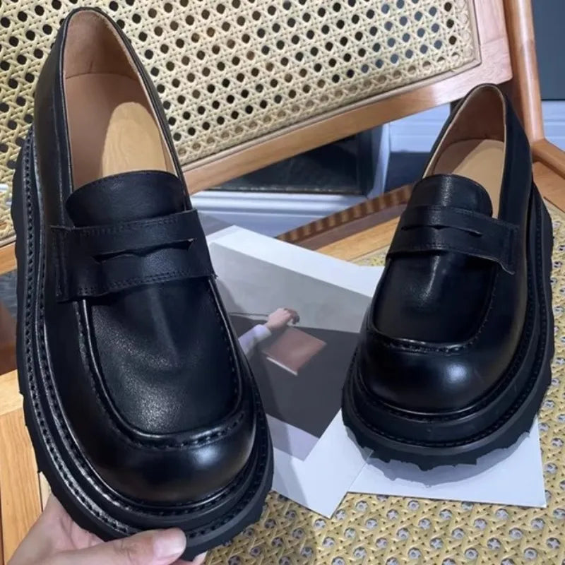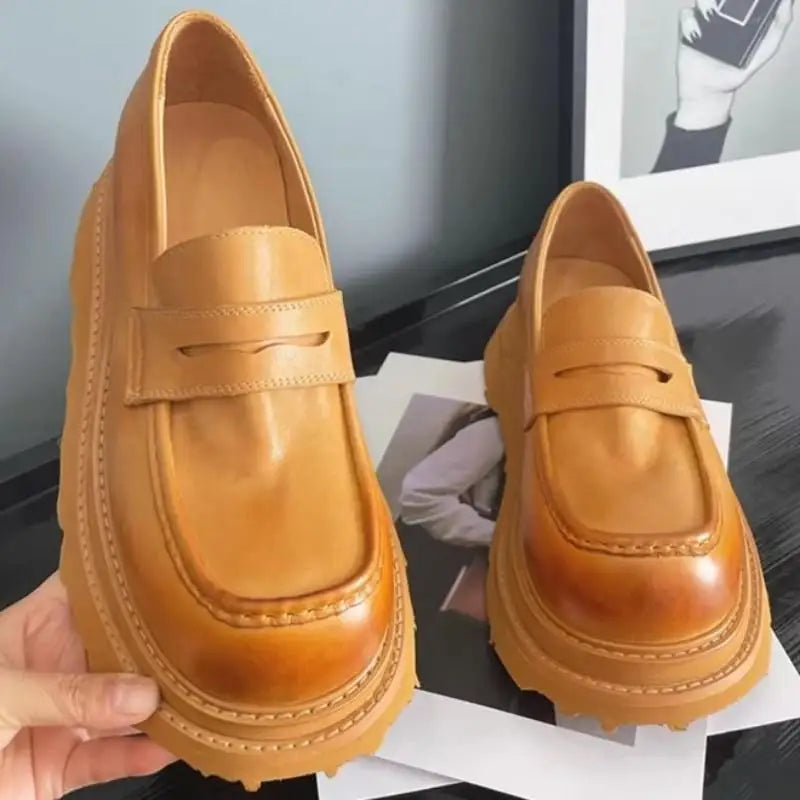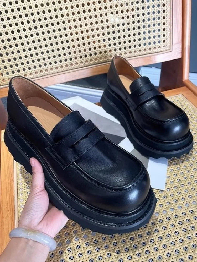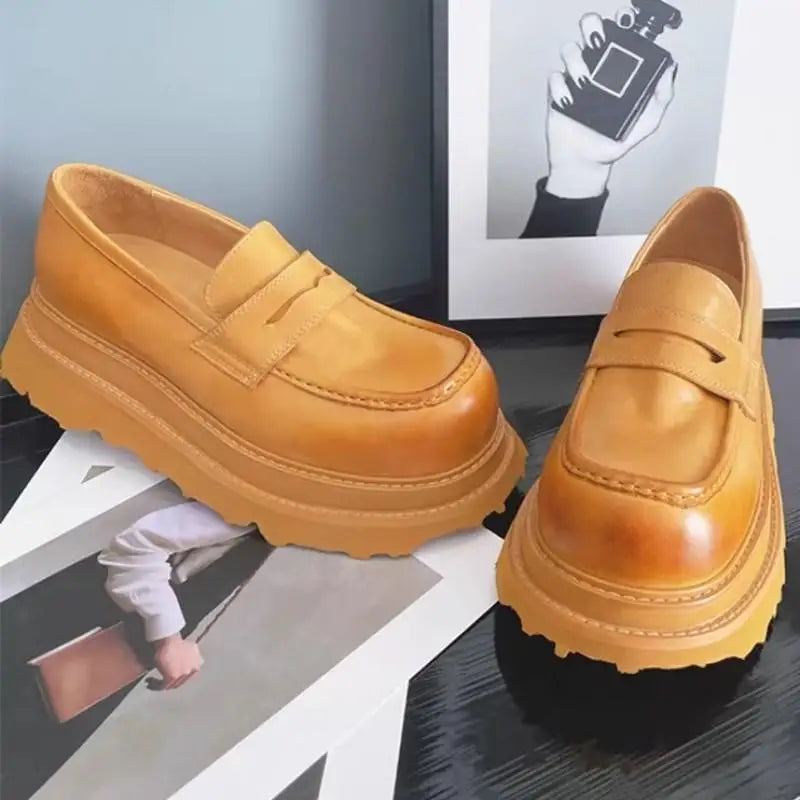 Men's Cowhide Solid Color Round Toe Height Increasing Designer Style Slip On Loafers