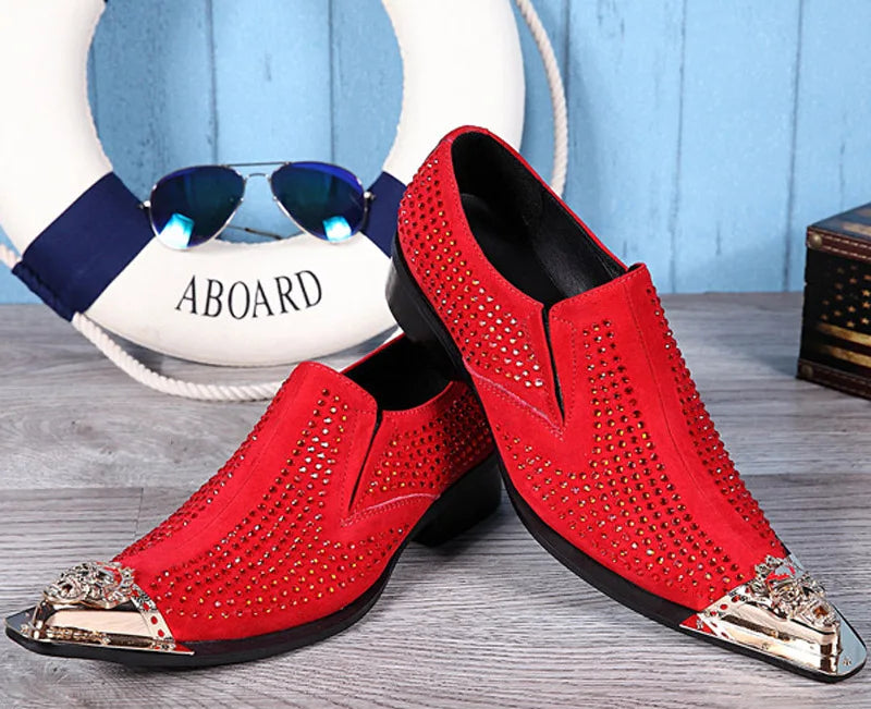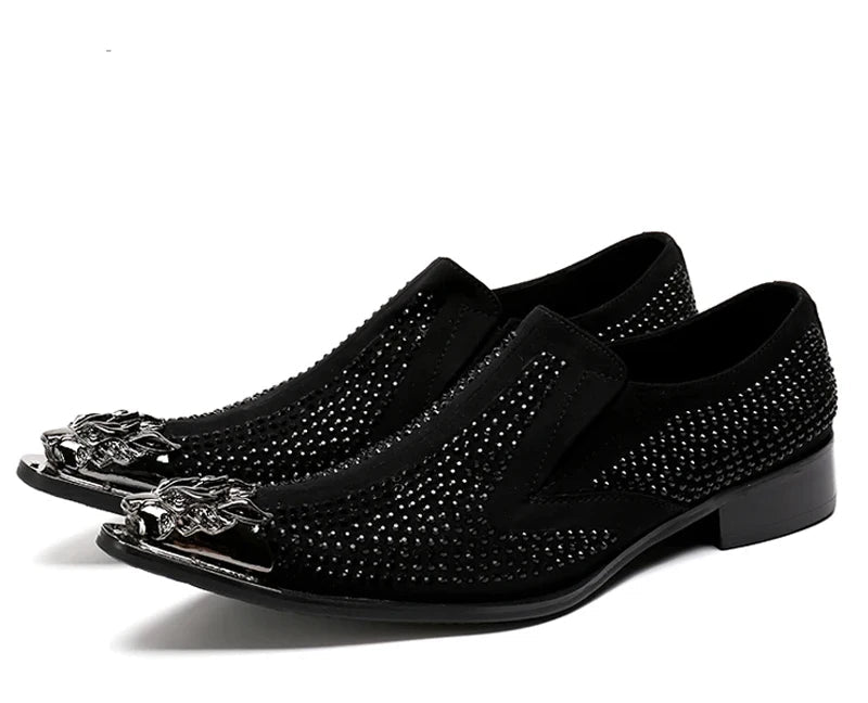 Men's Luxury Party Style Diamond Pointed Toe Wedding Dress Shoes