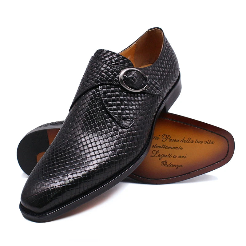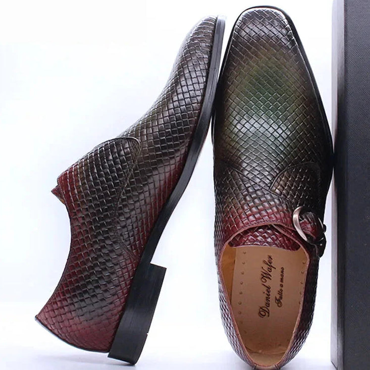 Luxury Office Wedding Party Classic Monk Strap Buckle Plaid Dress Shoes
