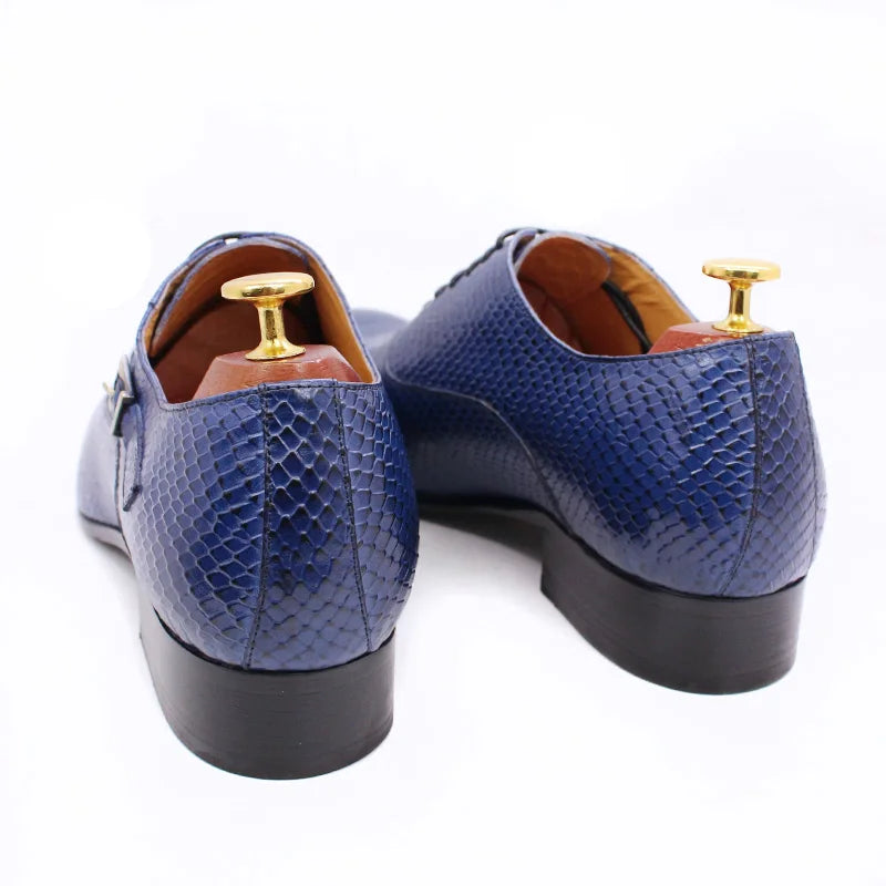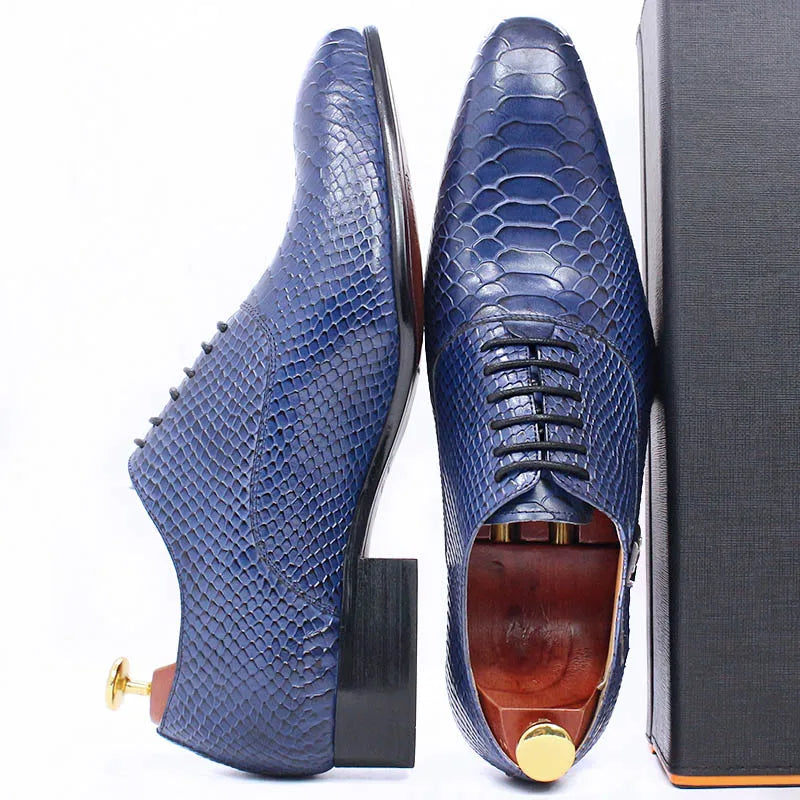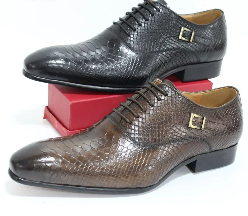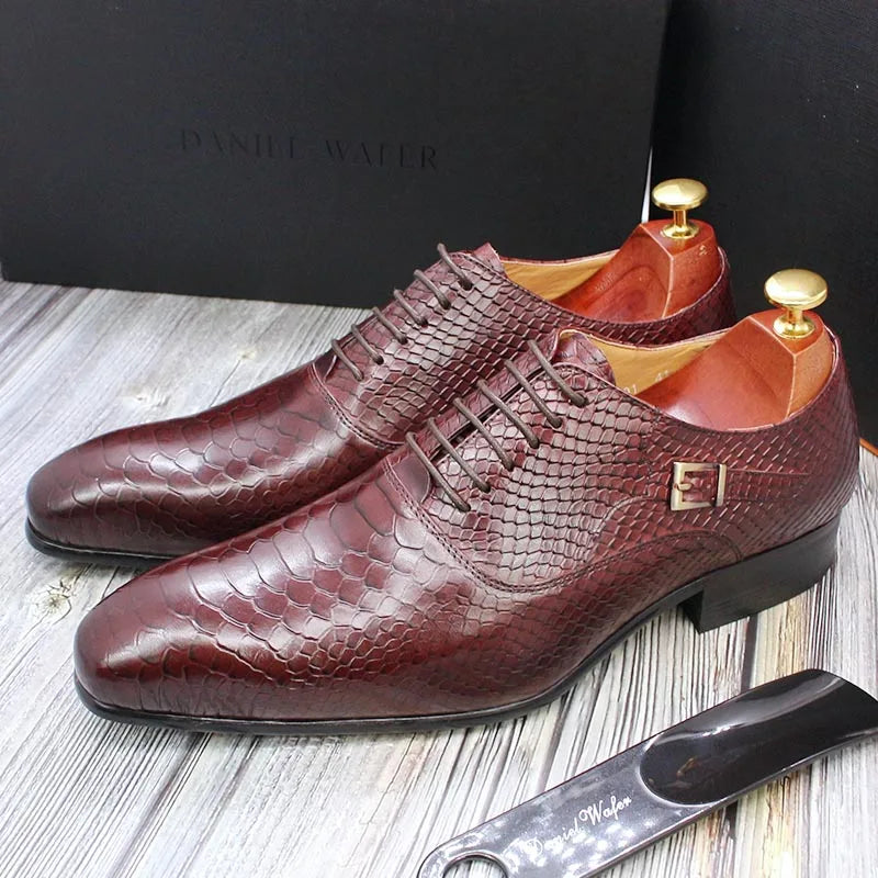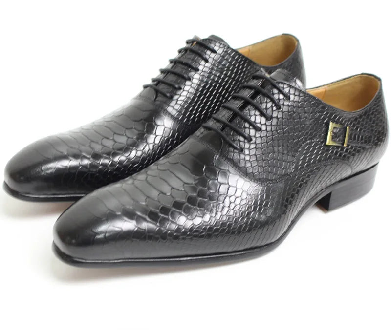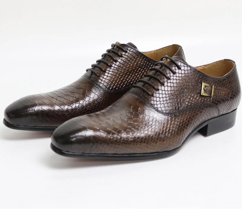 Men's Snake Skin Print Pointed Toe Lace-Up Classic Dress Oxford Shoes