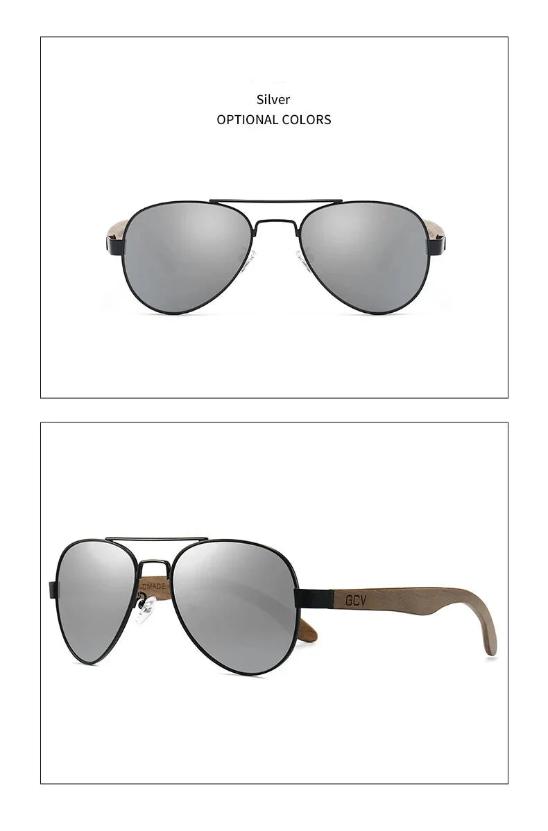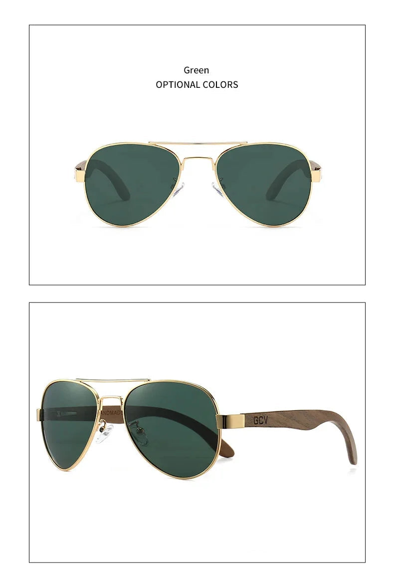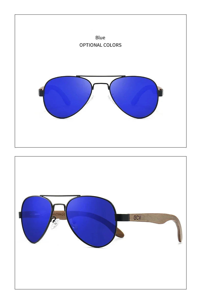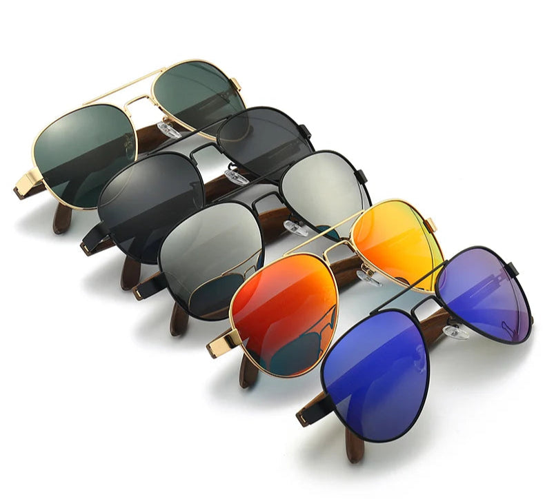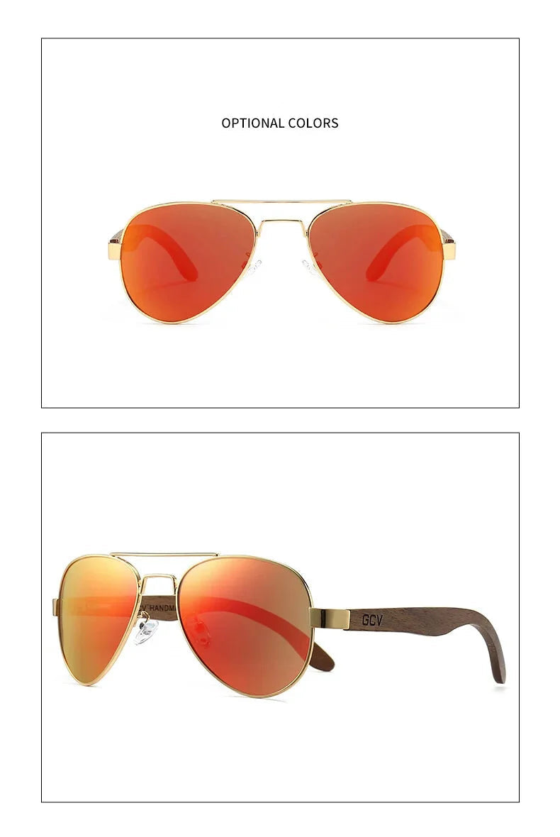 Handmade Walnut Wood Polarized UV400 Protection Mirror Pilot Sunglasses for Men