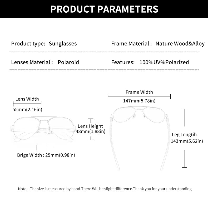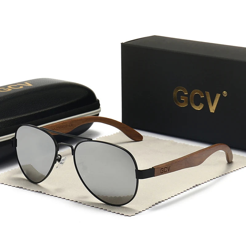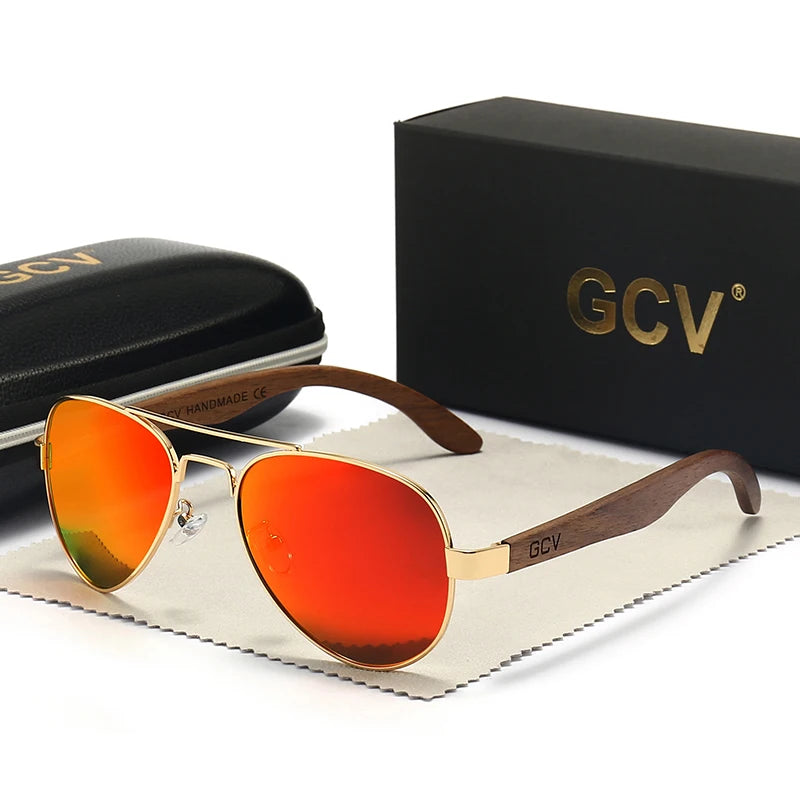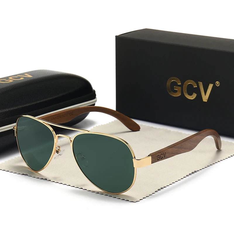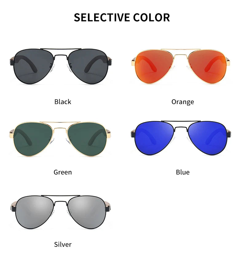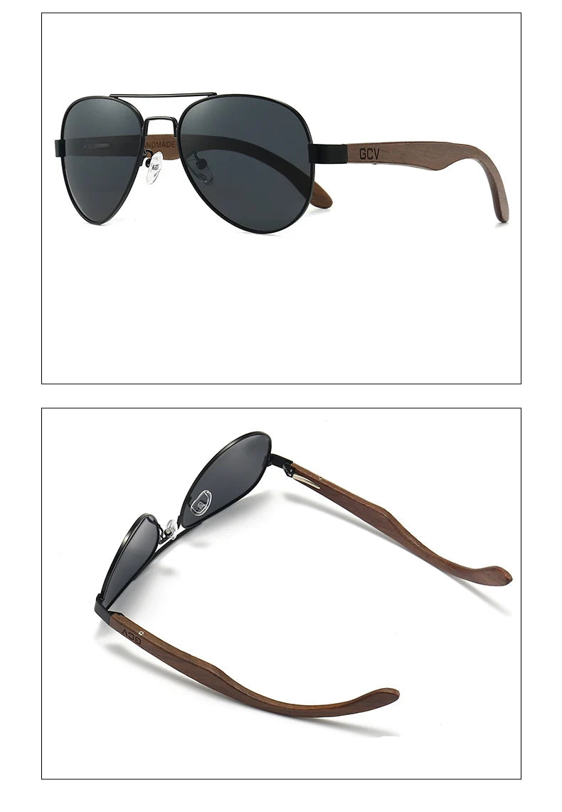 Handmade Walnut Wood Polarized UV400 Protection Mirror Pilot Sunglasses for Men