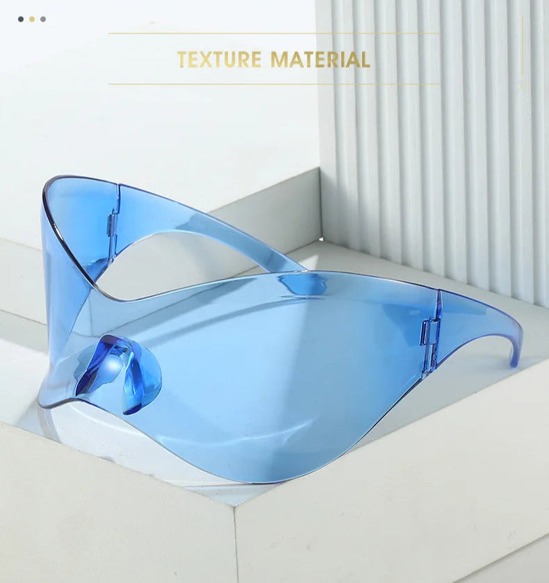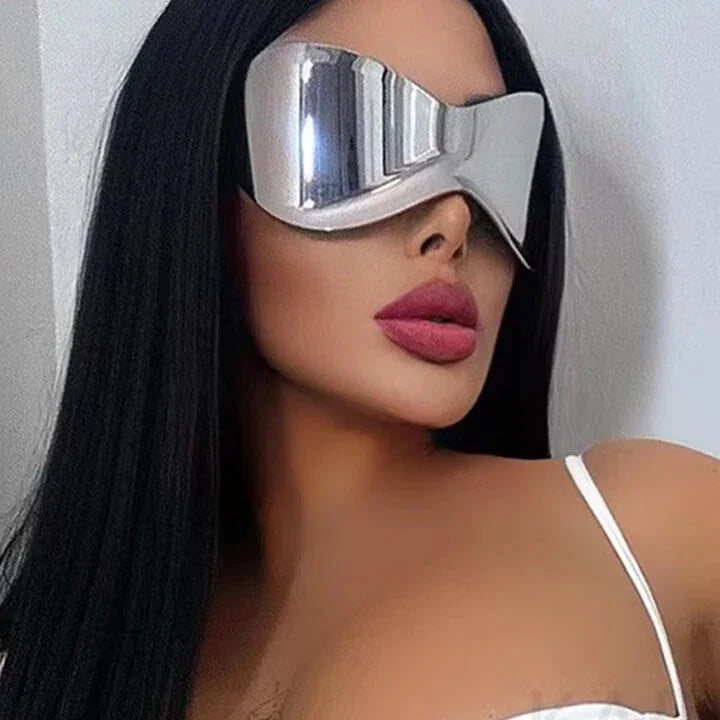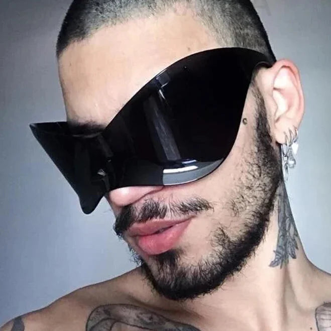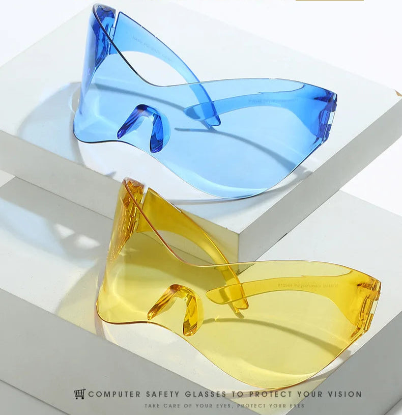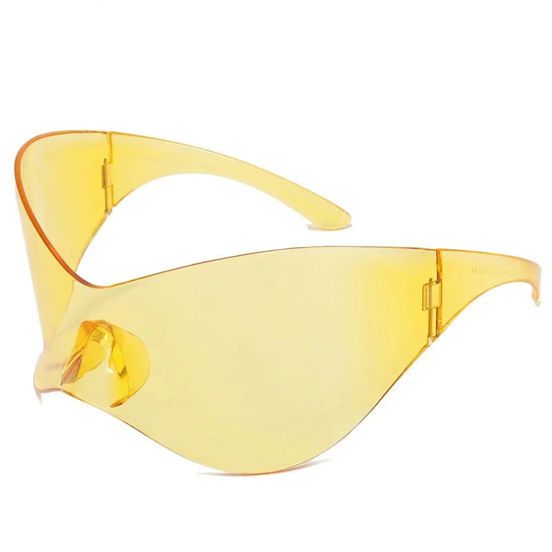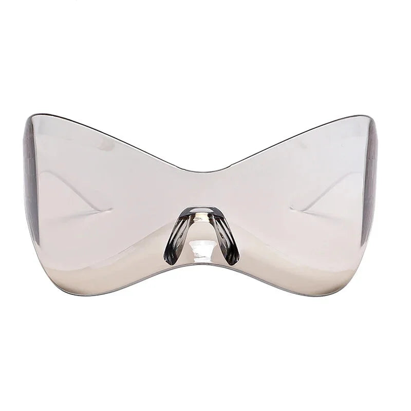 Oversized Punk Sports Wrap Around Rimless Mask Shield Sunglasses for Women and Men