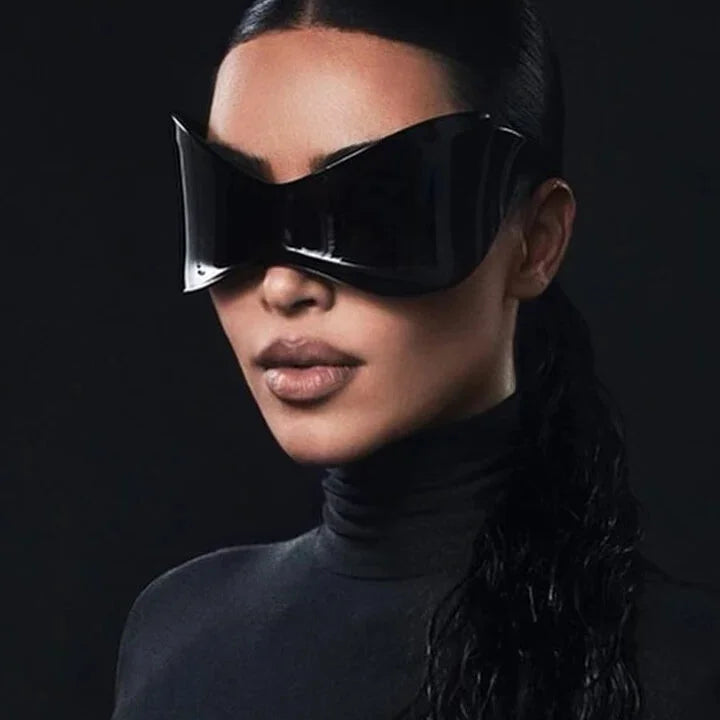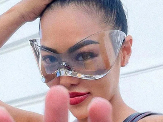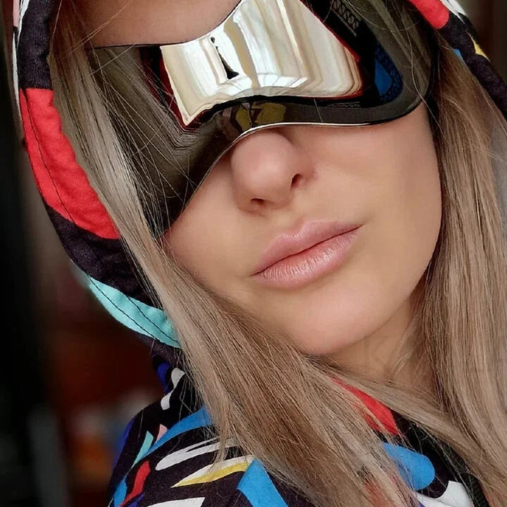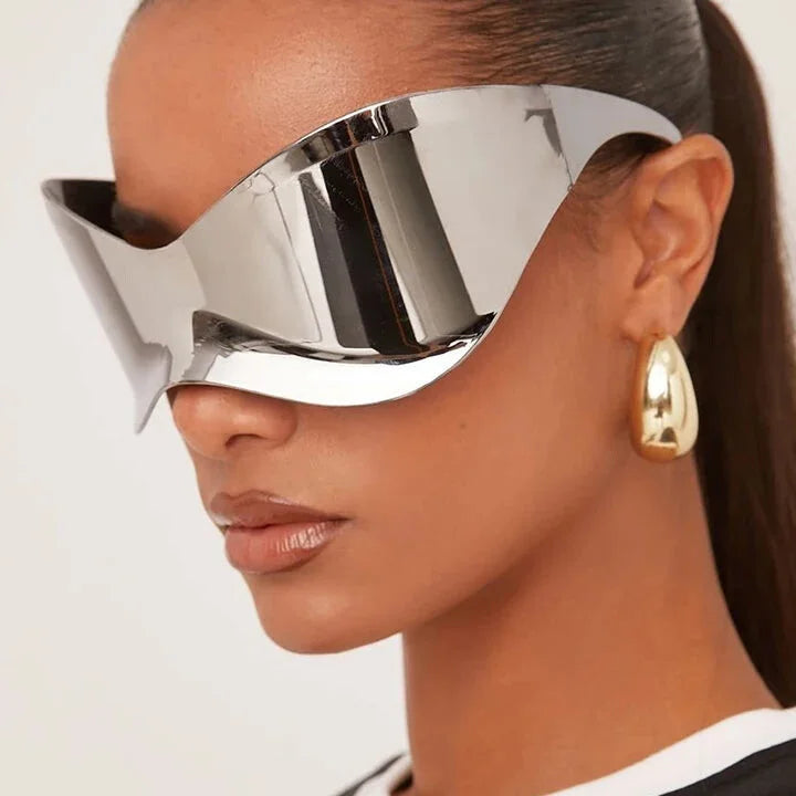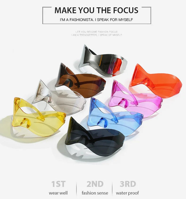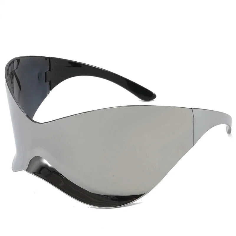 Oversized Punk Sports Wrap Around Rimless Mask Shield Sunglasses for Women and Men