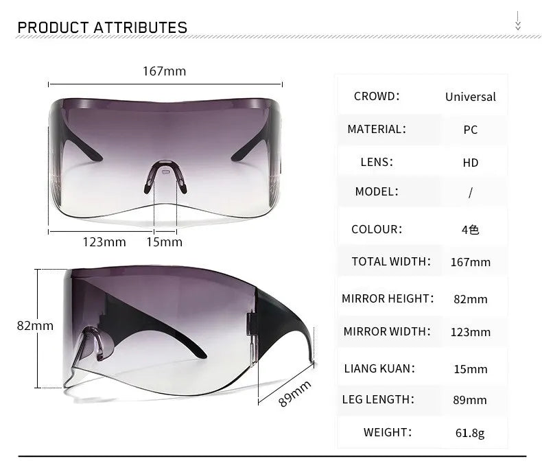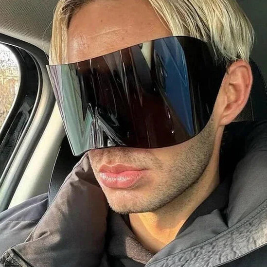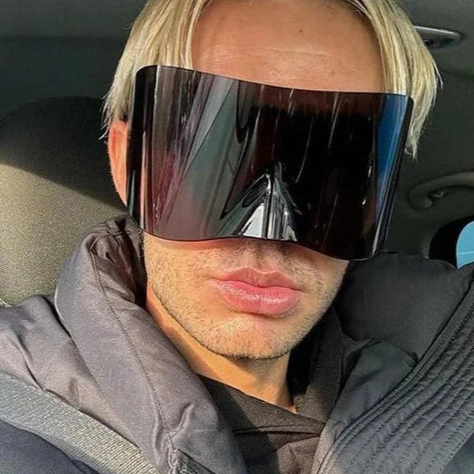 Punk Fashion Oversized Rectangle Mask Shield Sunglasses for Men and Women