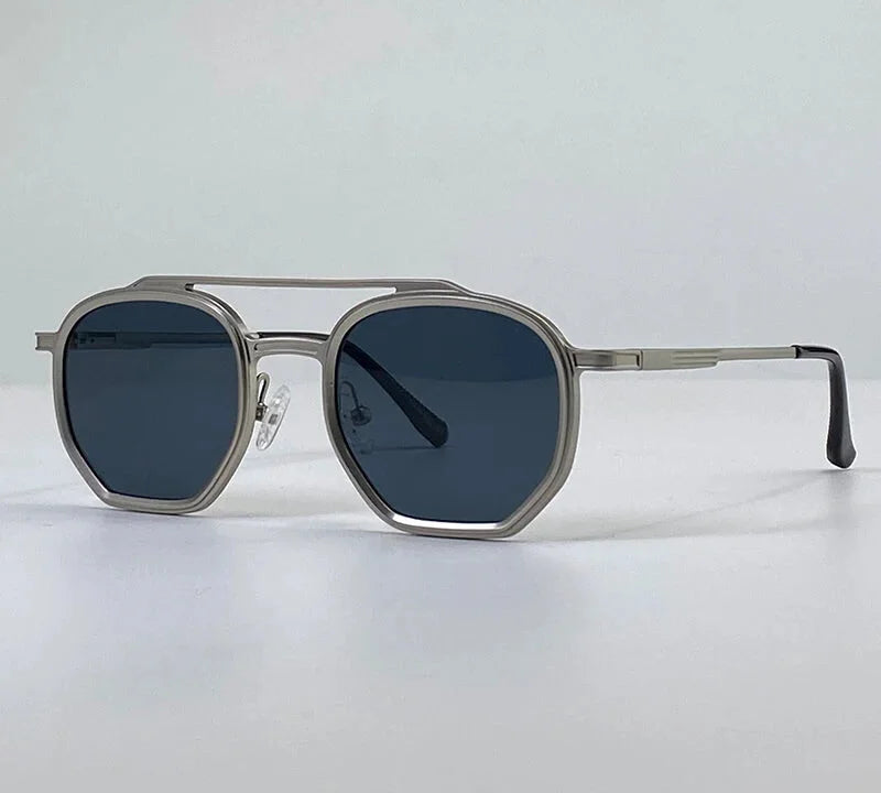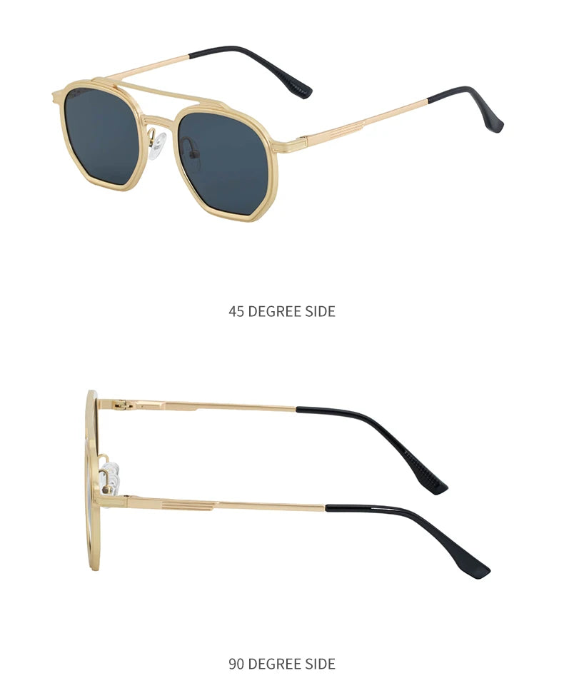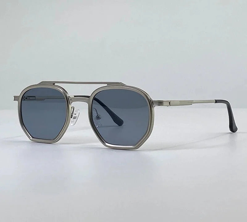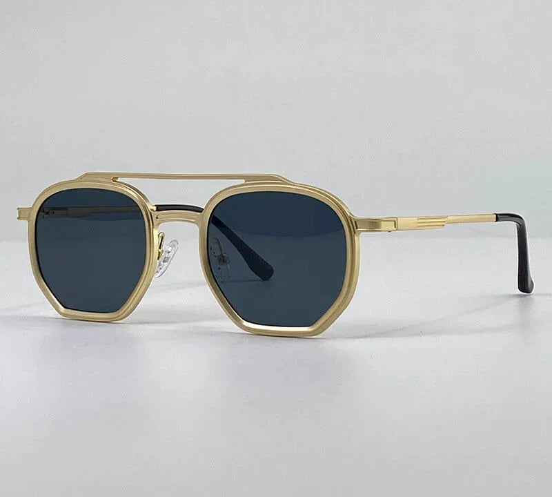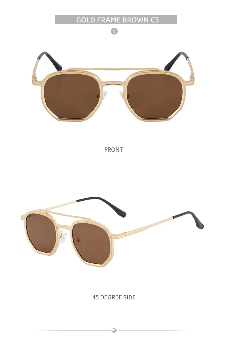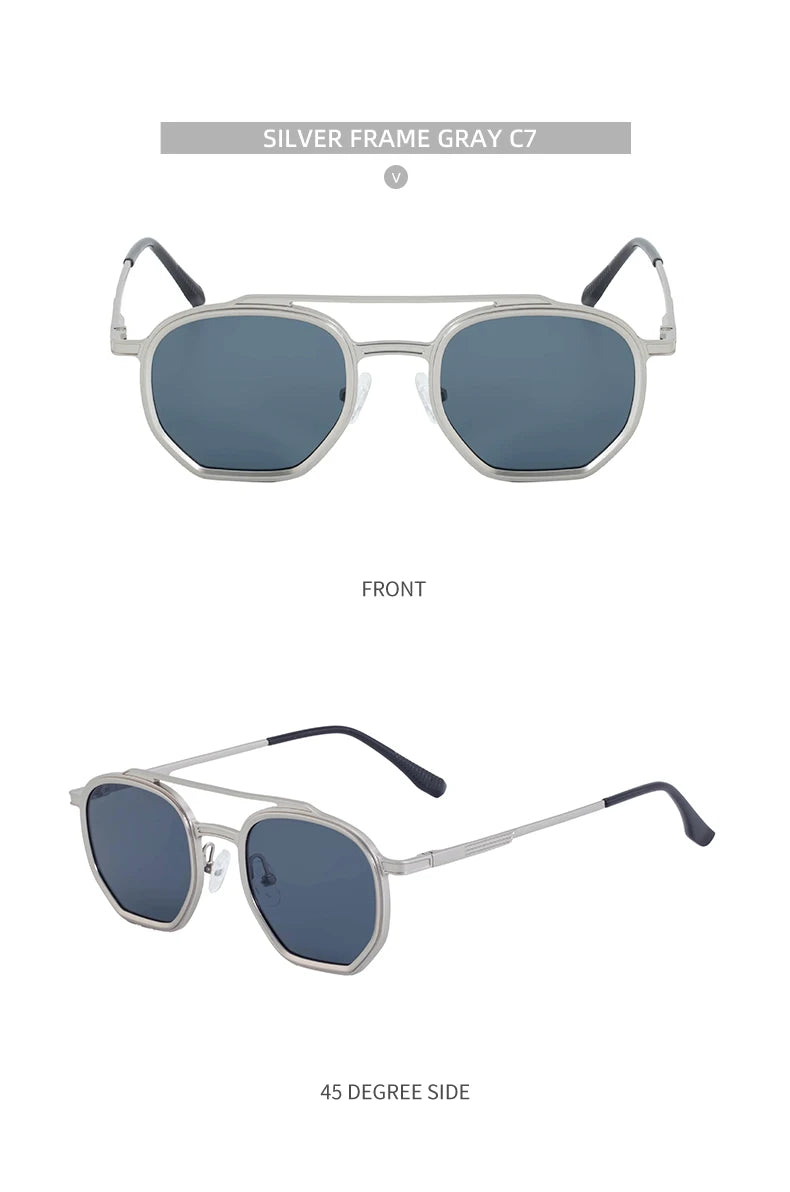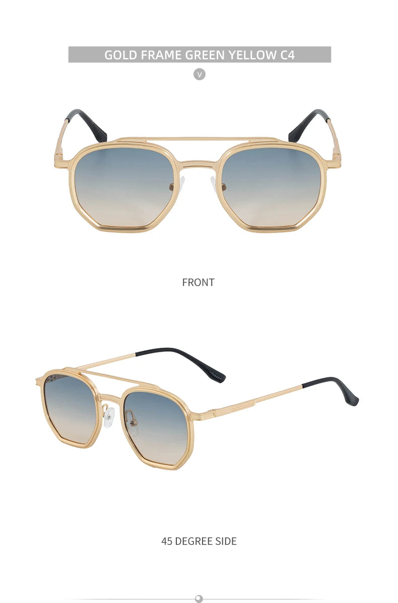 Small Metal Frame Square Double Beam Classic Steampunk Sunglasses for Men