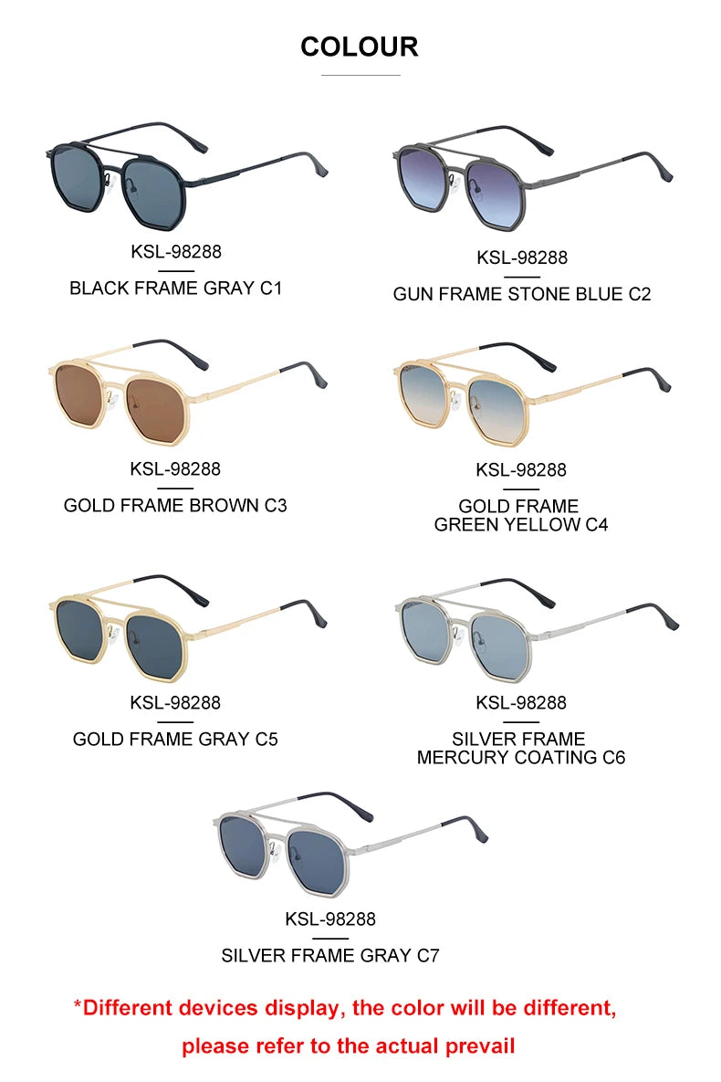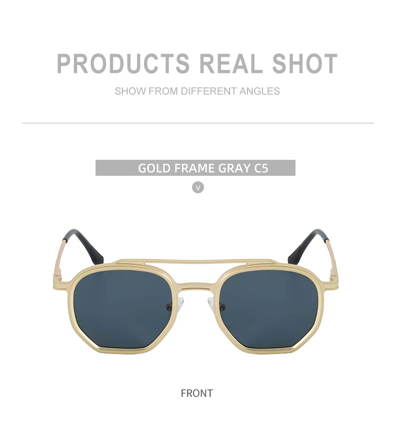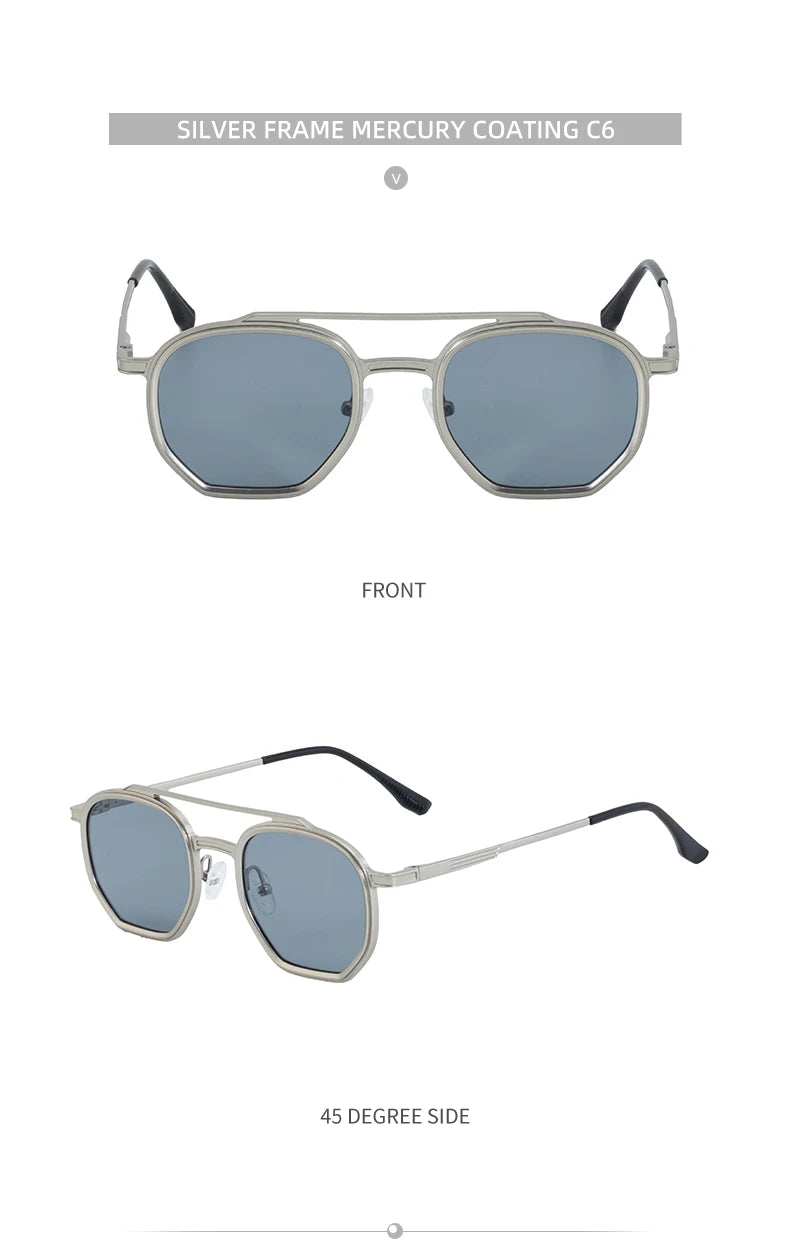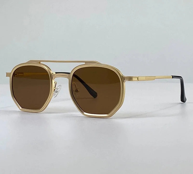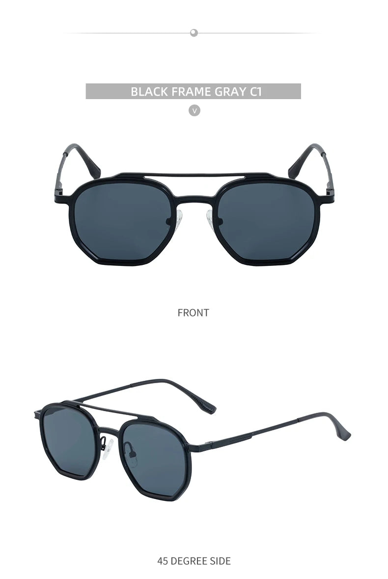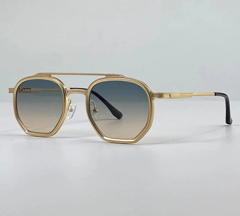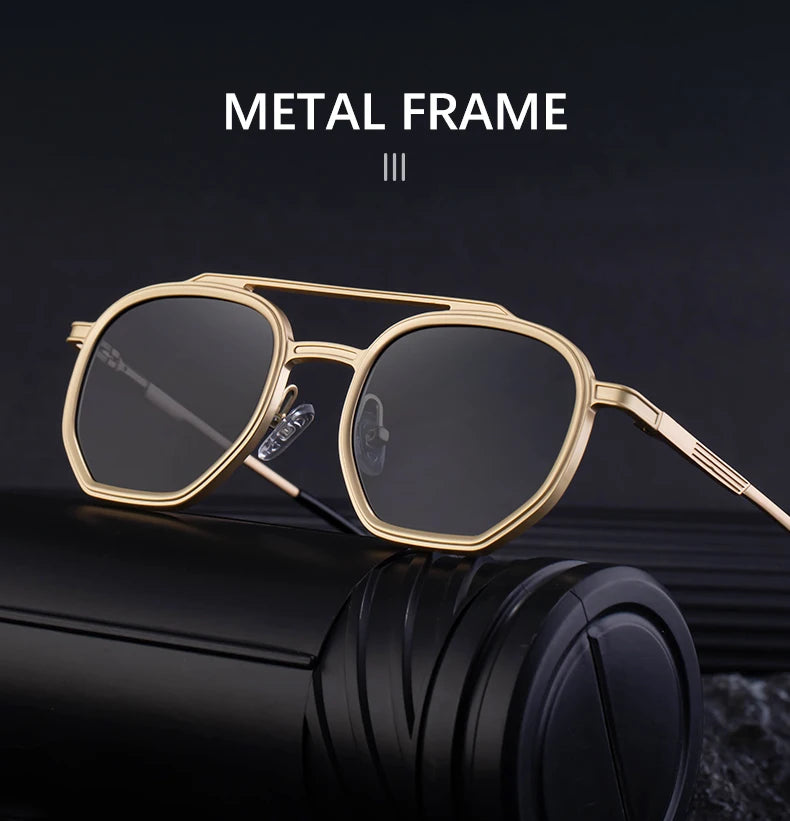Small Metal Frame Square Double Beam Classic Steampunk Sunglasses for Men