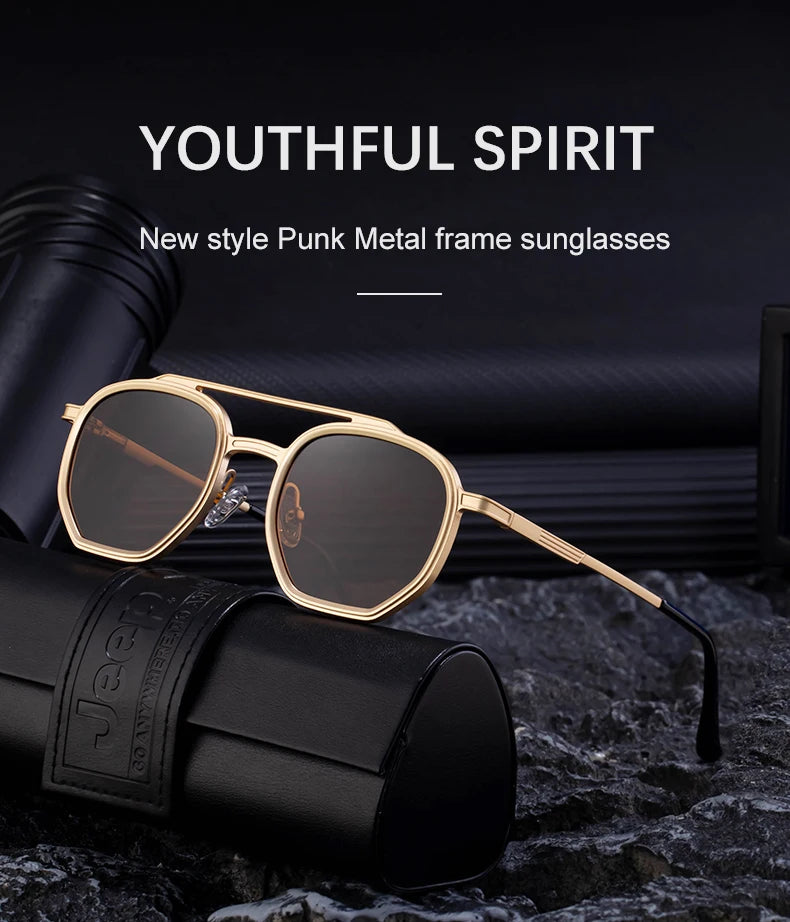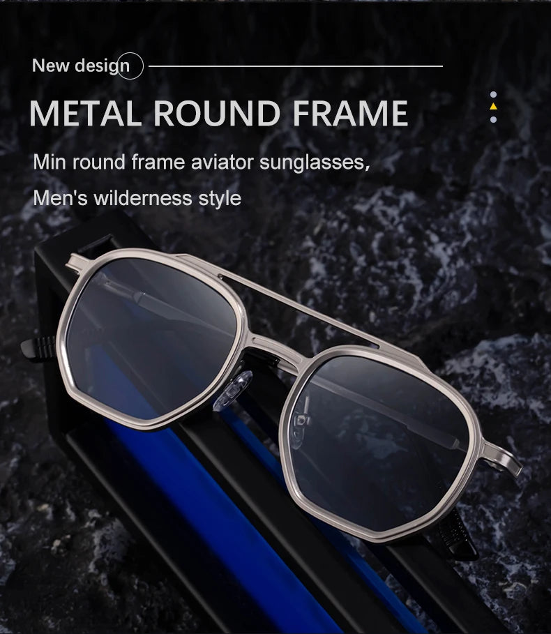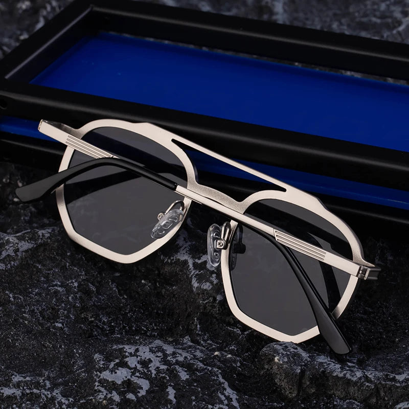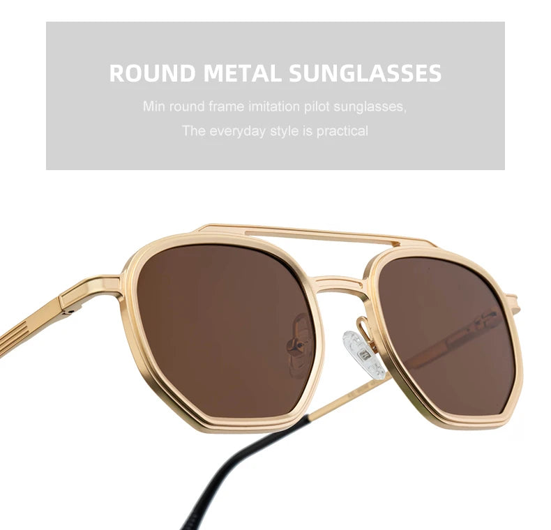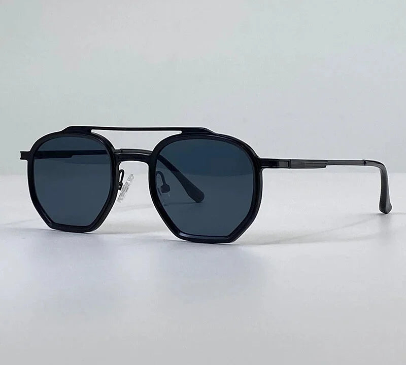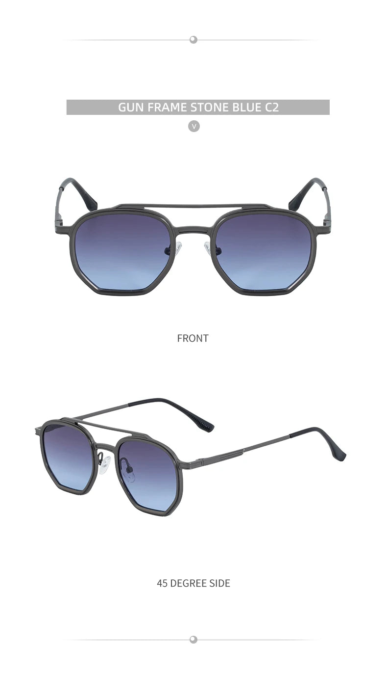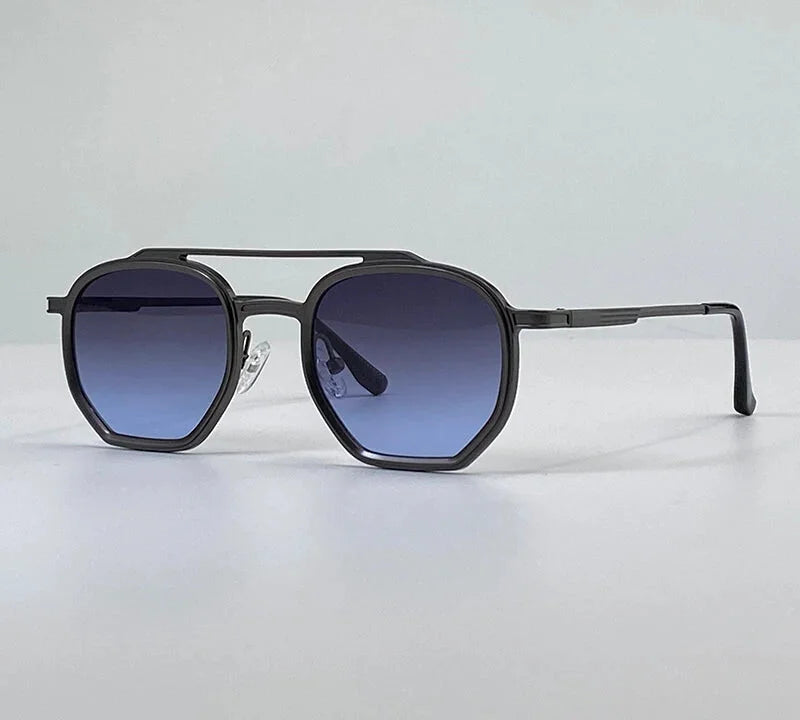 Small Metal Frame Square Double Beam Classic Steampunk Sunglasses for Men