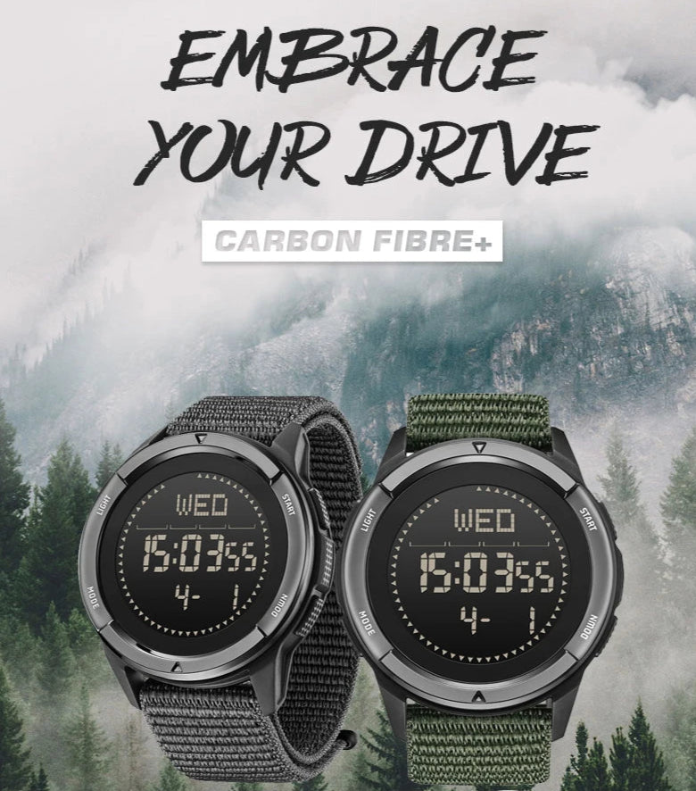 Men's Digital Carbon Fiber Super Light Compass Waterproof 50M Sports Watch