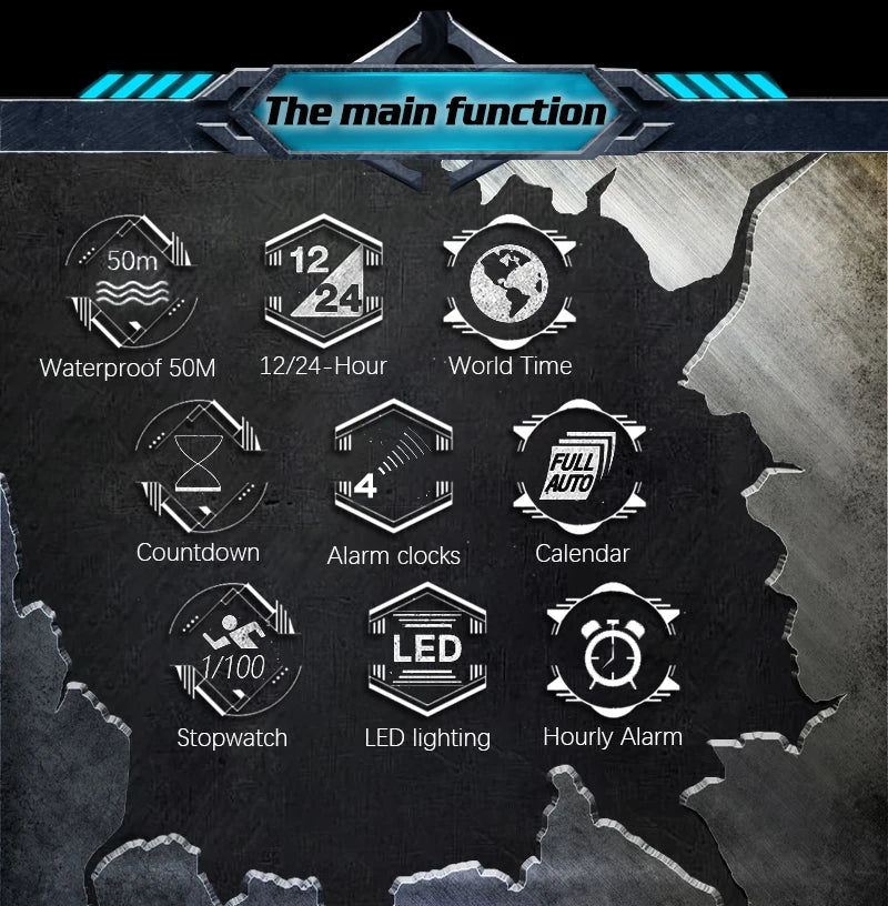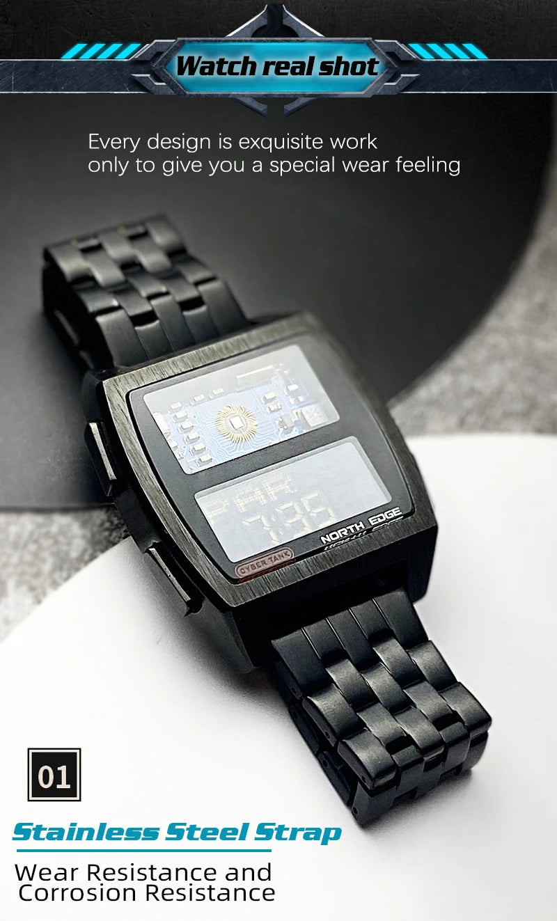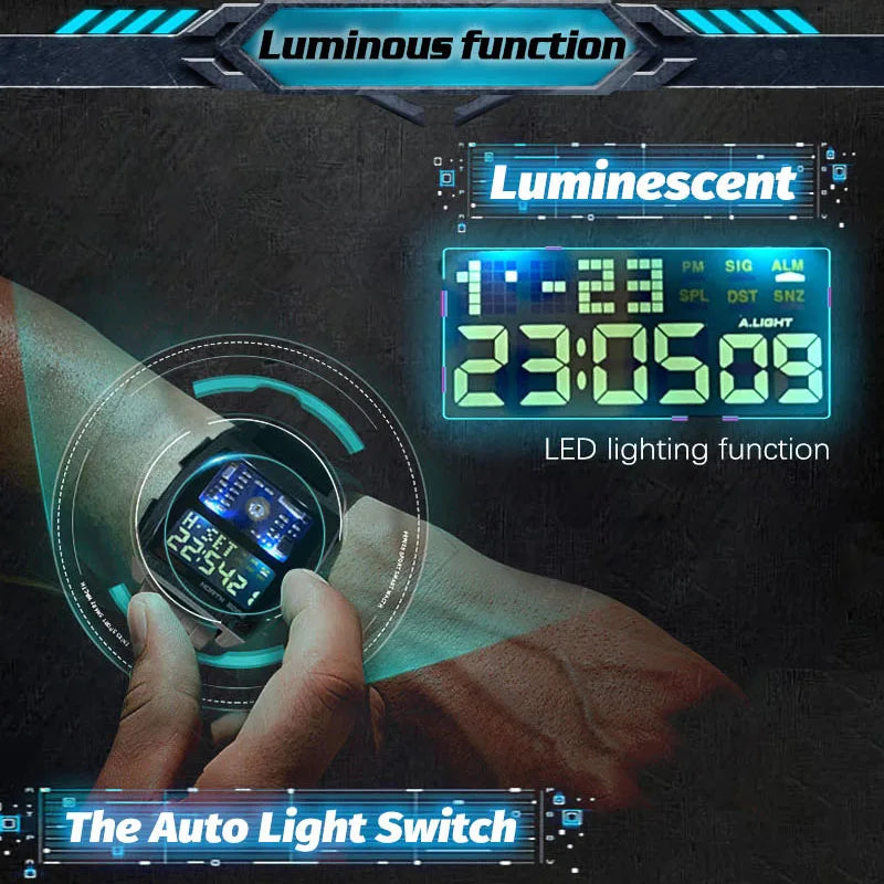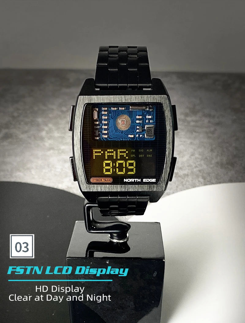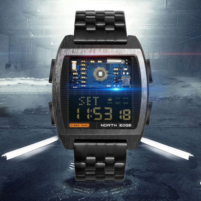 Men's Digital Retro Industrial Metal Style Waterproof 50M Sports Watch