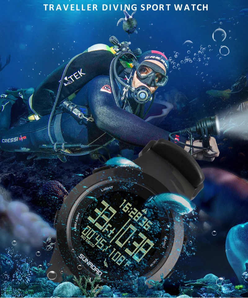 Unisex 100M Waterproof Military Compass Altitude Pedometer Professional Diving Sports Watch
