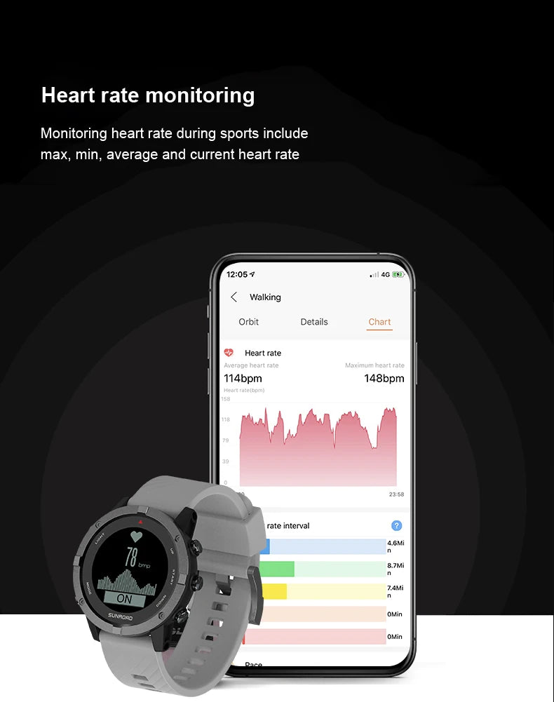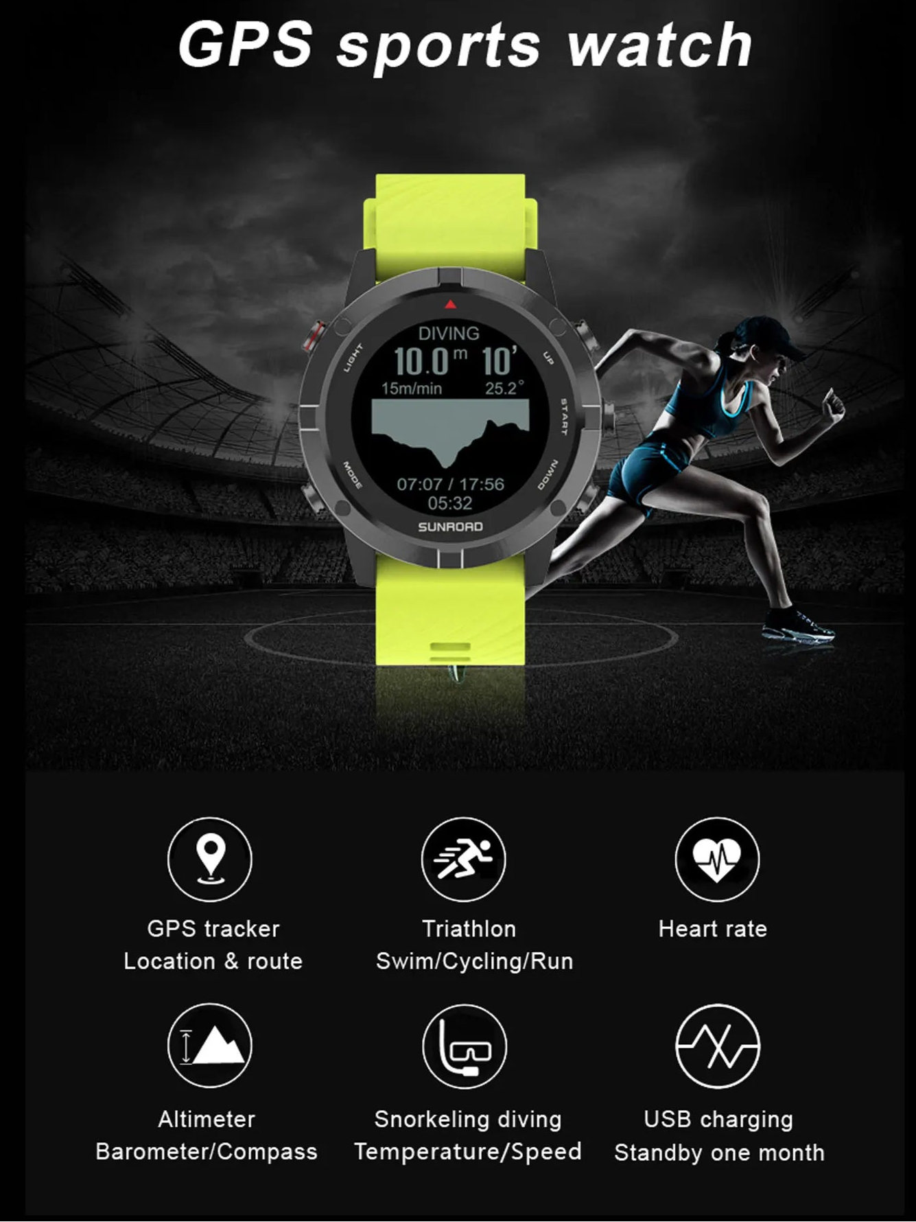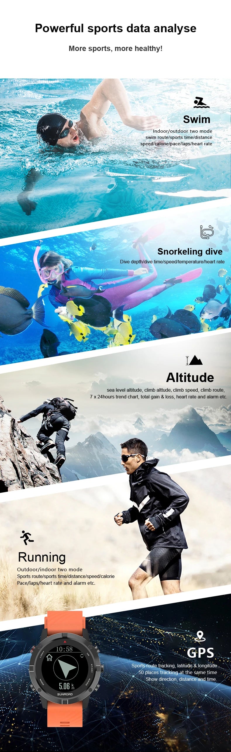 Unisex 5ATM Waterpoof GPS Compass Outdoor Sports Fitness Tracker Watch