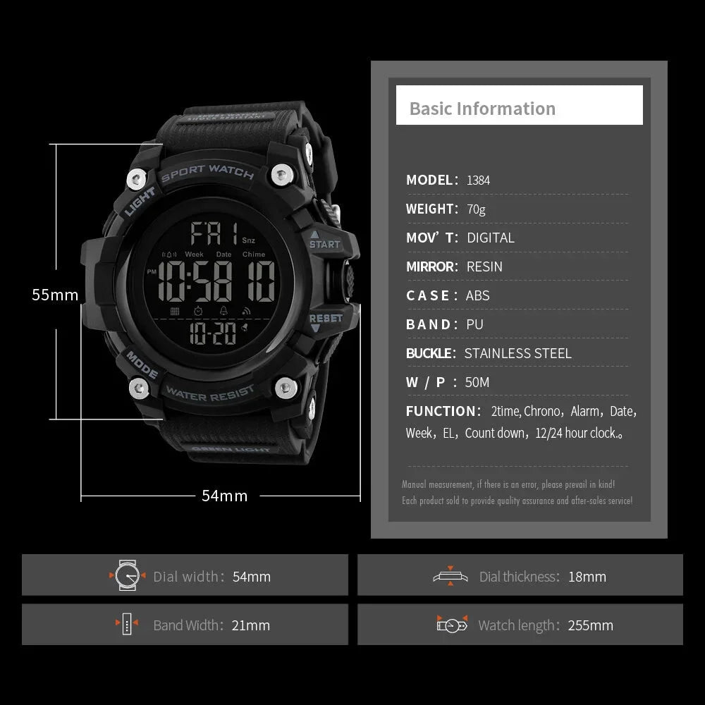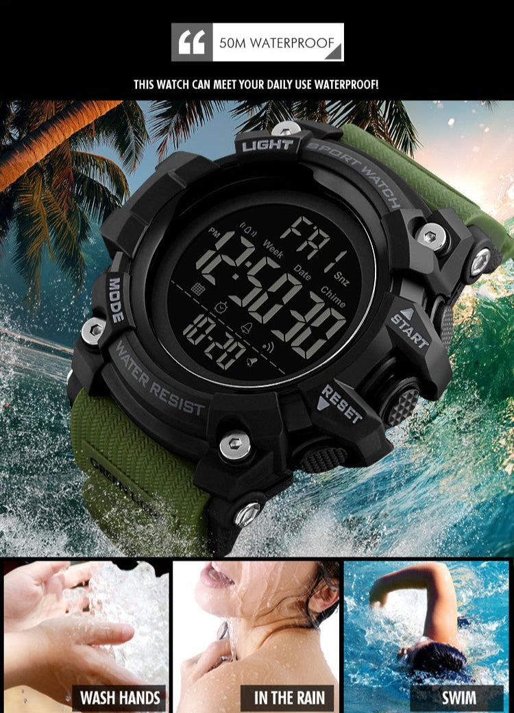 Luxury Style Waterproof LED Electronic Digital Countdown Stopwatch Sports Watch for Men