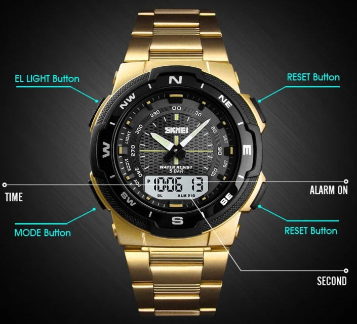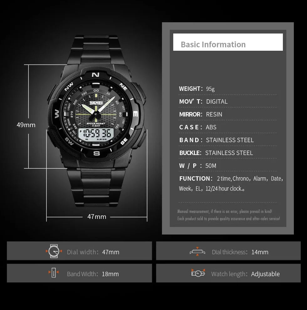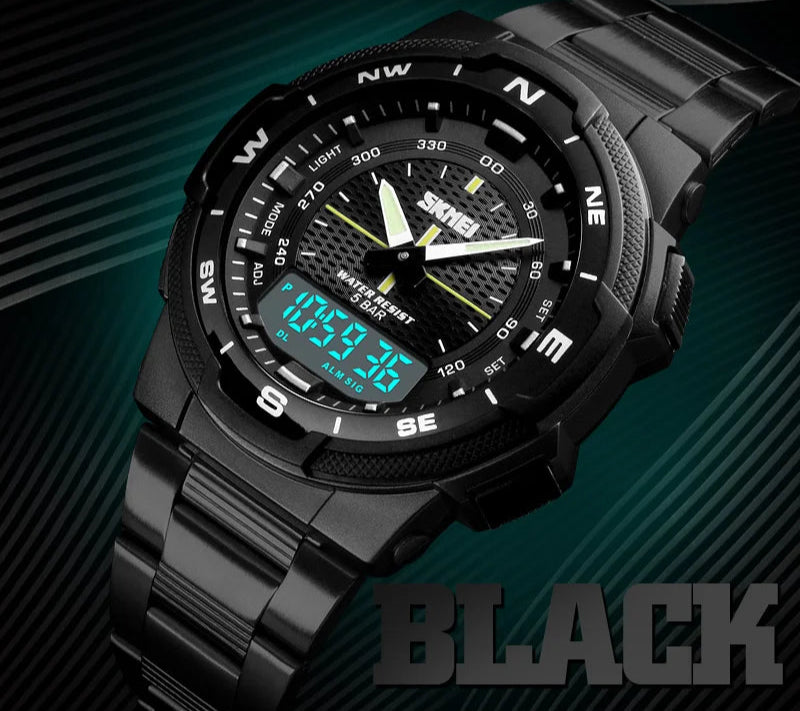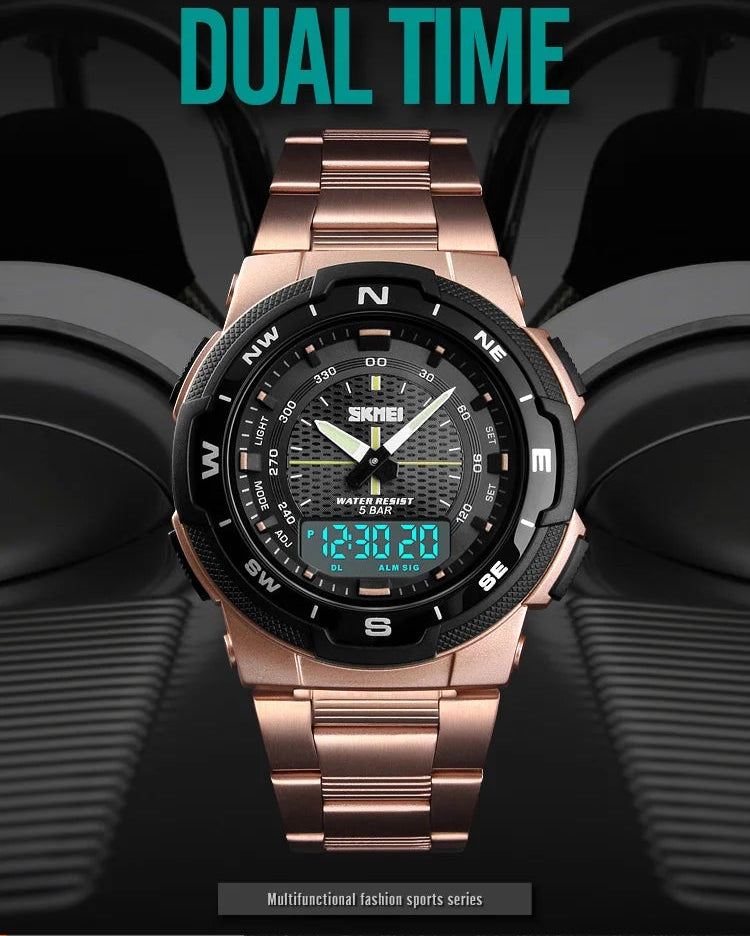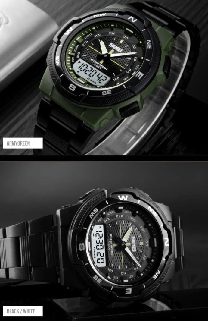 Men's Outdoor Sports Style Analog Digital 50m Waterproof Dual Time Quartz Watch