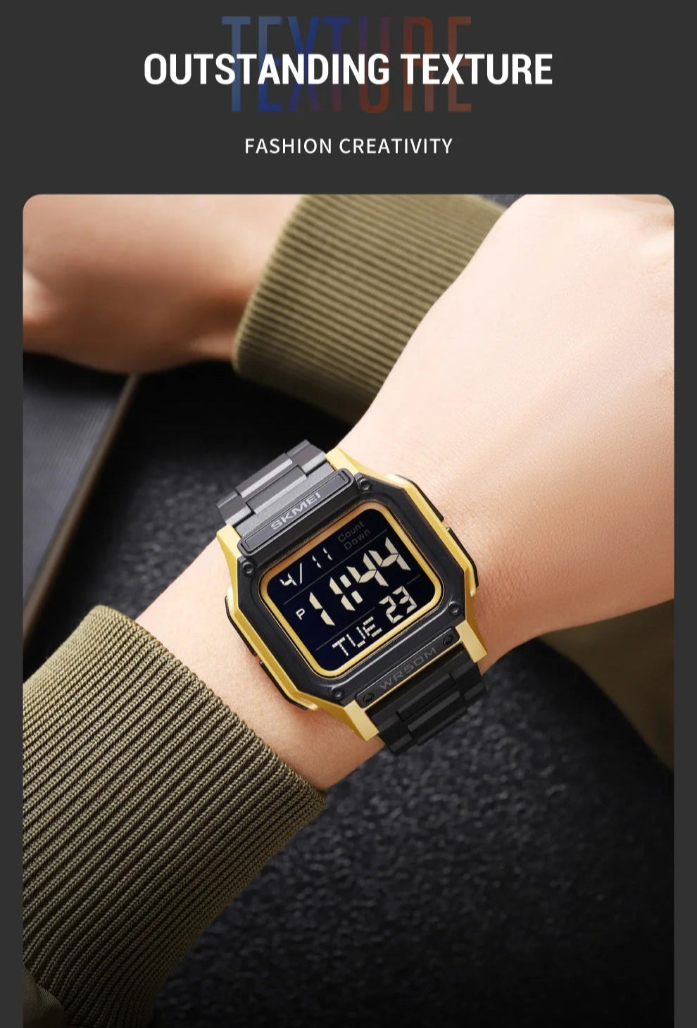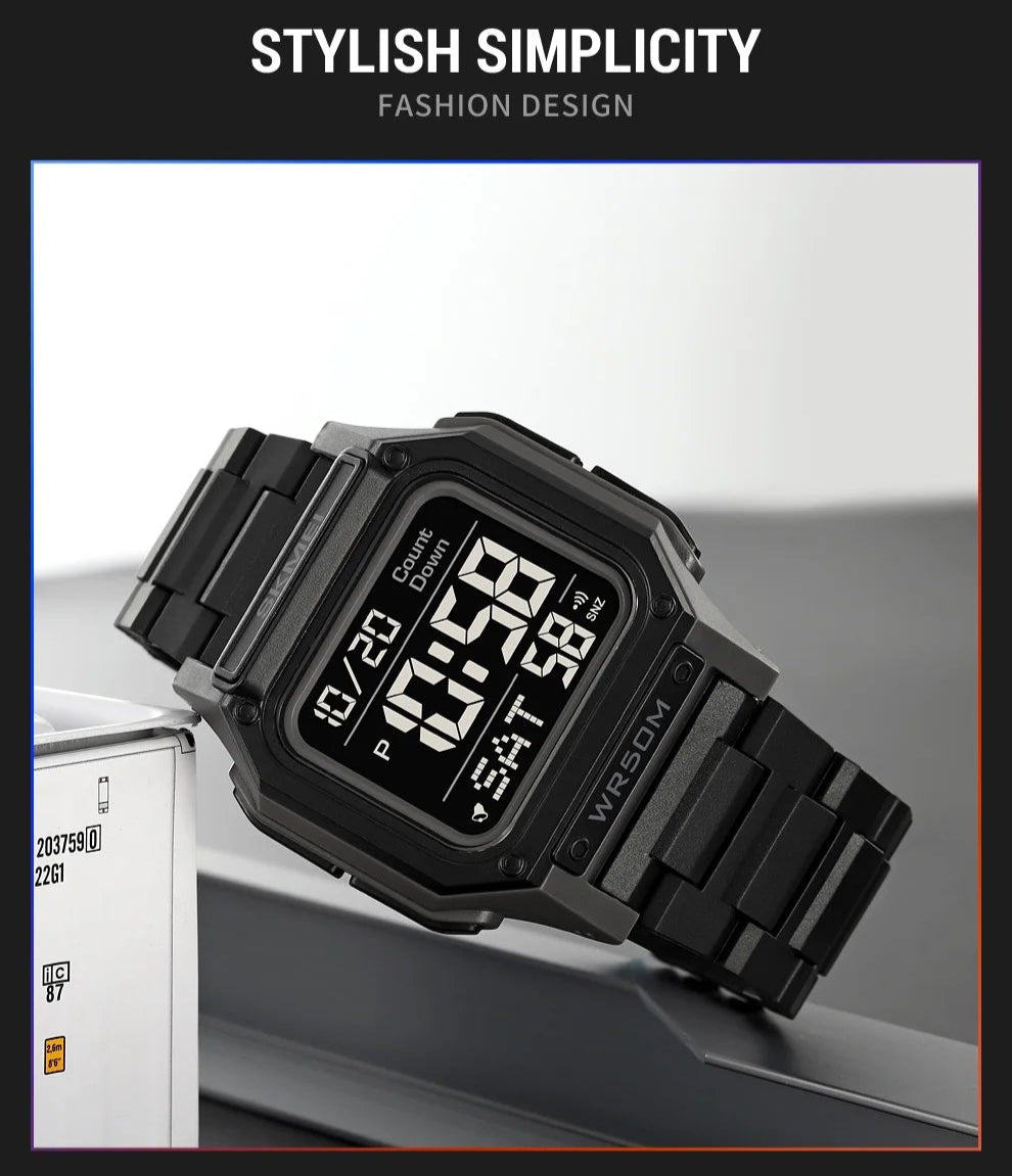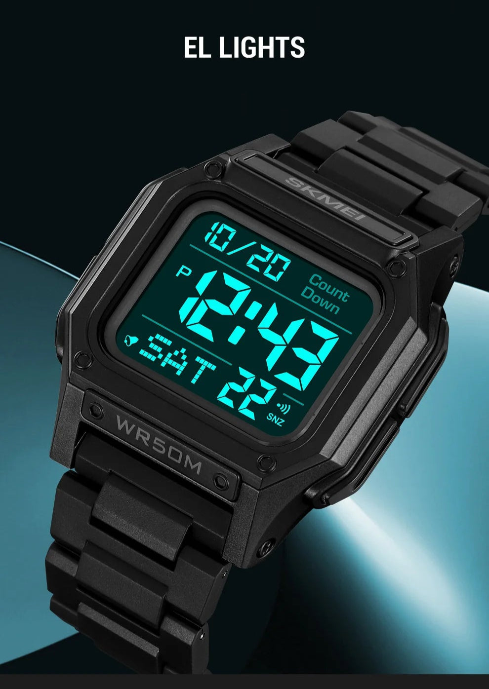 Complementing any outfit effortlessly, this elegant and stylish men's digital watch will make you look great and stylish. The square digital display and the EL light facility make it easy to read the time. Designed with a countdown, alarm, stopwatch and water-resistance, this watch is more than just a fashion accessory. Order now!