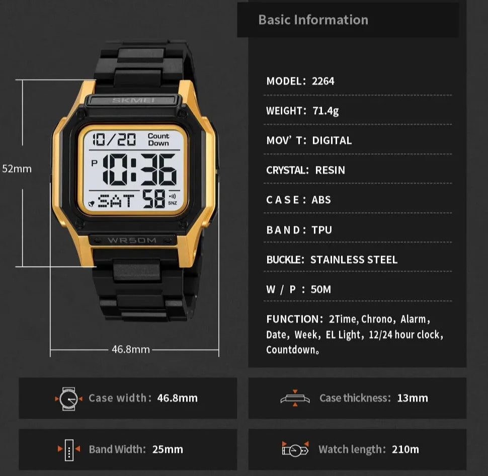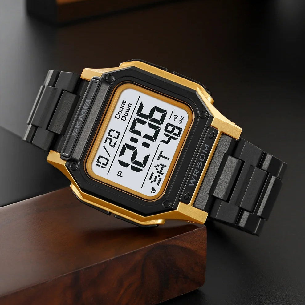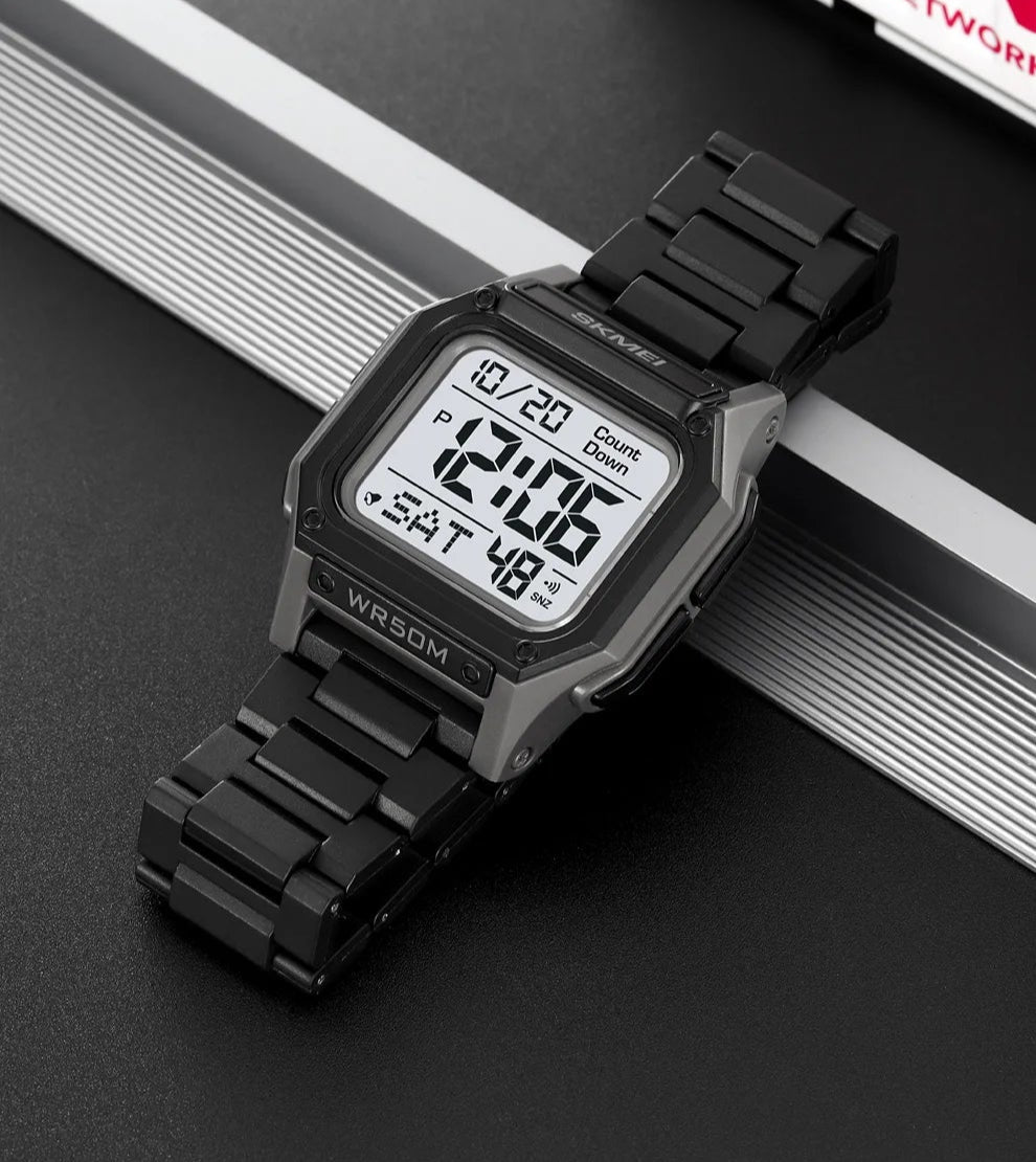Complementing any outfit effortlessly, this elegant and stylish men's digital watch will make you look great and stylish. The square digital display and the EL light facility make it easy to read the time. Designed with a countdown, alarm, stopwatch and water-resistance, this watch is more than just a fashion accessory. Order now!