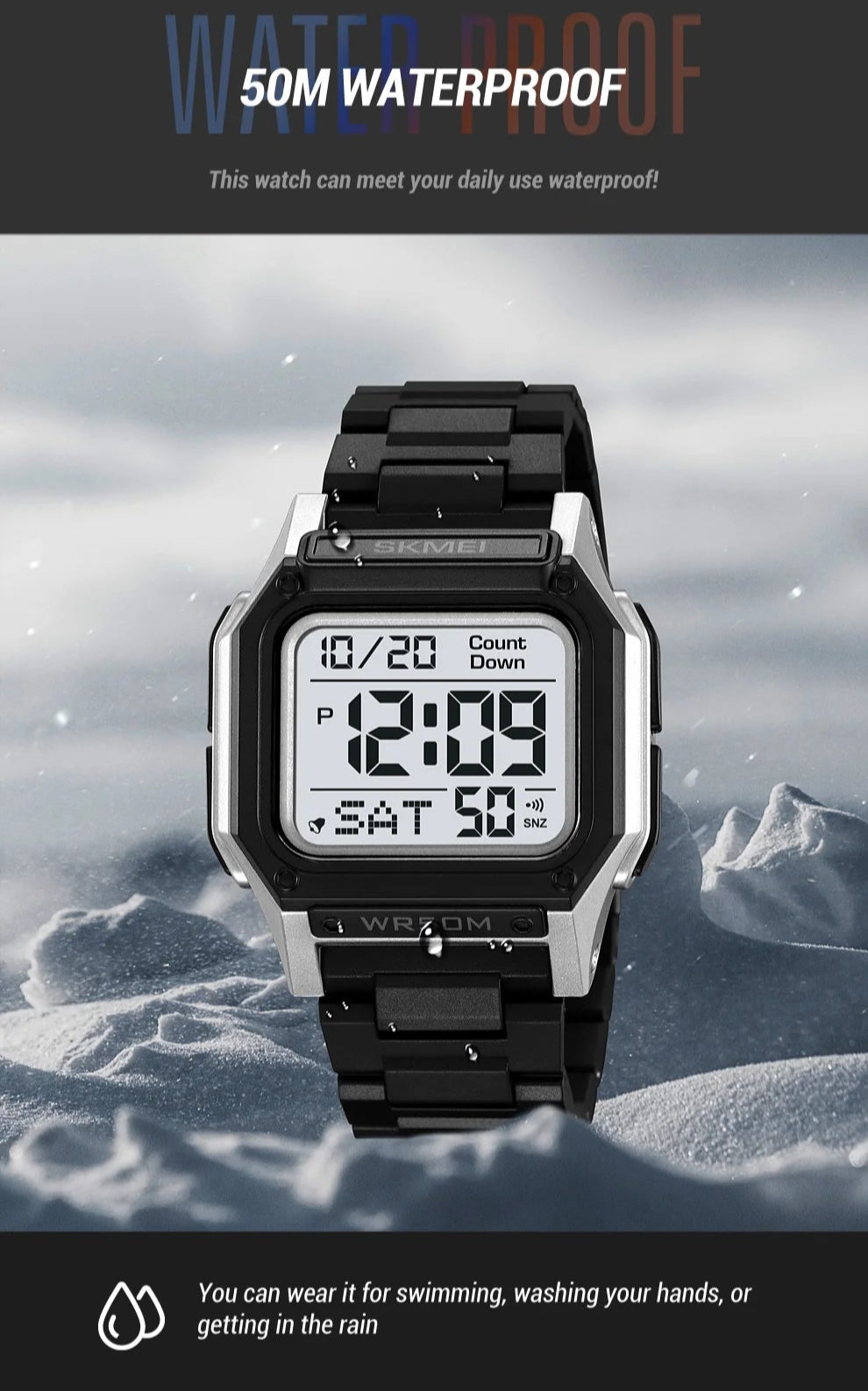 Men's Waterproof Electronic Sports Watch with Countdown Stopwatch Date and Week