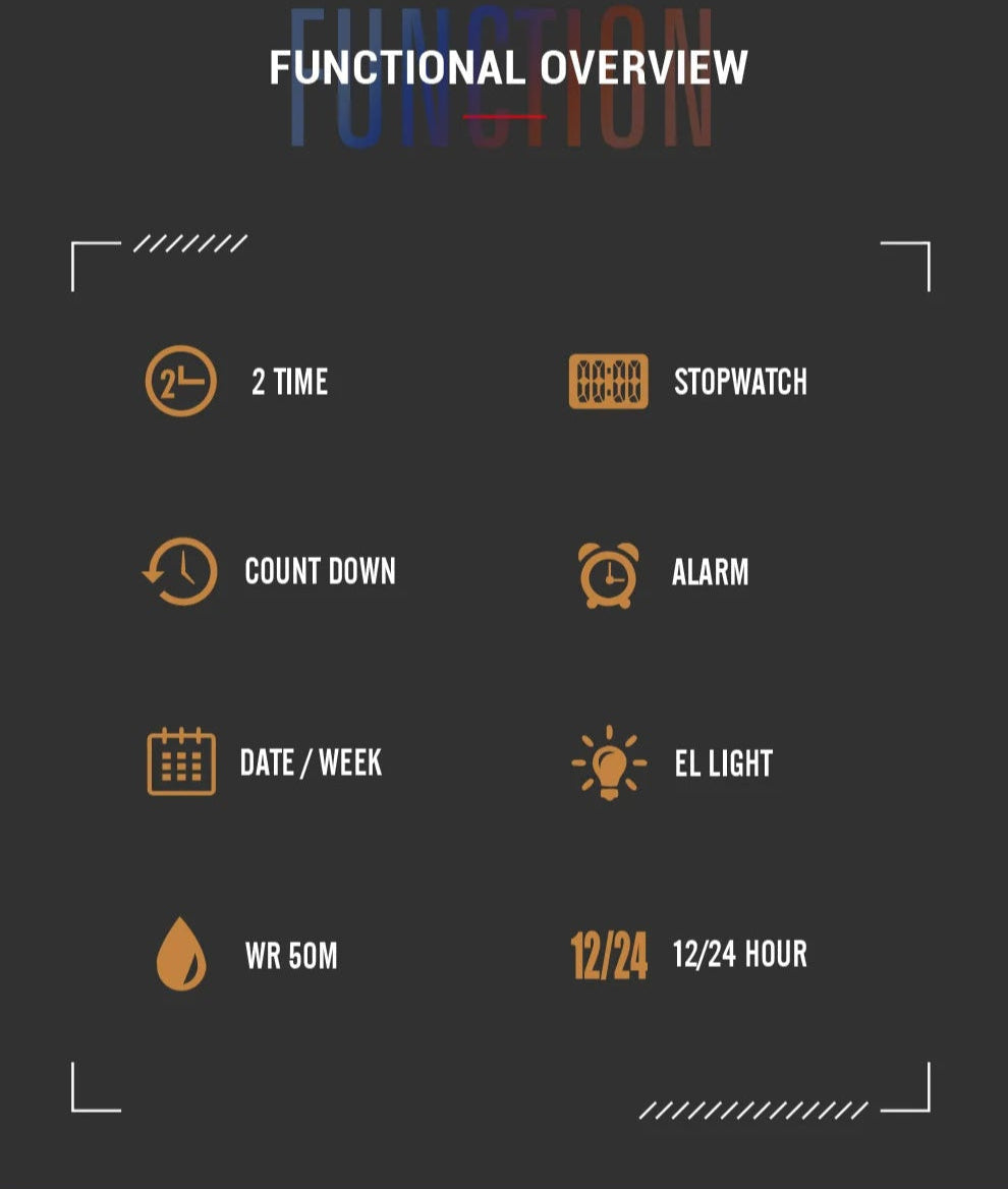 Feature: Shock Resistant,Chronograph,Complete Calendar,Alarm,Week Display