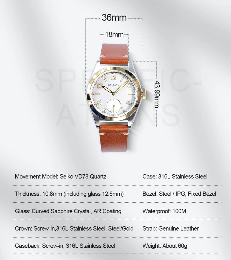 Retro Bubbleback Subsecond Dial 100M Waterproof Luminous Leather Quartz Dress Watch