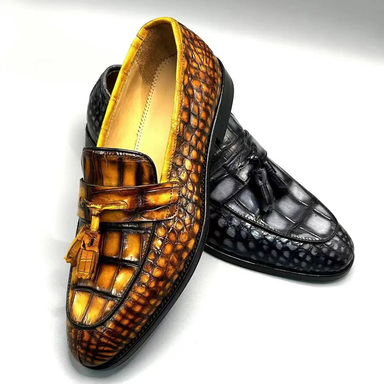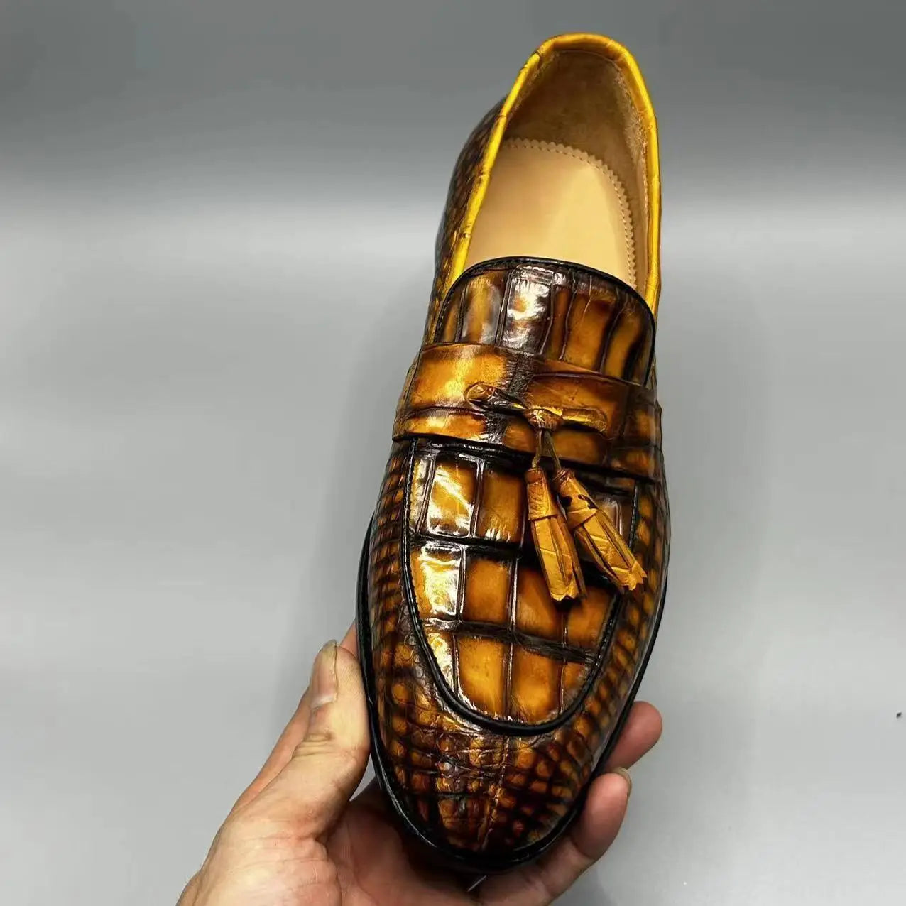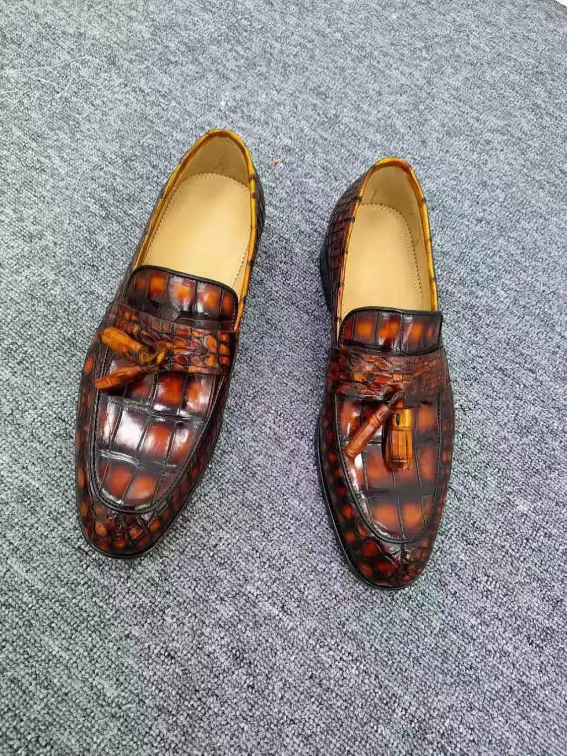 Casual Fashion Glossy Crocodile Skin Leather Tassel Loafers for Men