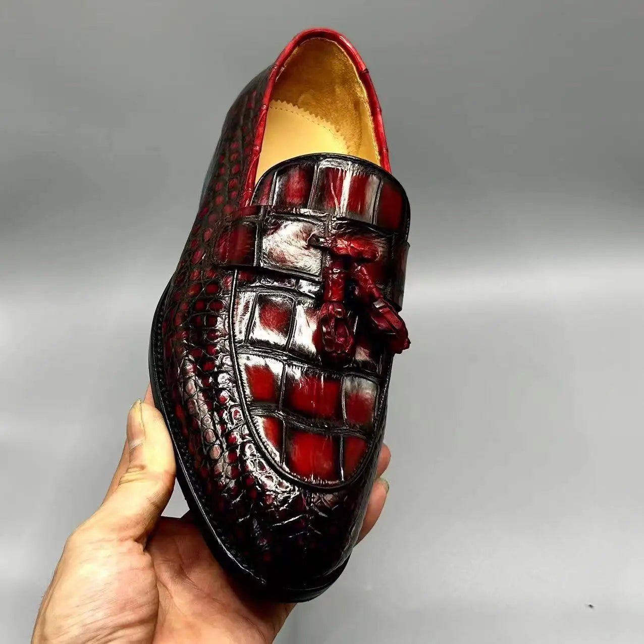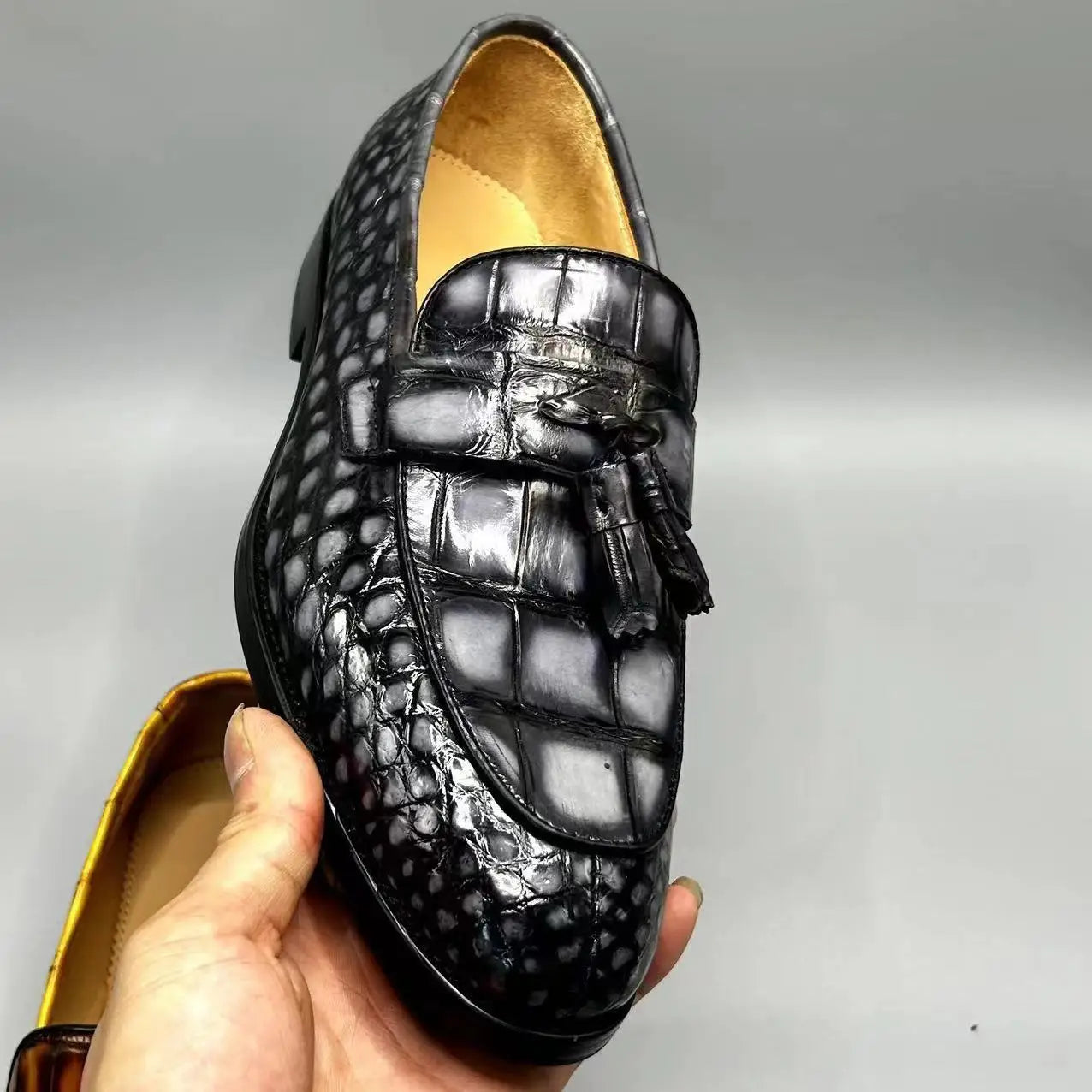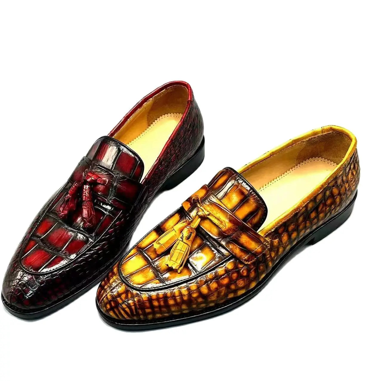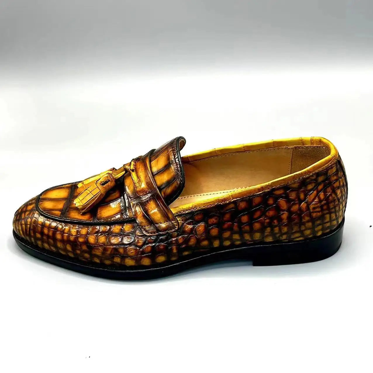 Casual Fashion Glossy Crocodile Skin Leather Tassel Loafers for Men