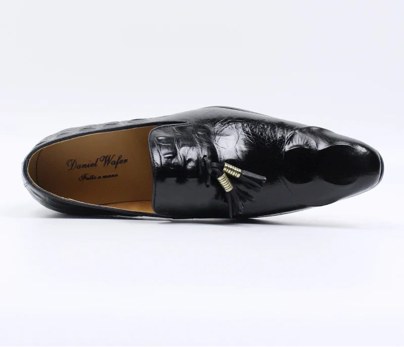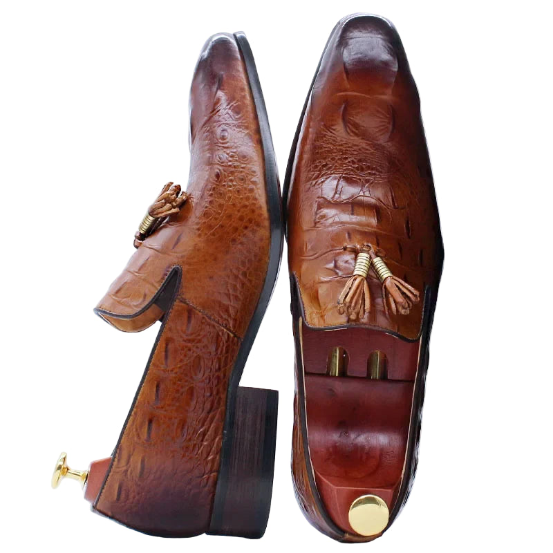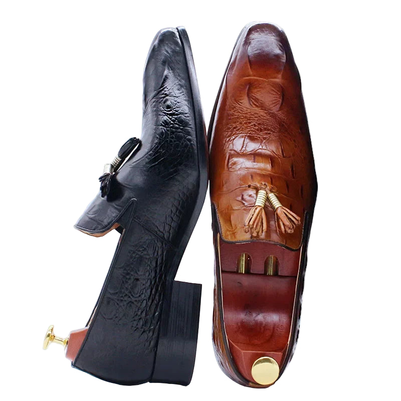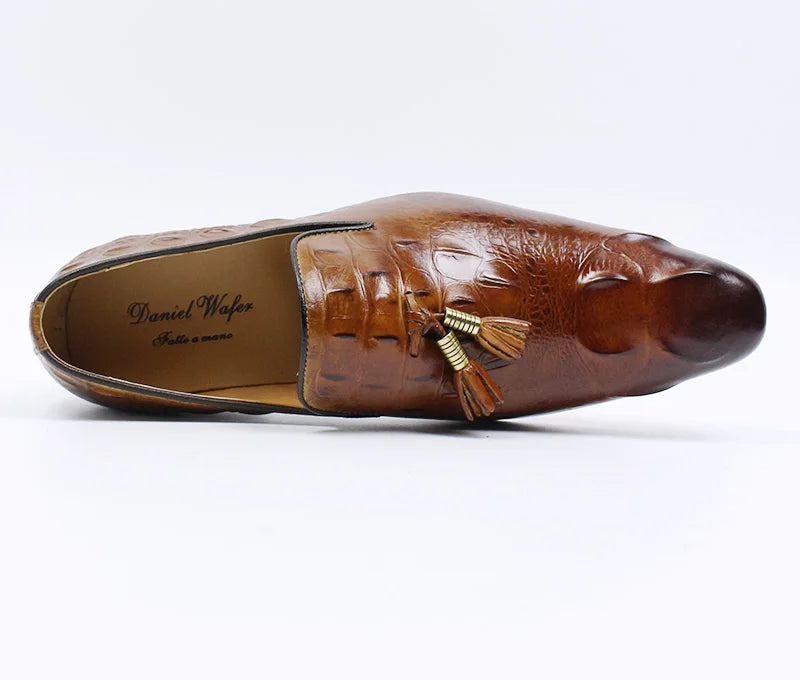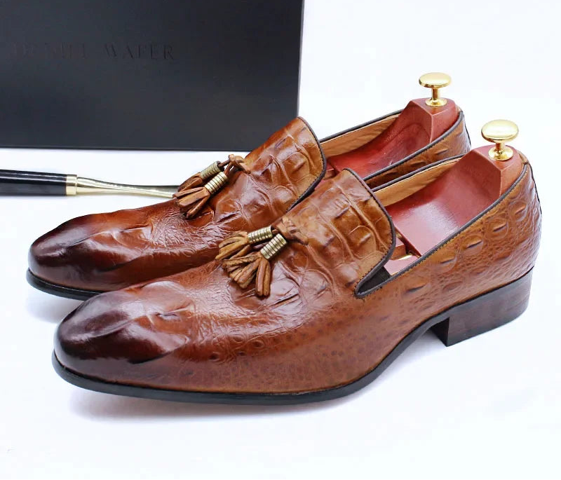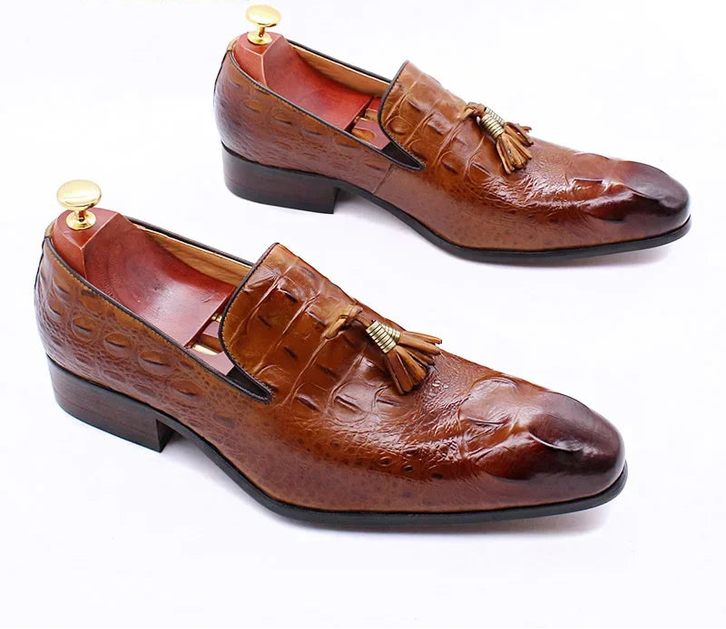Luxury Casual Office Wedding Men's Leather Crocodile Print Tassels Loafers