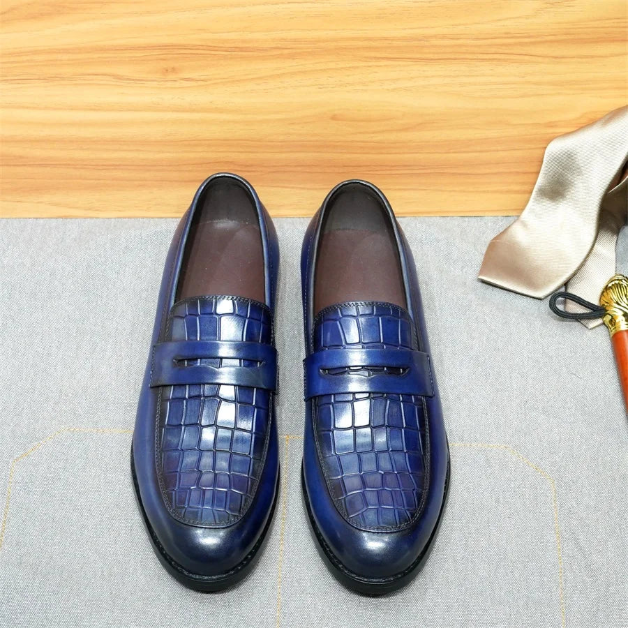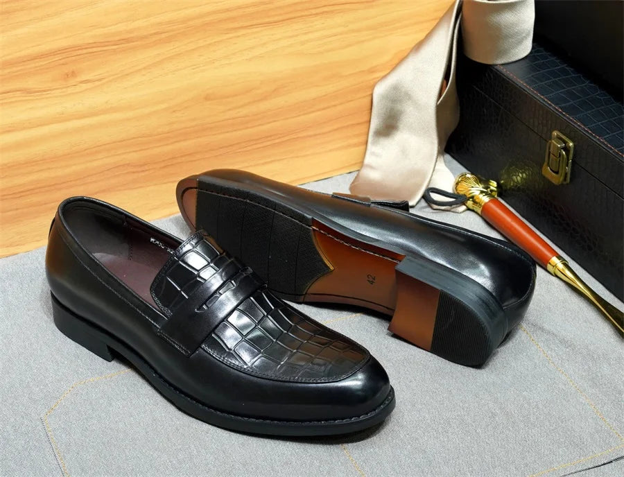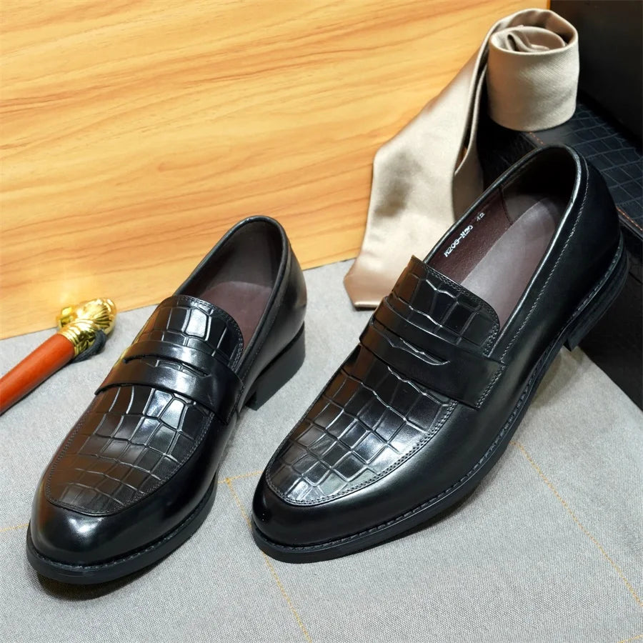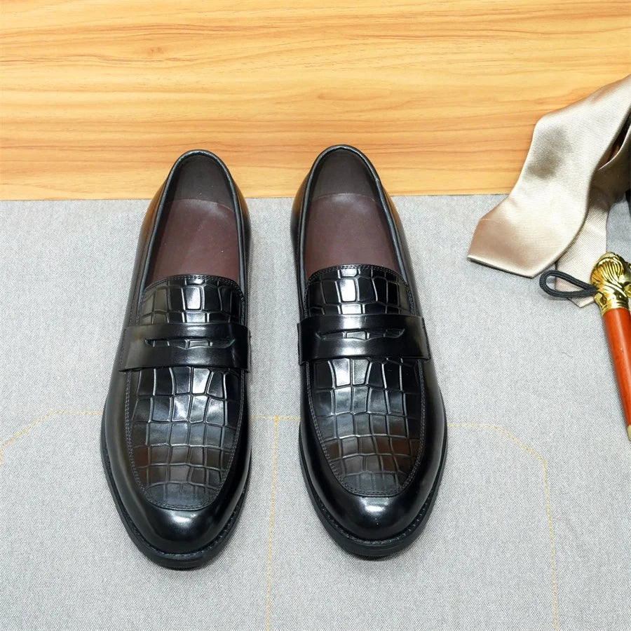 Men's Cowhide Leather Crocodile Embossed Business Casual Loafers