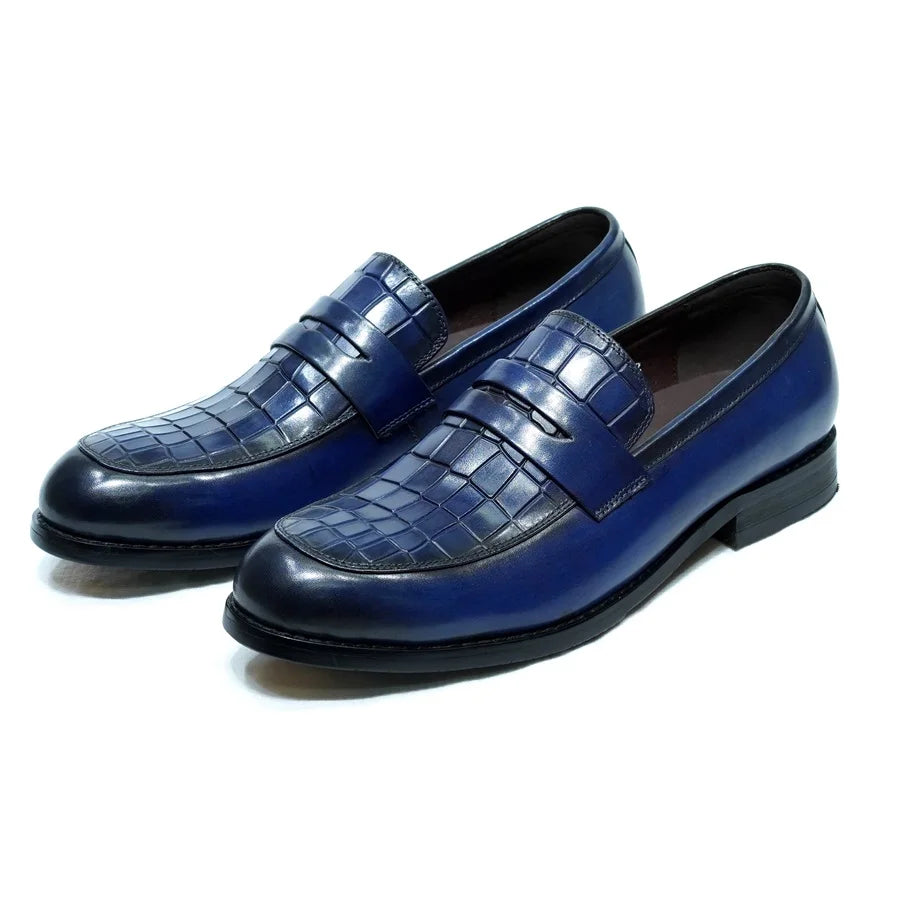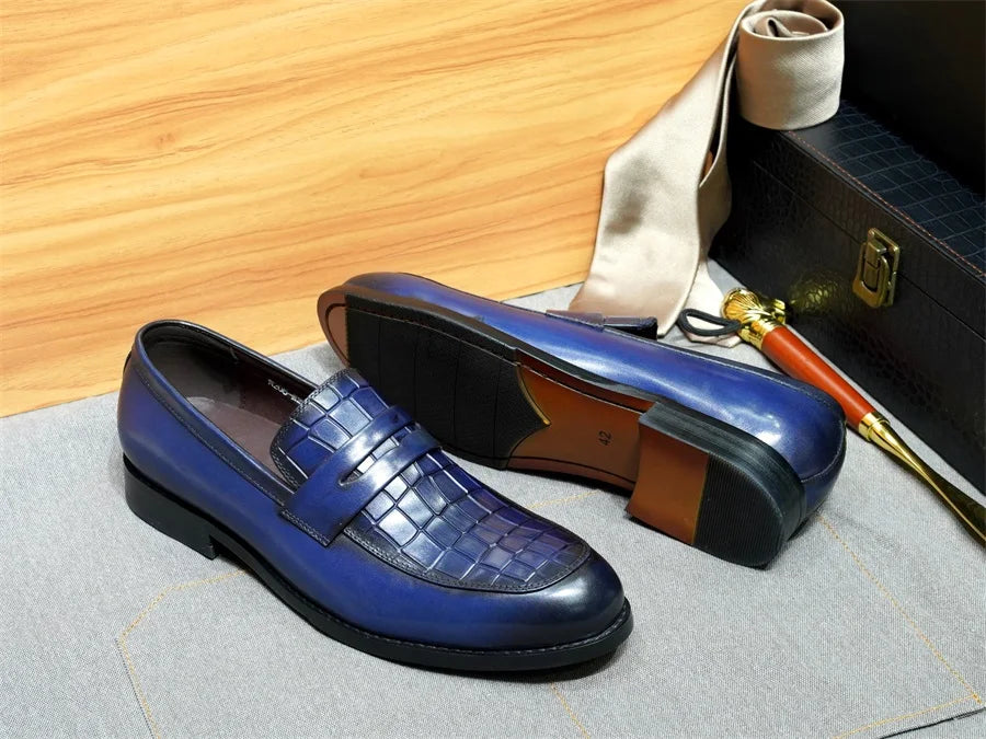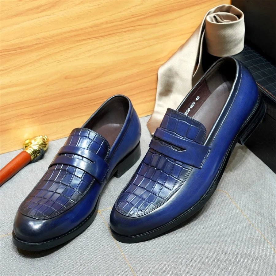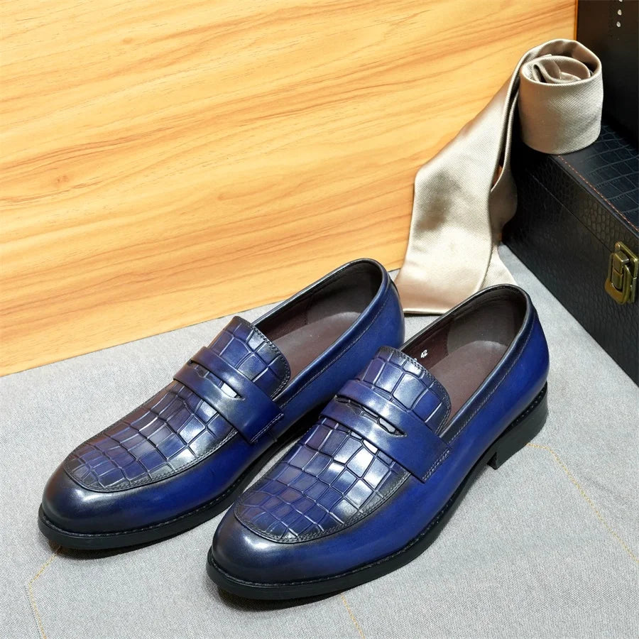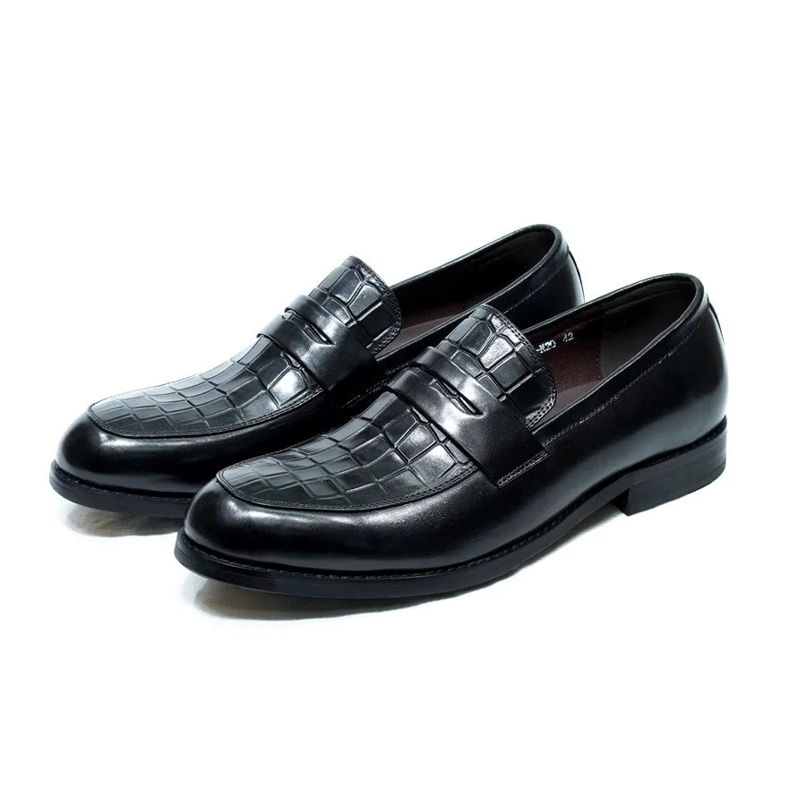 Men's Cowhide Leather Crocodile Embossed Business Casual Loafers