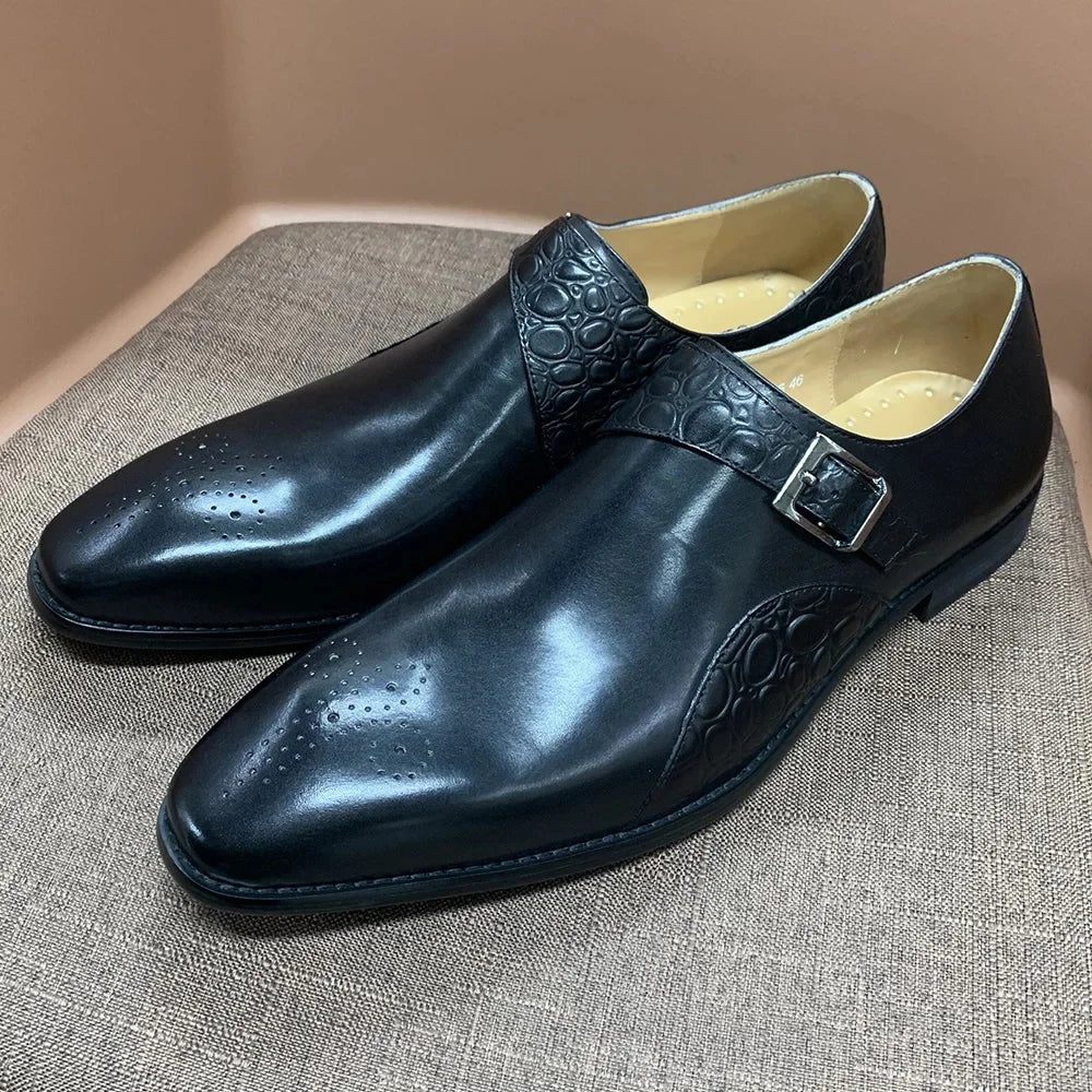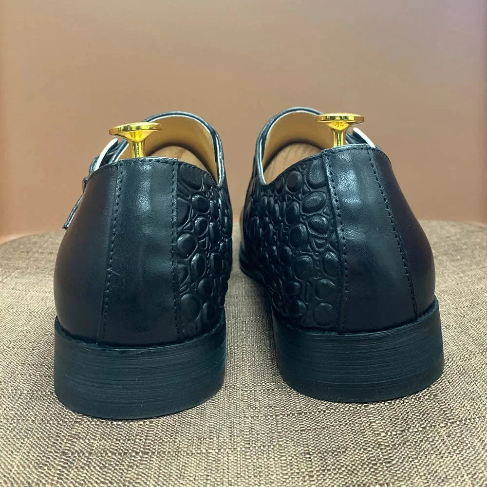 Men's Embossed Crocodile Pattern Monk Strap Pointed Toe Dress Shoes
