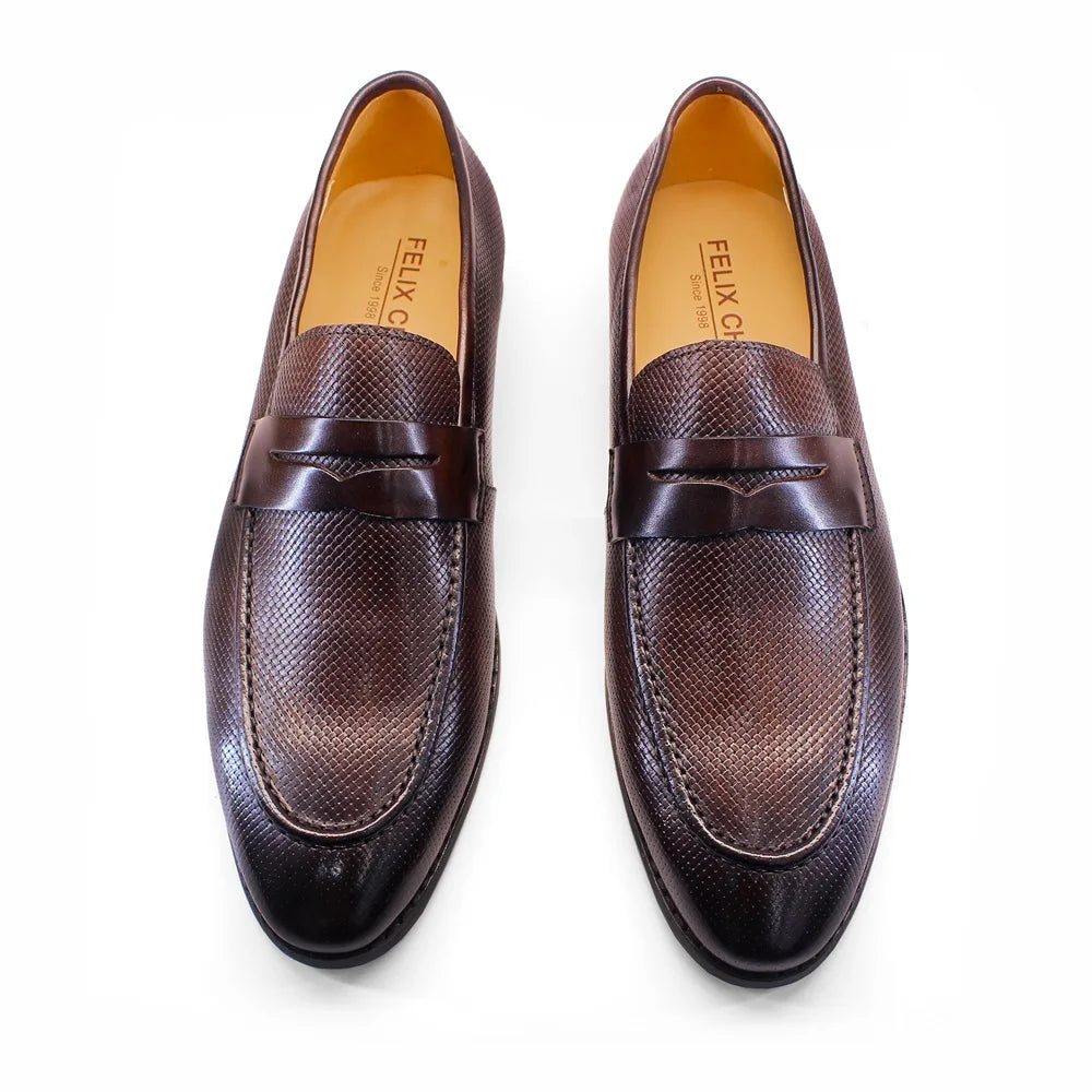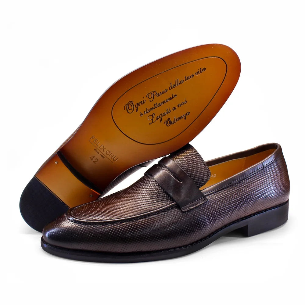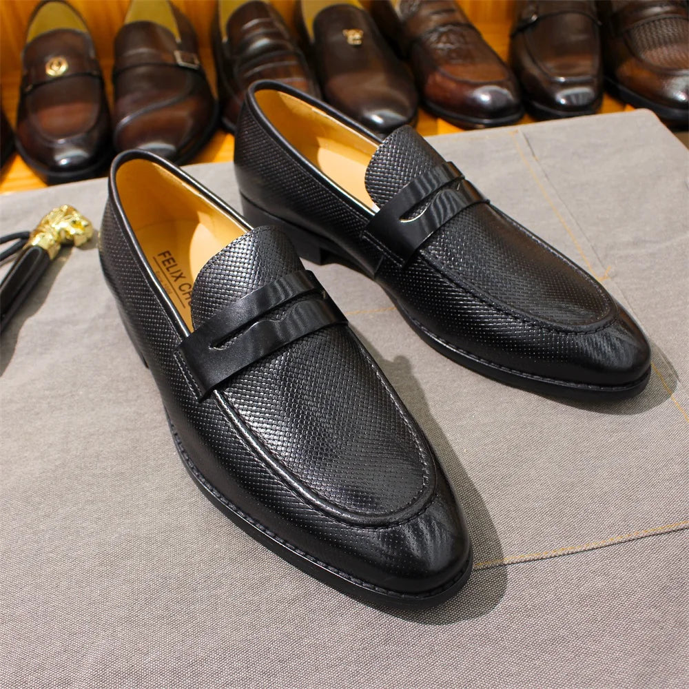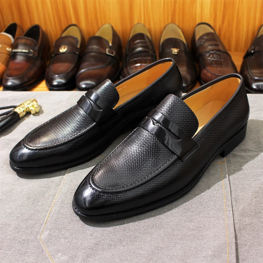 Men's Genuine Leather Business Casual Textured Embossed Loafers