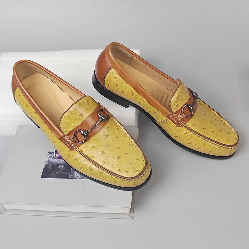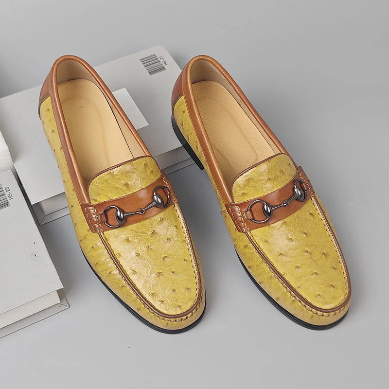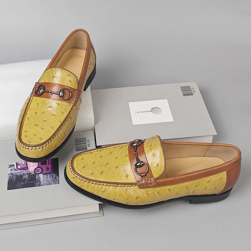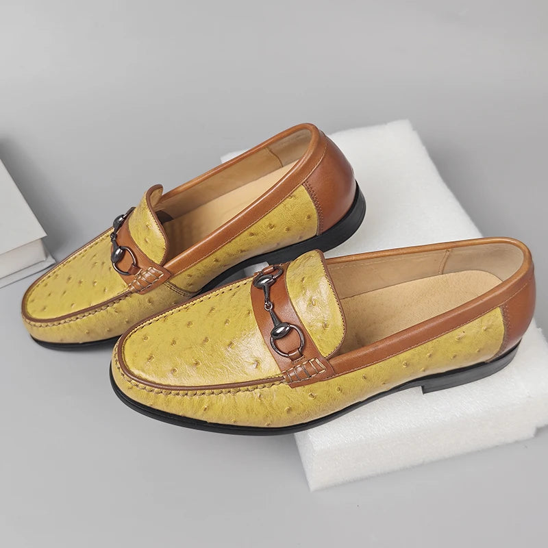 Men's Handmade Top-Grain Cowhide with Ostrich Pattern Loafers