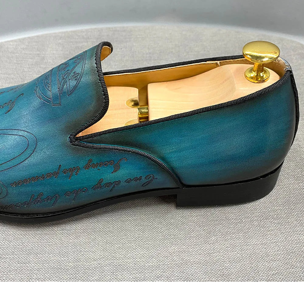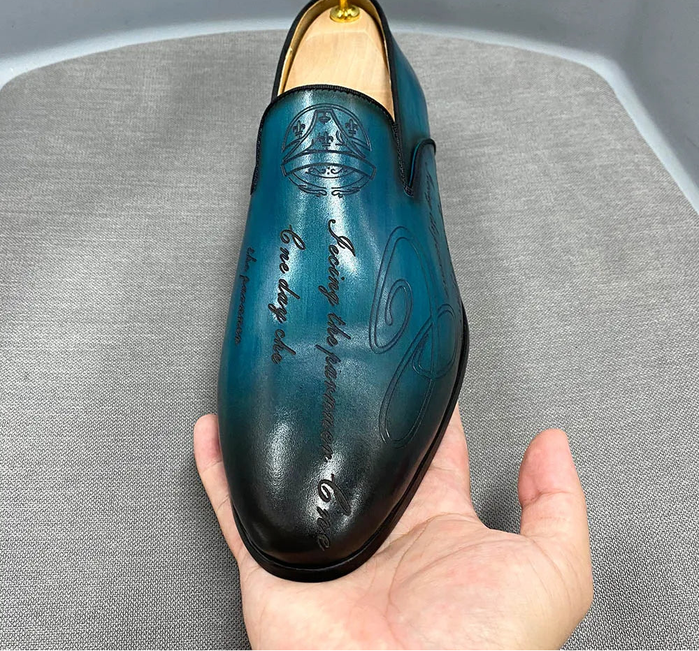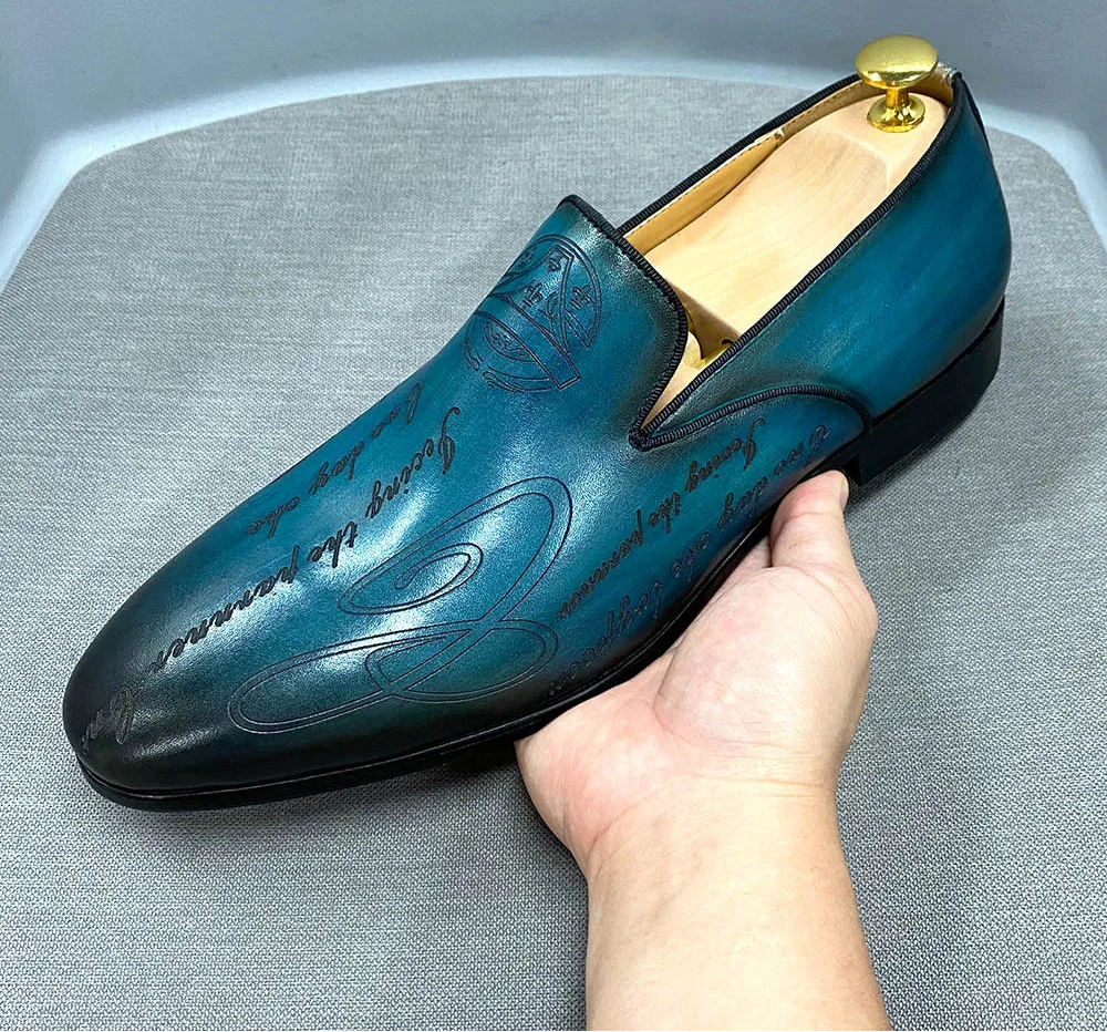 Men's Leather Hand-painted Embossed Pattern Slip-on Wedding Casual Loafers