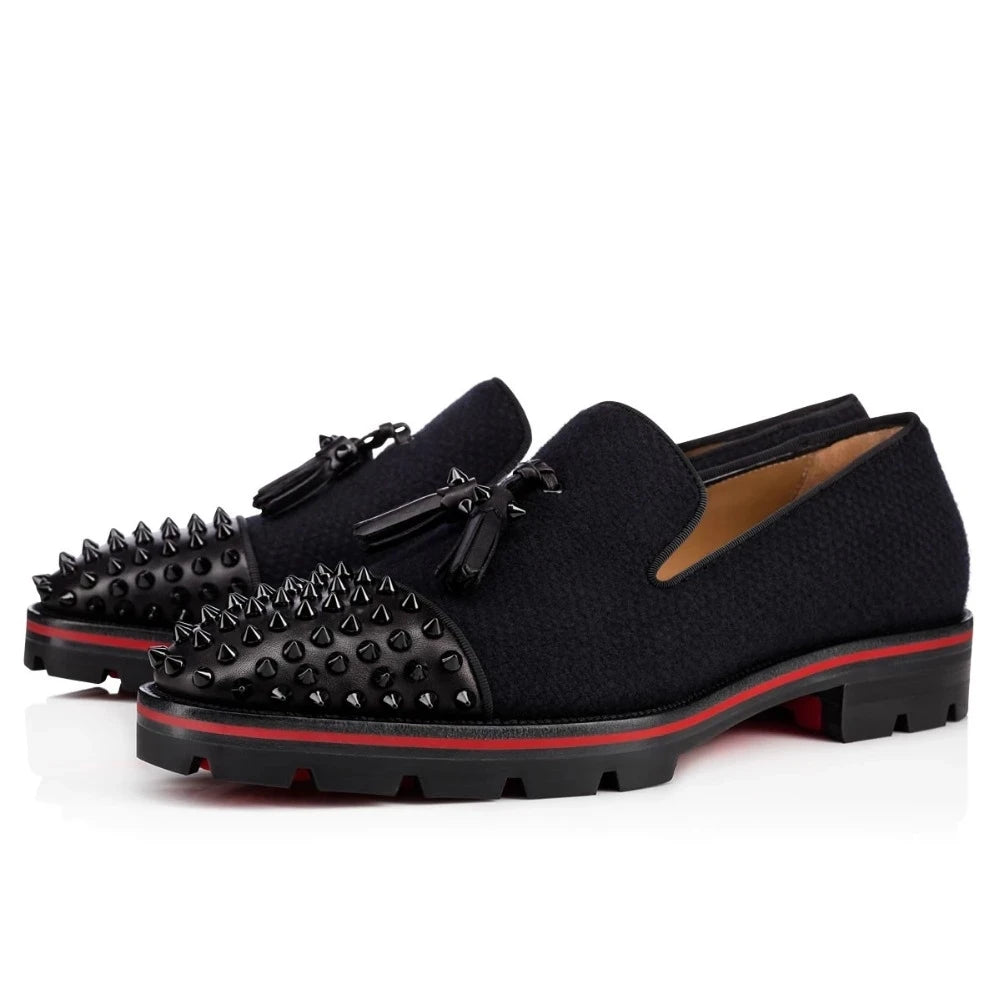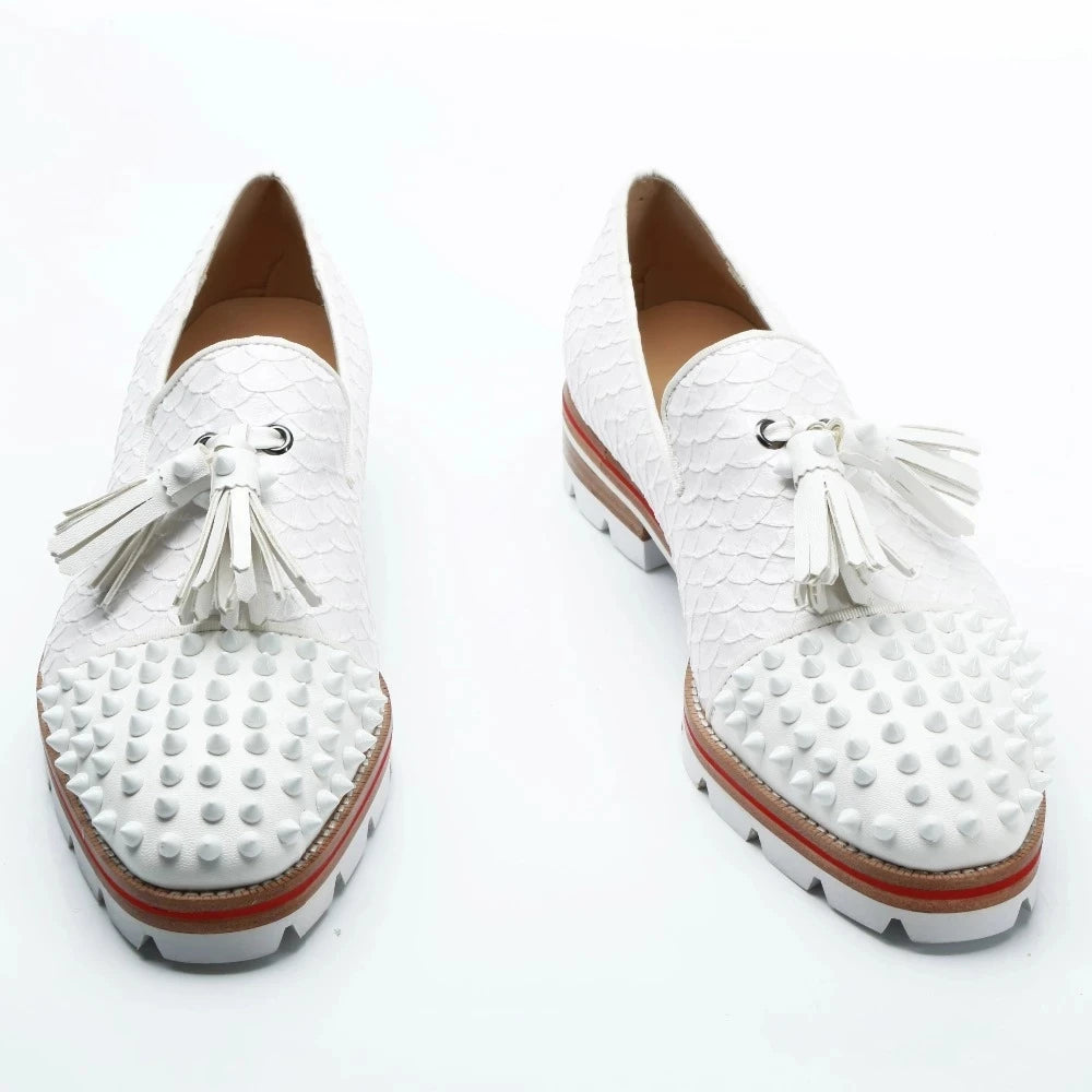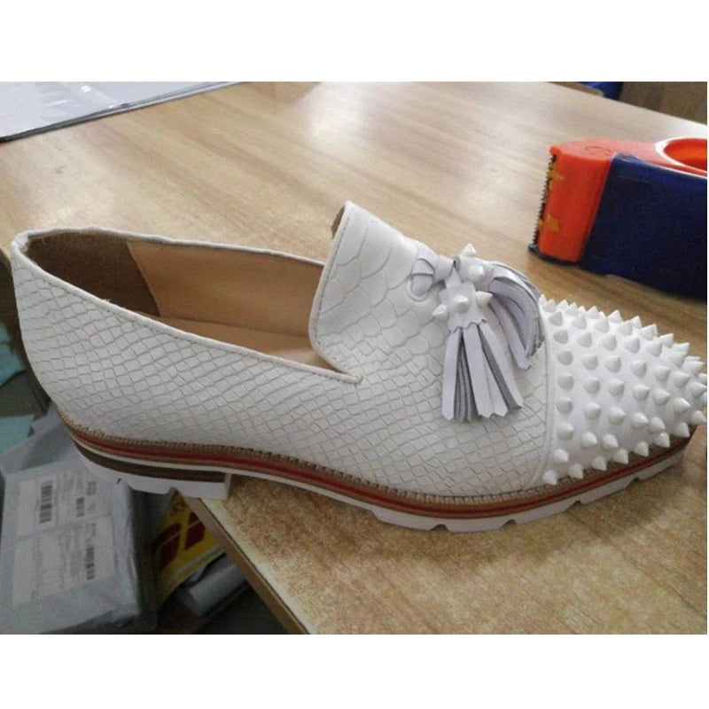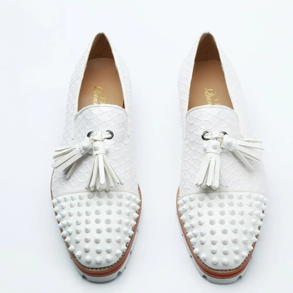 Men's Leather Wedding Party Formal Spike Fringed Dress Loafers