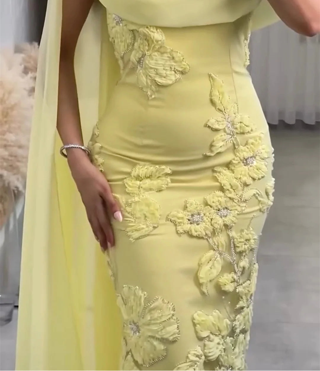 Yellow Luxurious Mermaid Evening Prom Dress for Women
