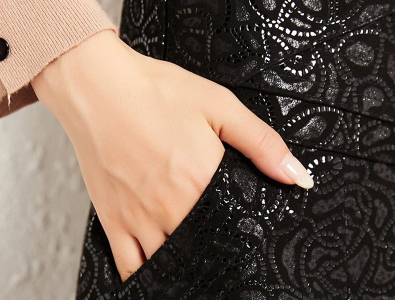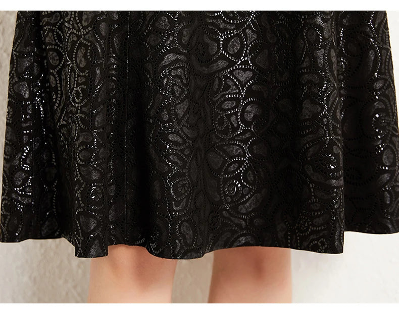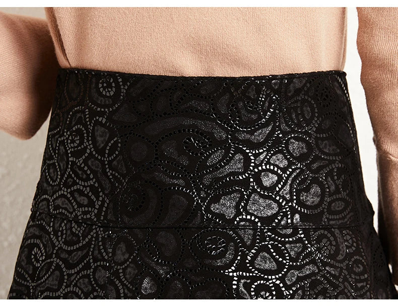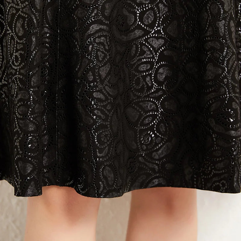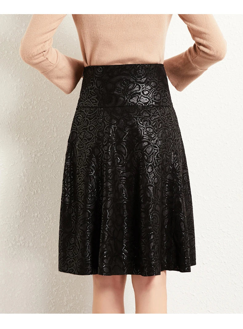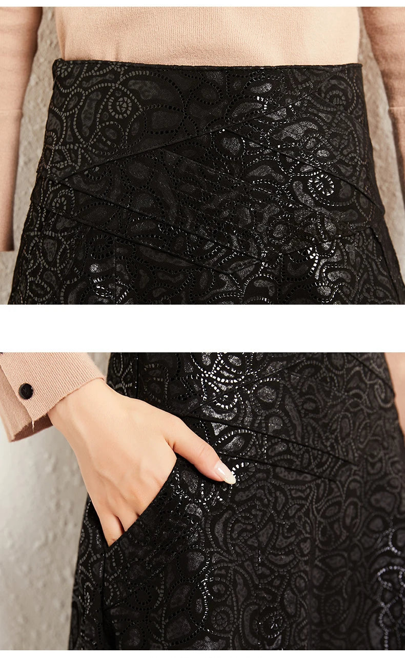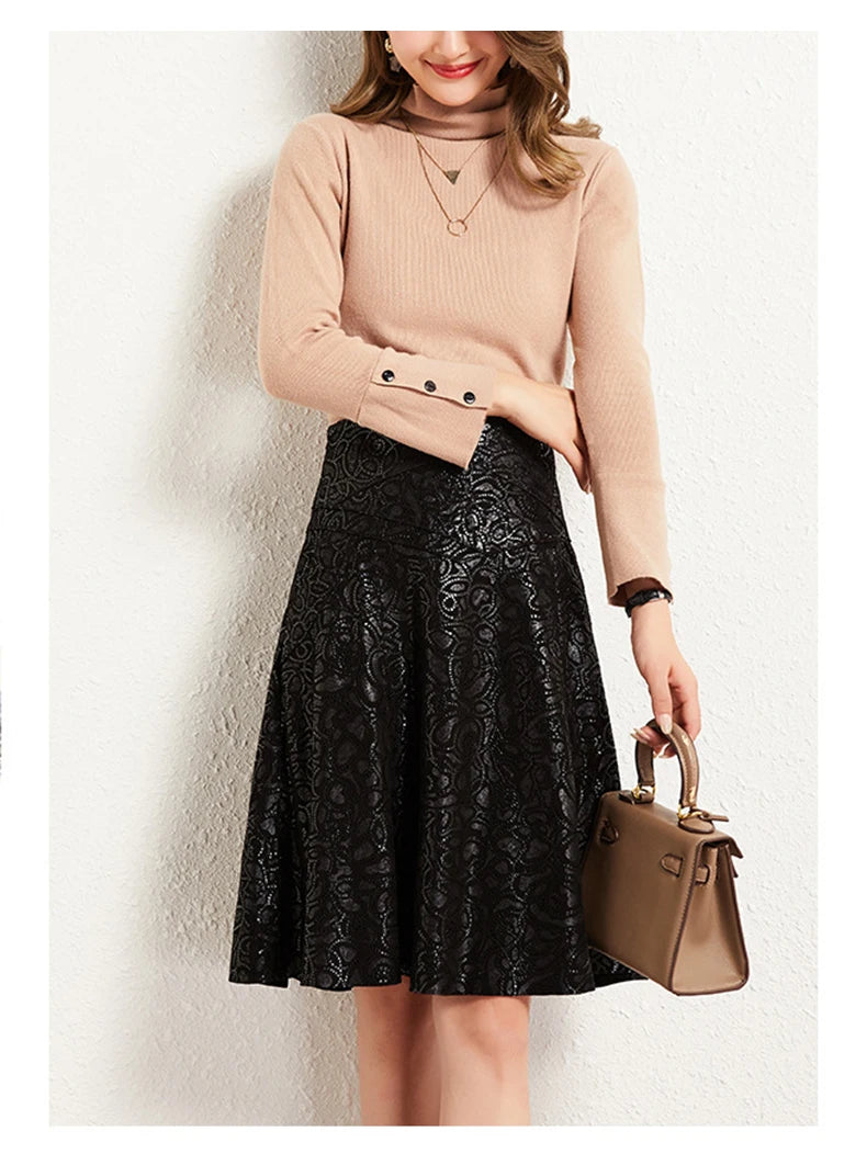 Harajuku Genuine Leather Mid-Length High Waist A-line Swing Skirt for Women