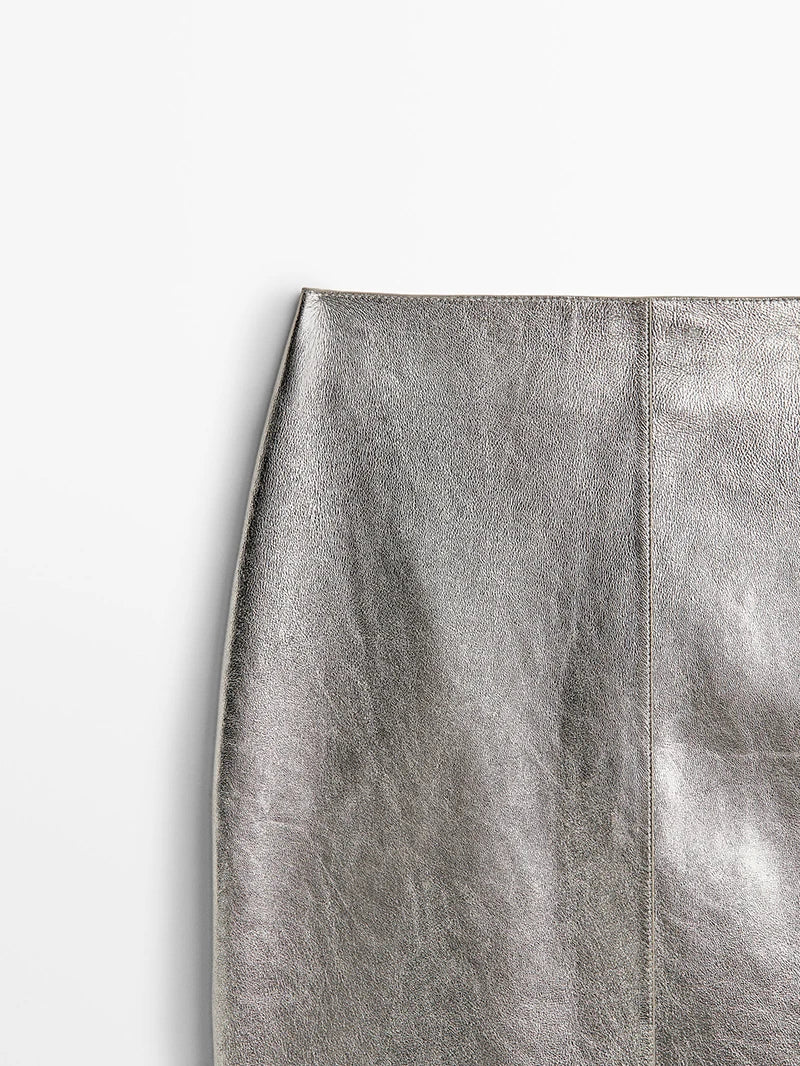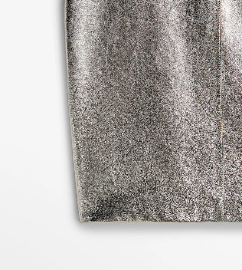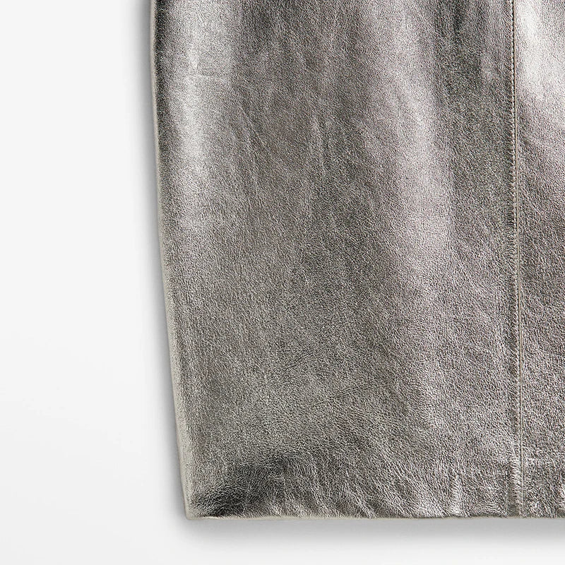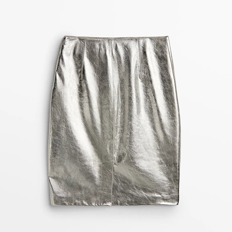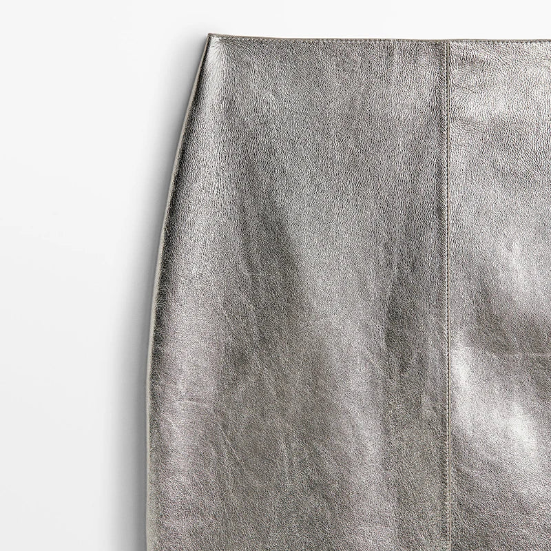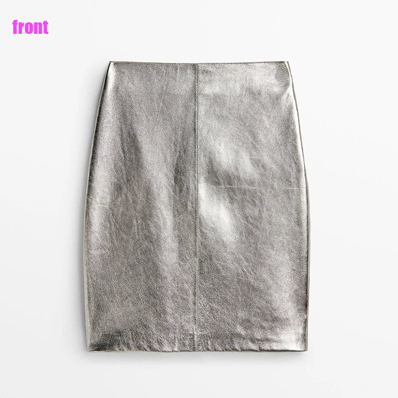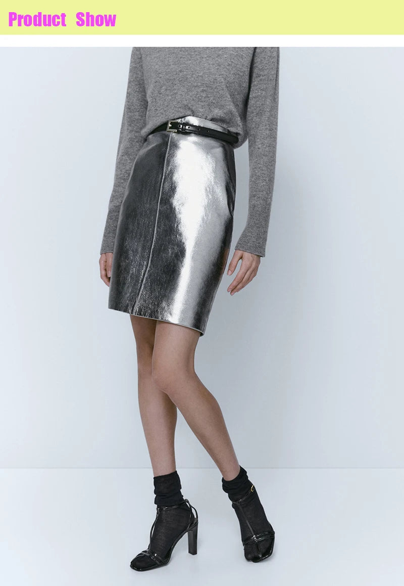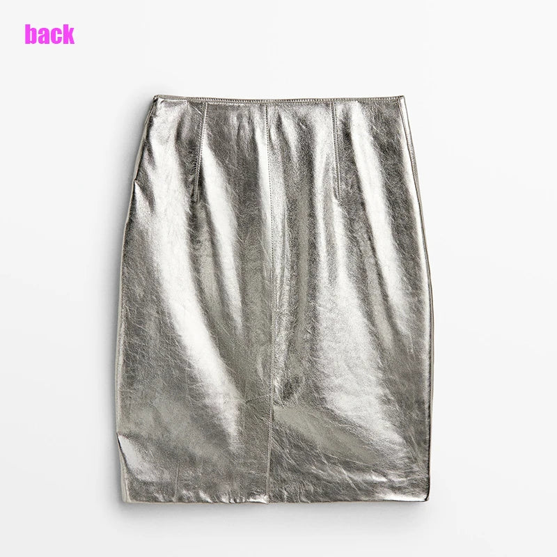 Real Leather Simple Fashion Metallic Sheen Short Wrap Hip Slim Skirt for Women