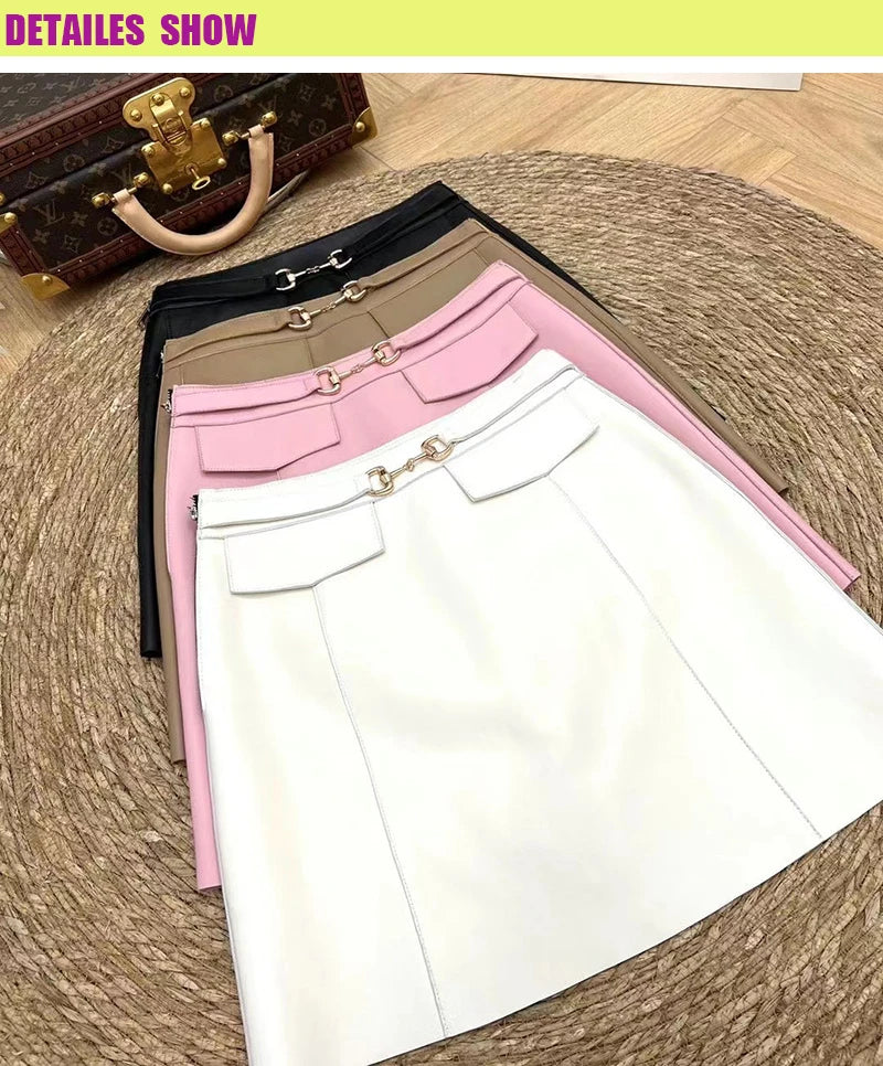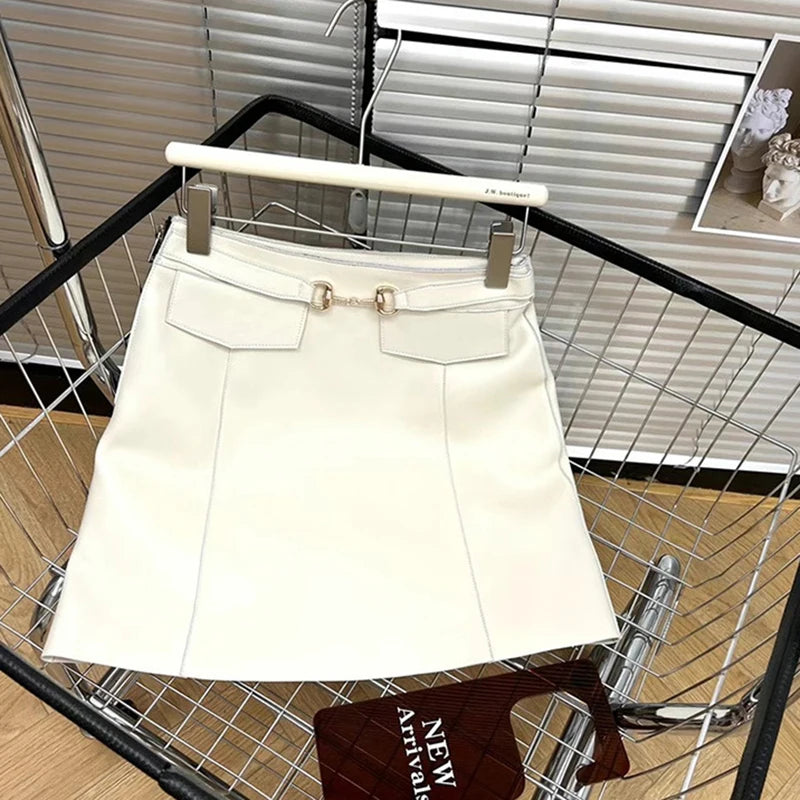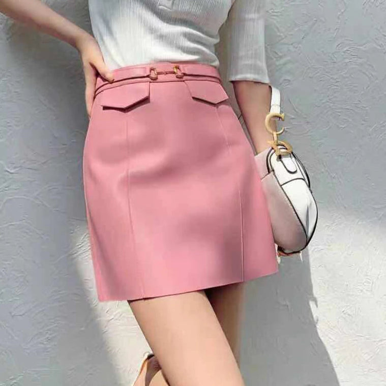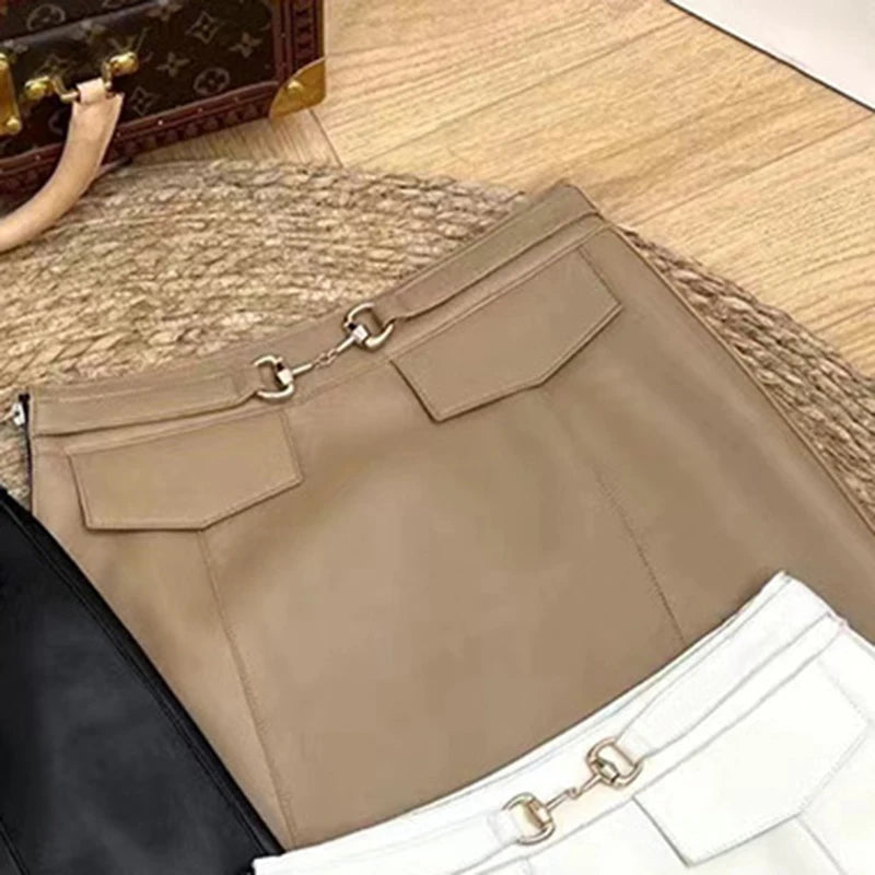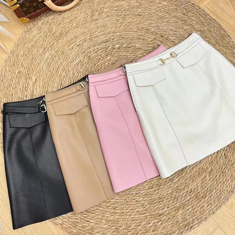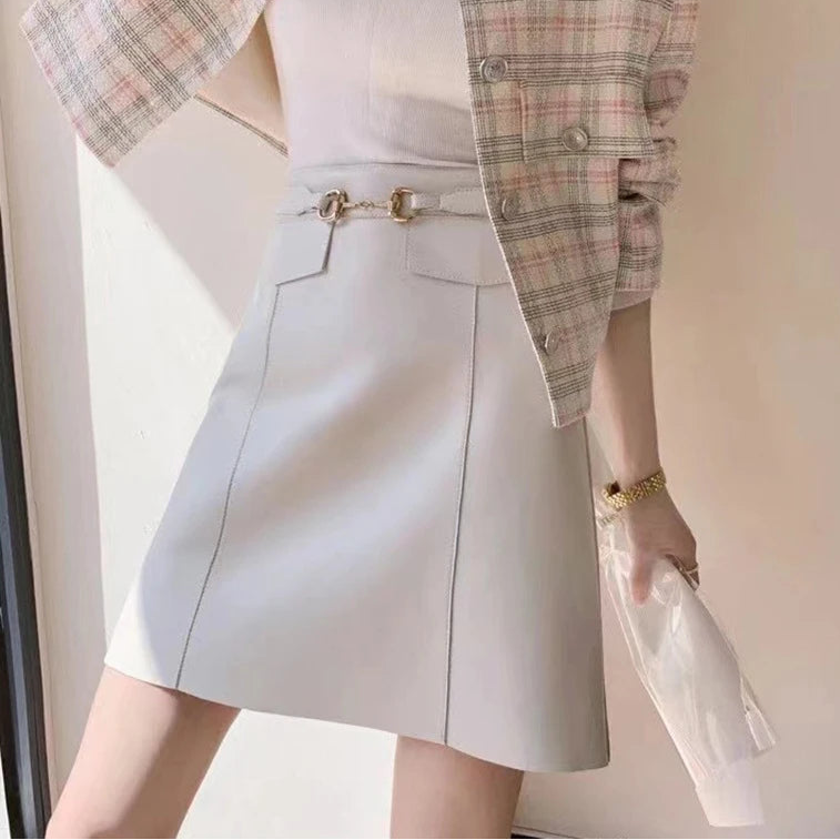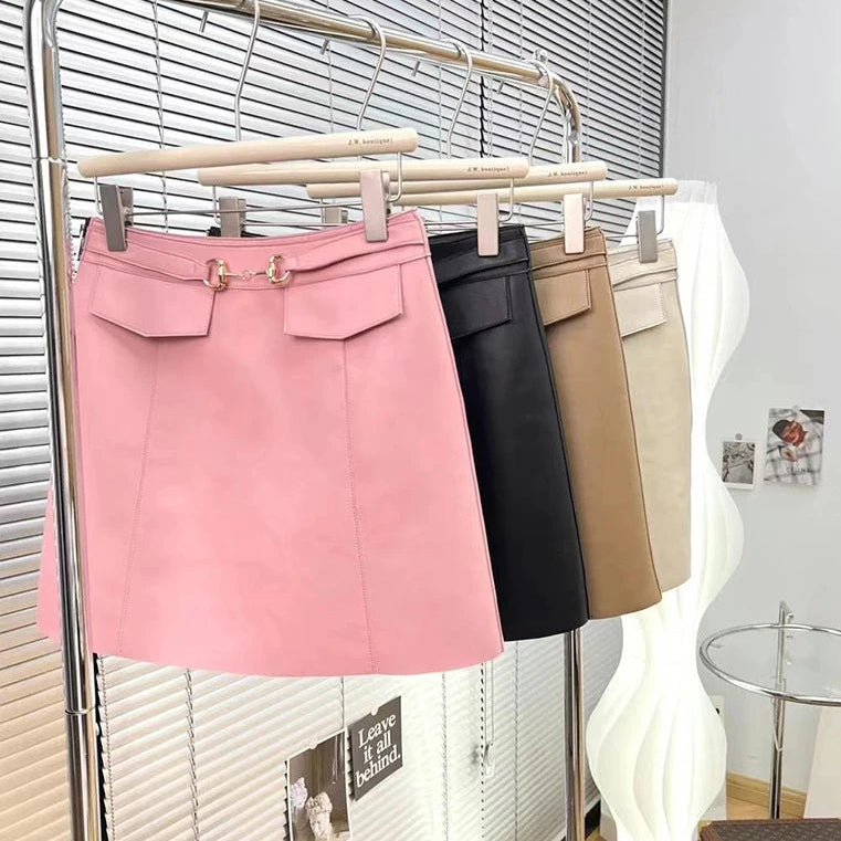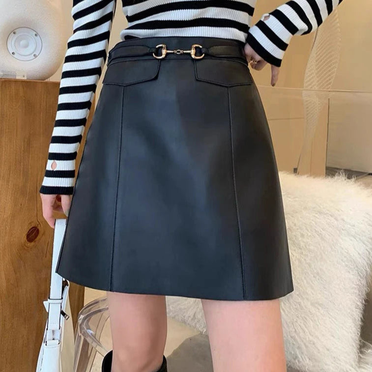 Women's Harajuku Fashion Sheepskin High Waist Wrap Hip A-line Mini Skirt