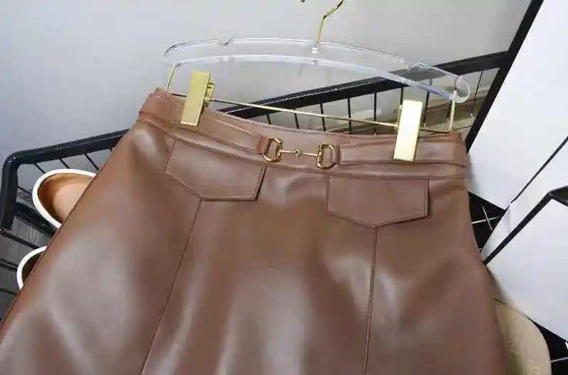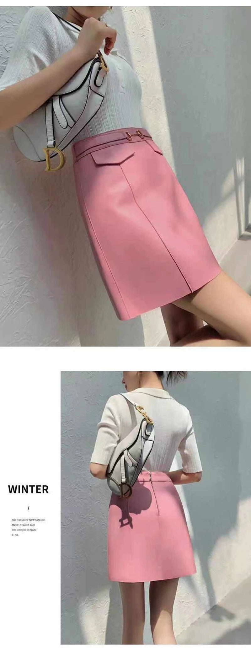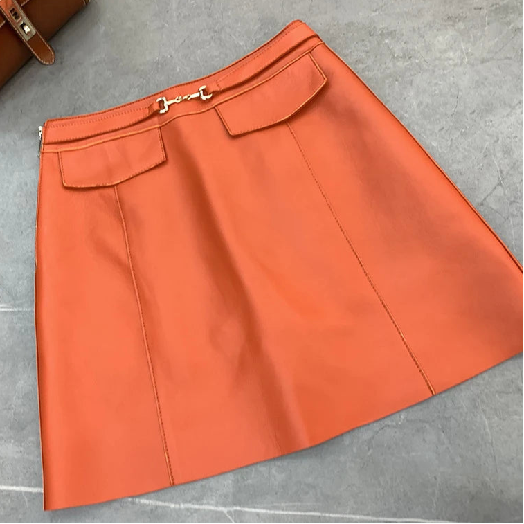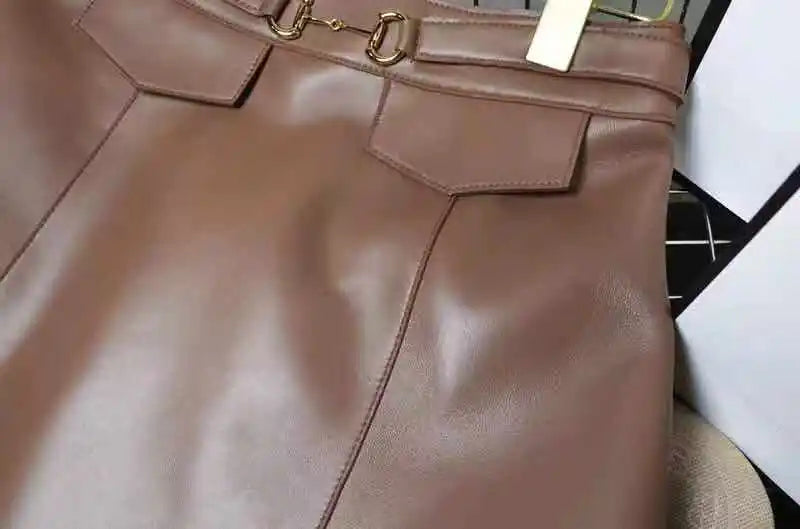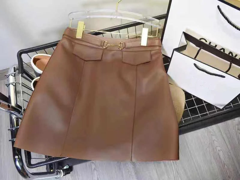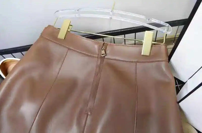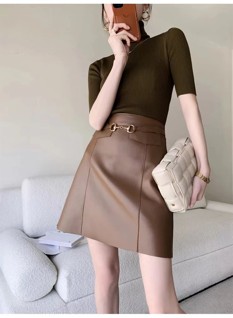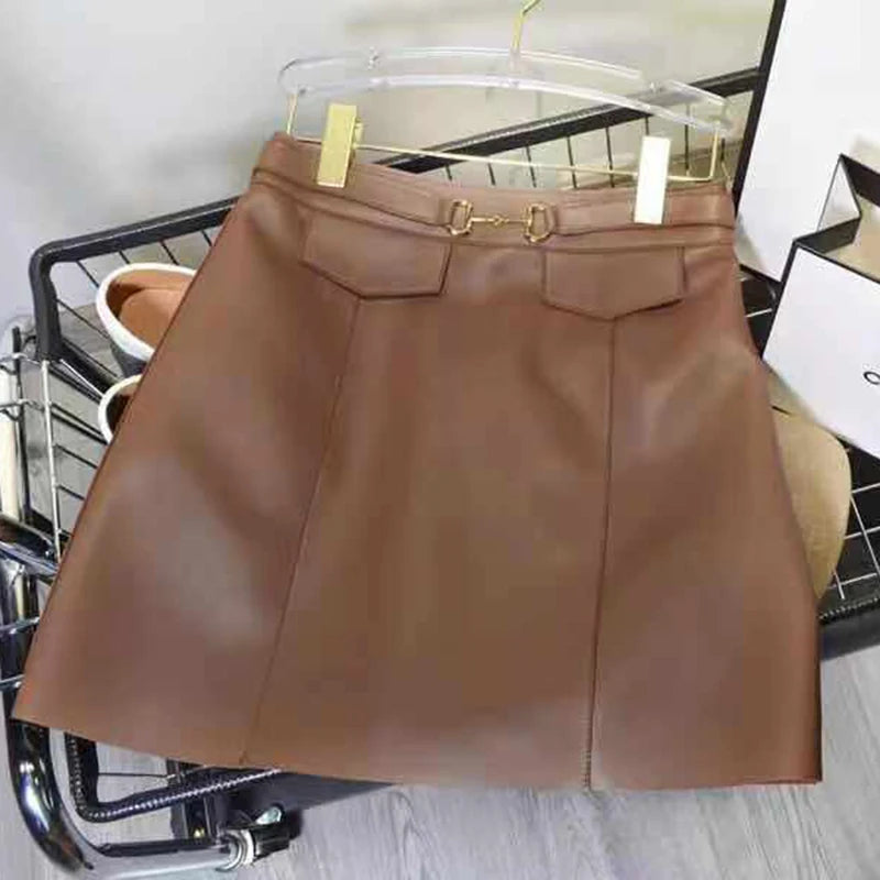 Women's Harajuku Fashion Sheepskin High Waist Wrap Hip A-line Mini Skirt