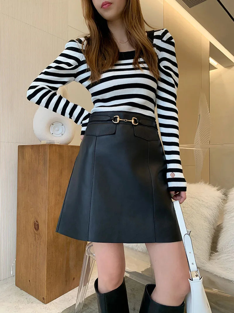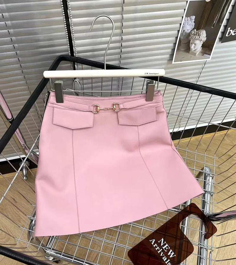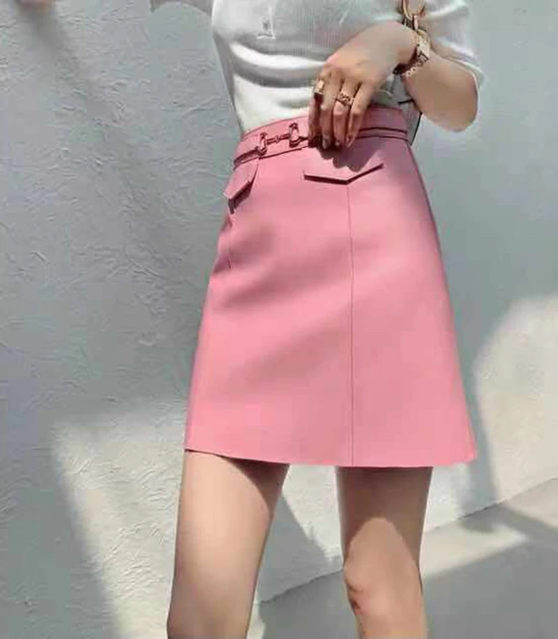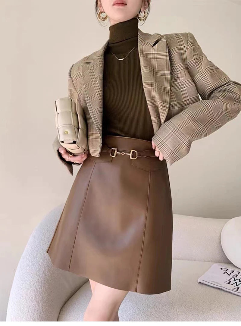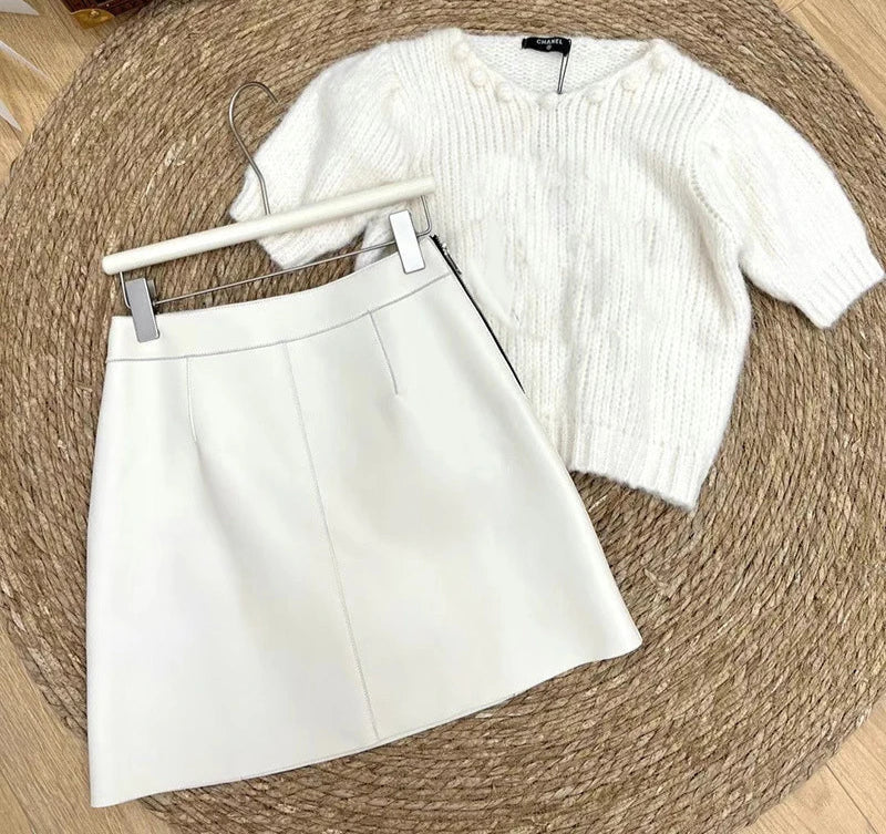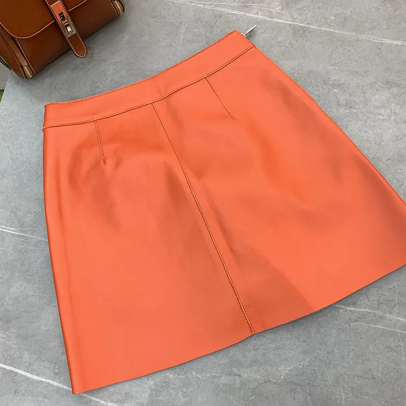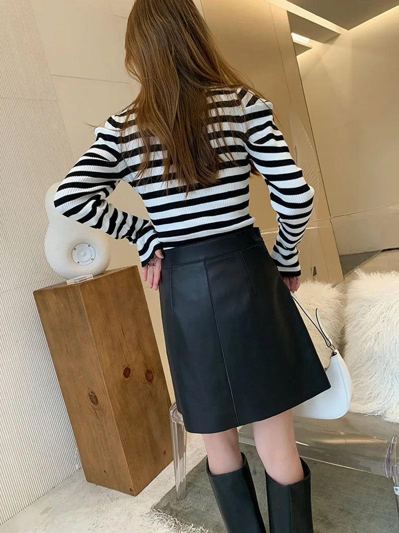 Women's Harajuku Fashion Sheepskin High Waist Wrap Hip A-line Mini Skirt