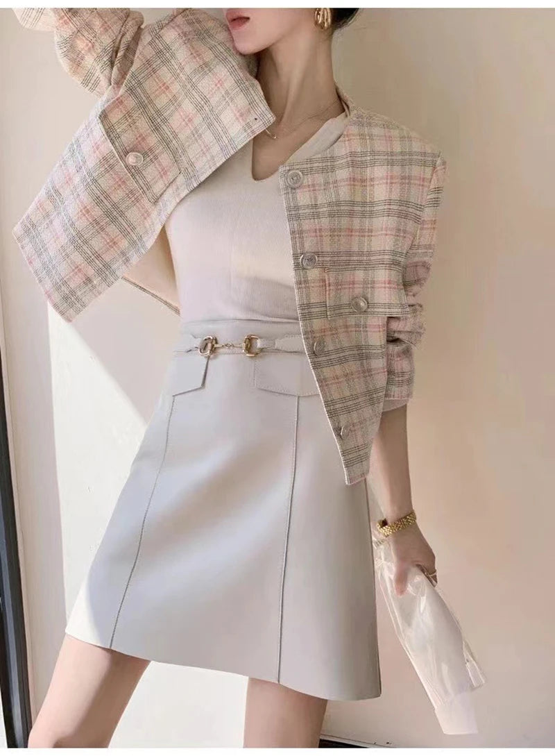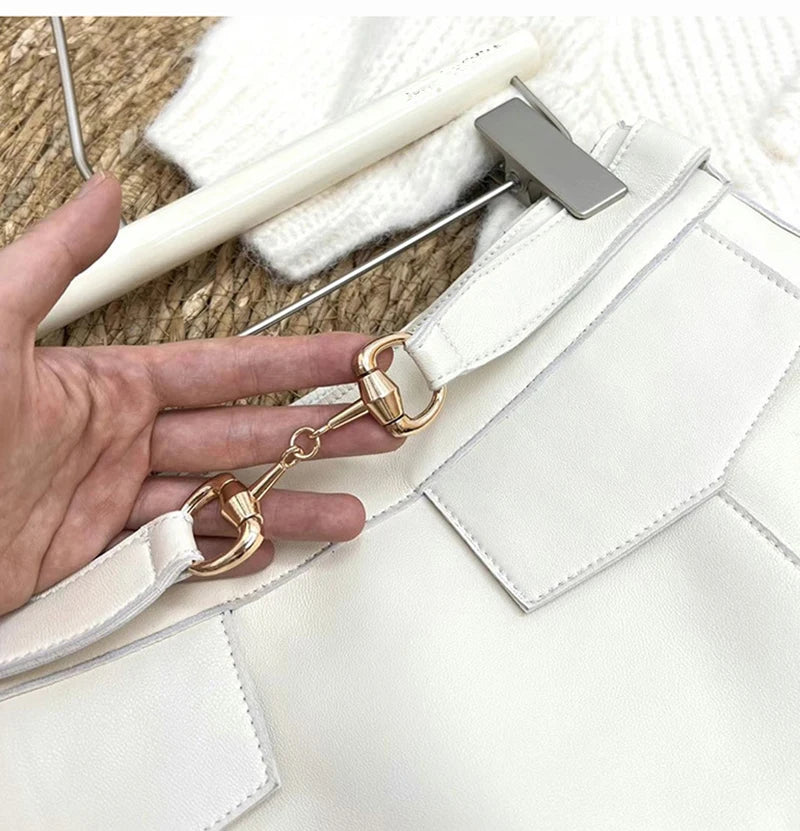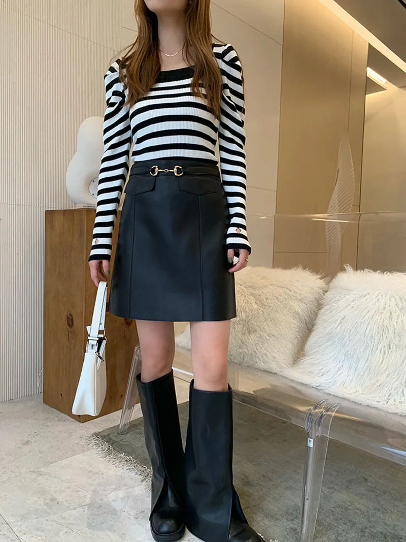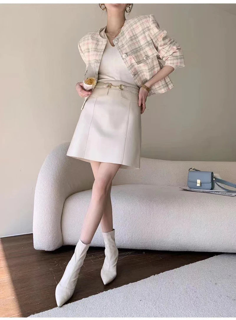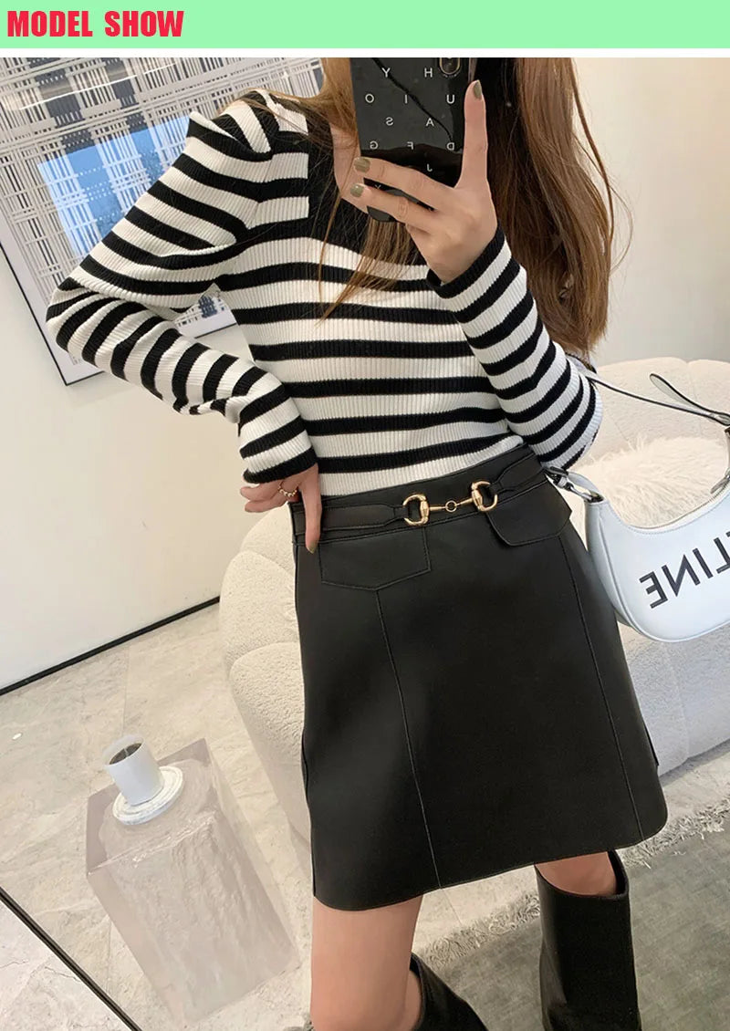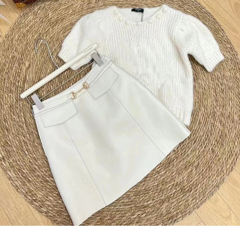 Women's Harajuku Fashion Sheepskin High Waist Wrap Hip A-line Mini Skirt