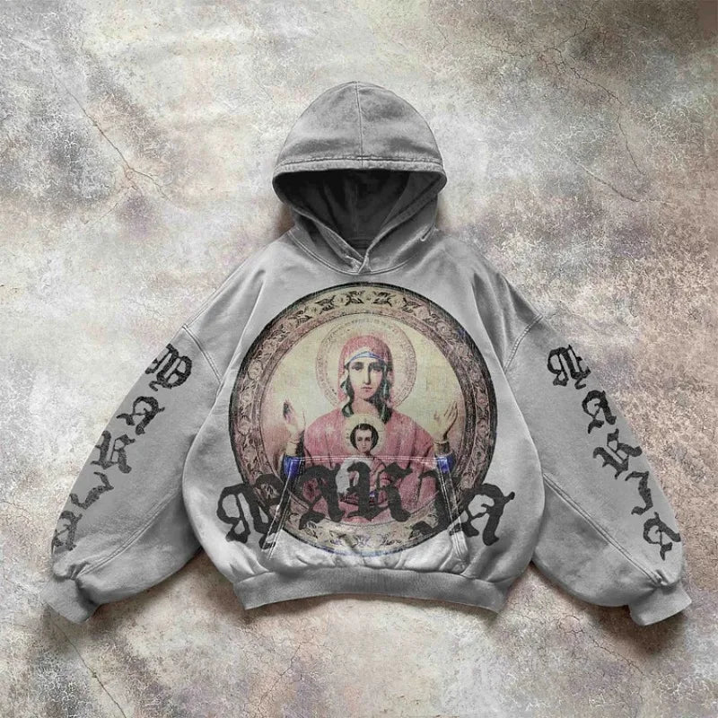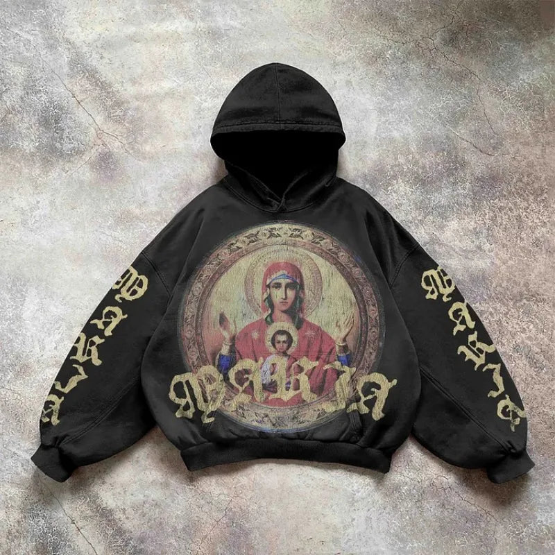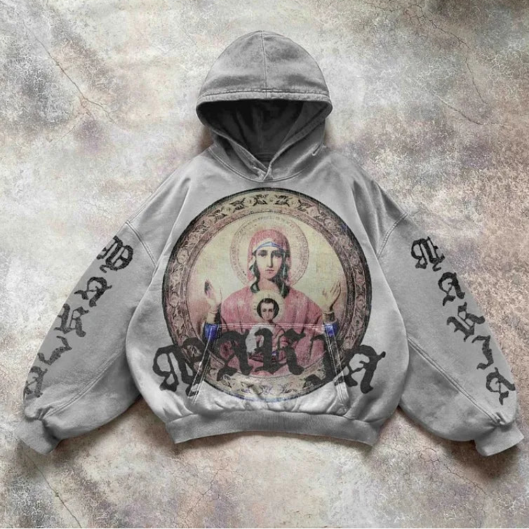 Aesthetic Pattern Printed Oversized Baggy Hoodie for Women