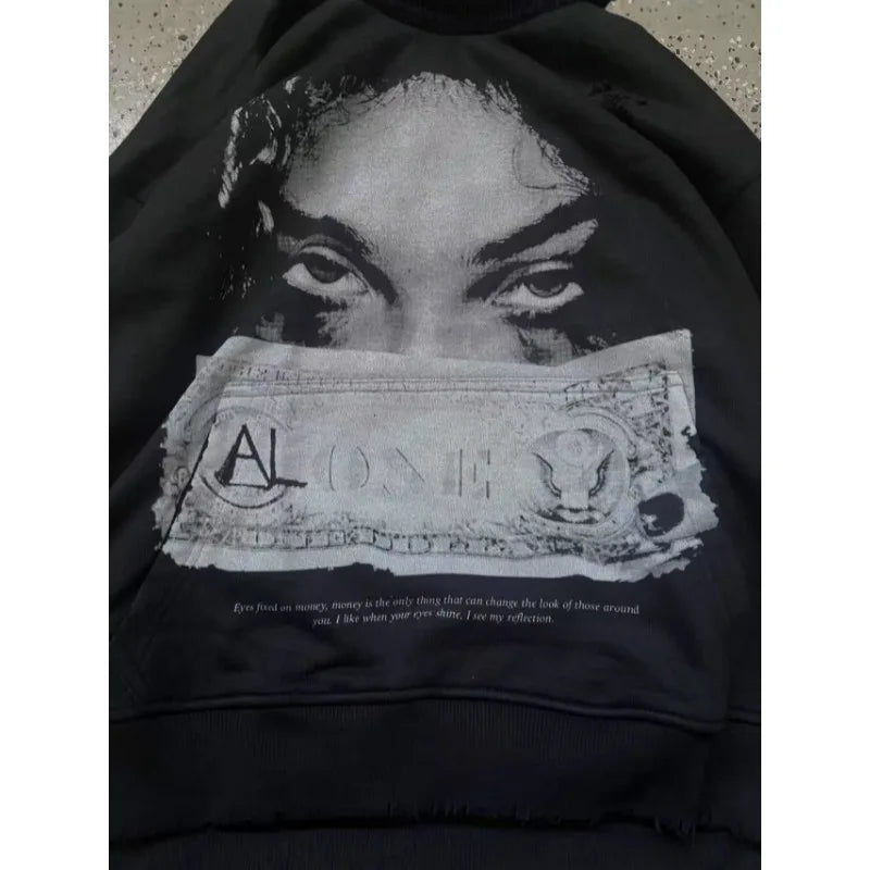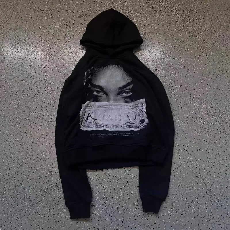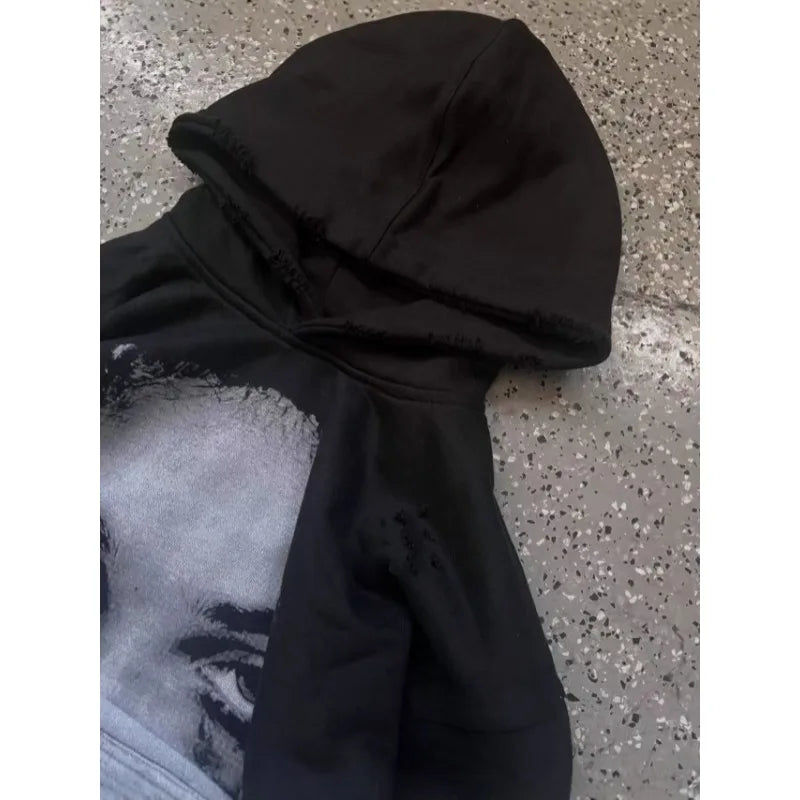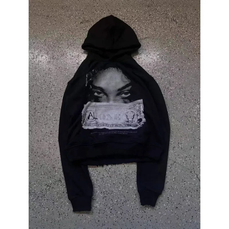 High Street American Style Face Print Oversized Hoodie for Women