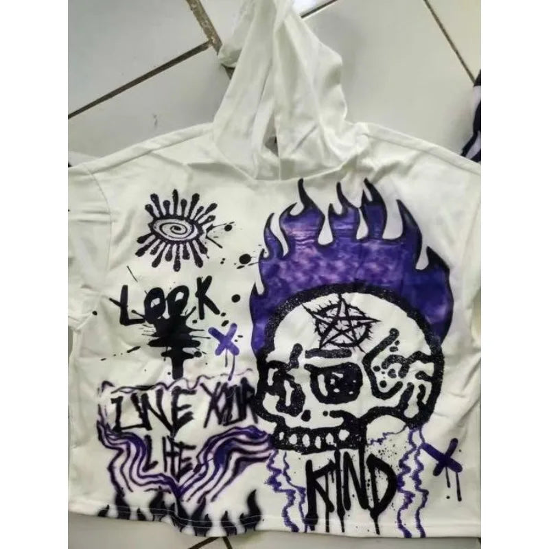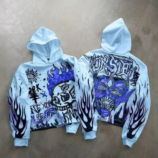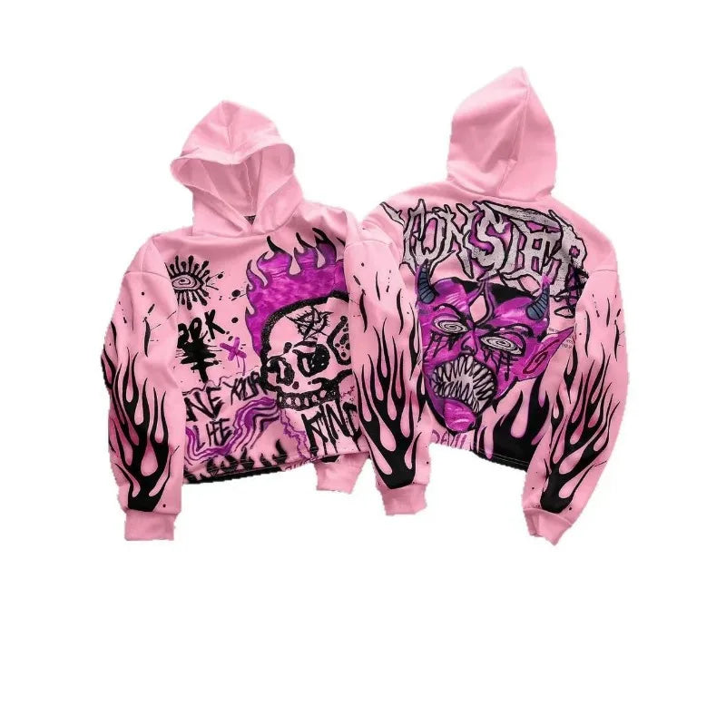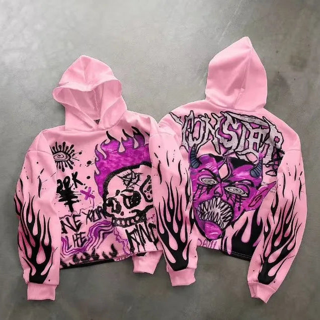 Hip-hop Cartoon Skull Print Long-sleeved Oversized Hoodie for Women