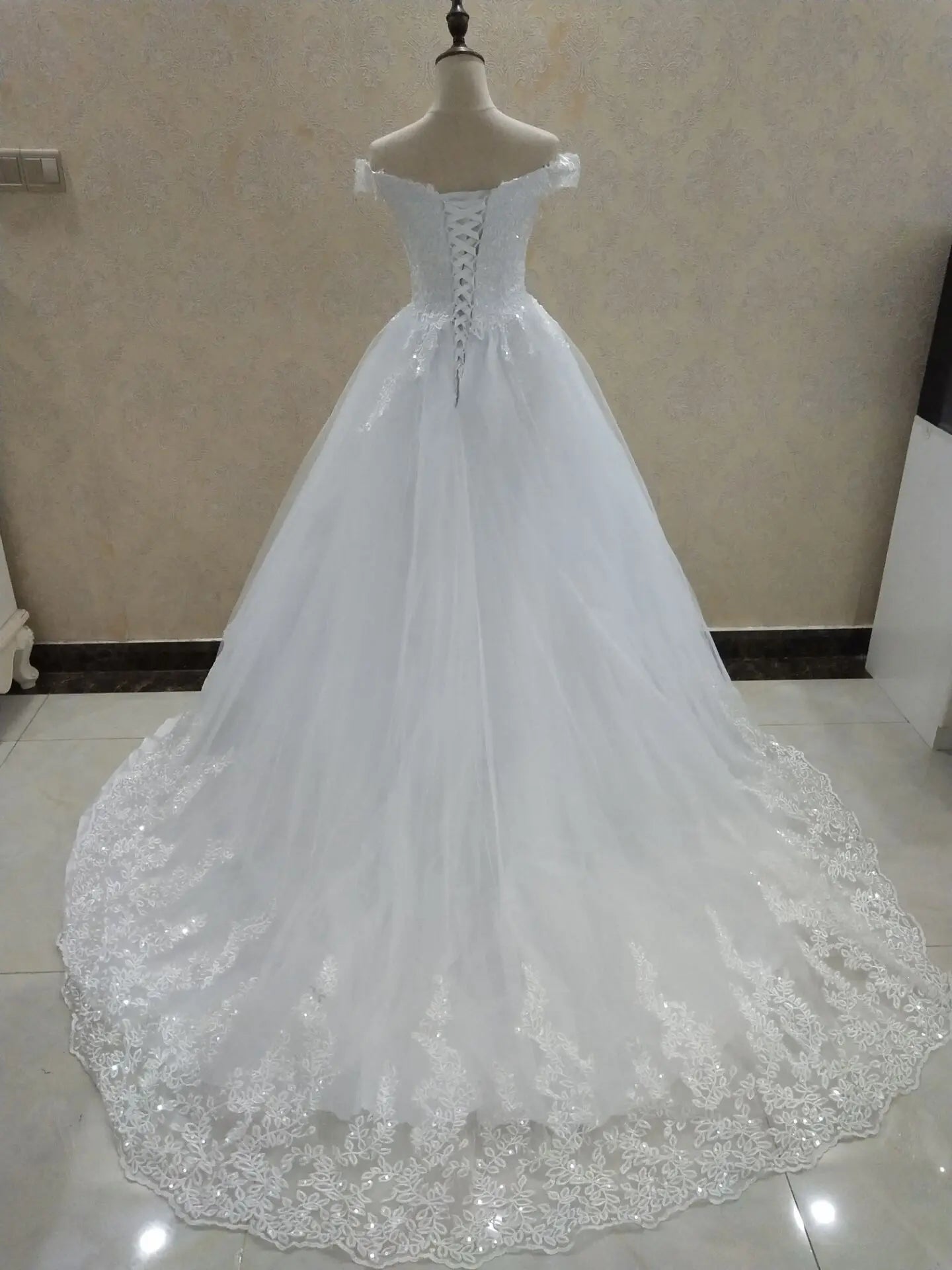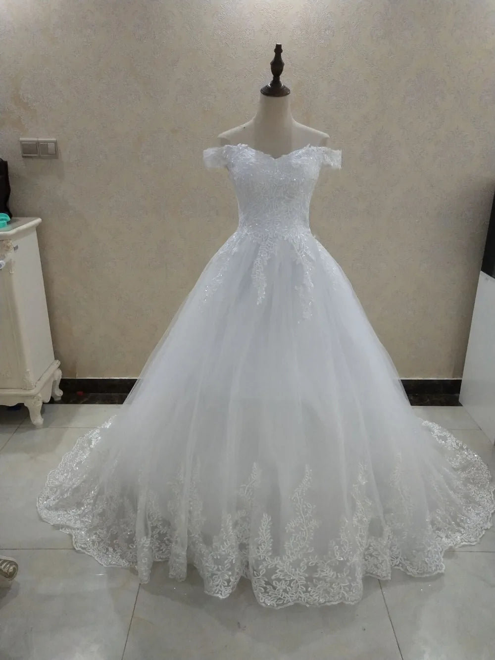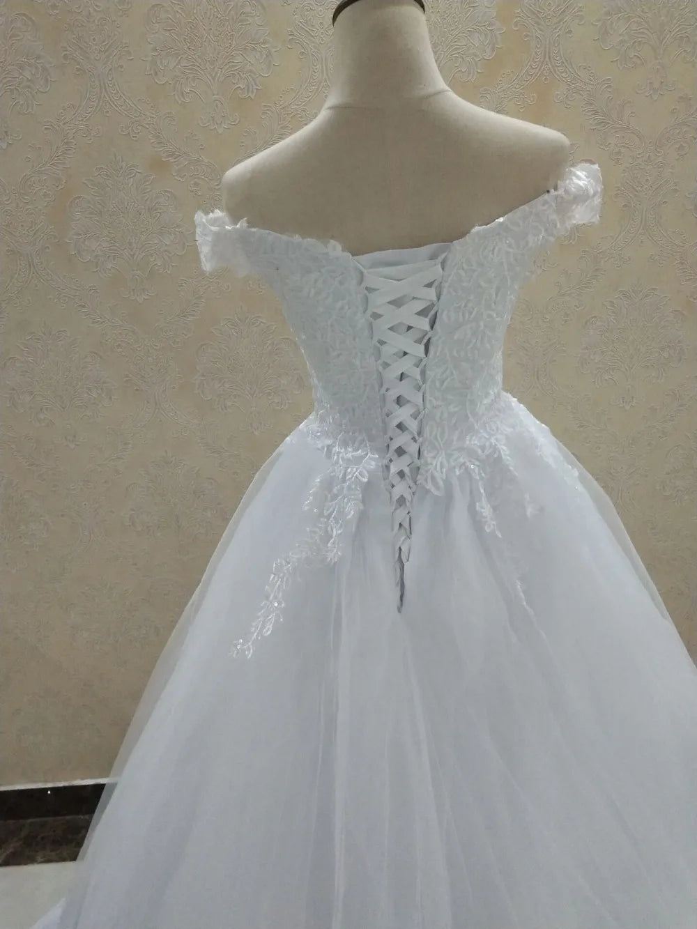 Off Shoulder Applique Lace Princess Wedding Gown Dress for Bride