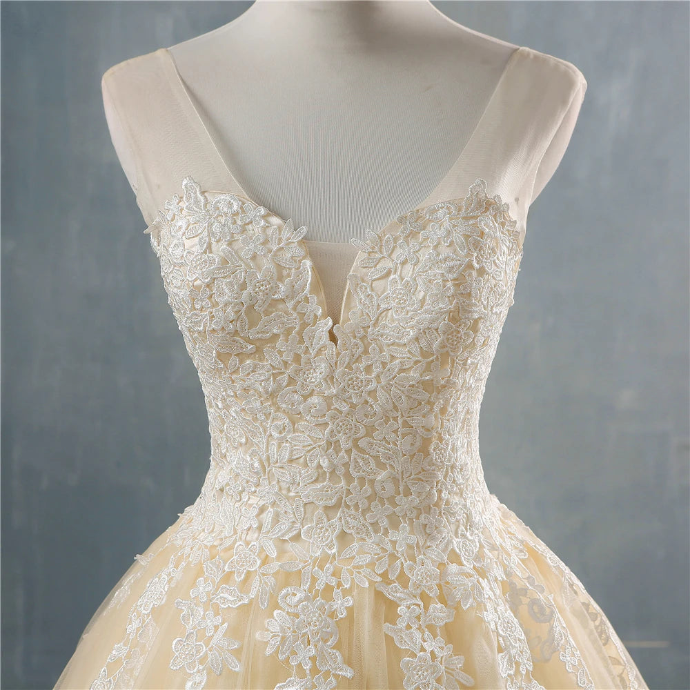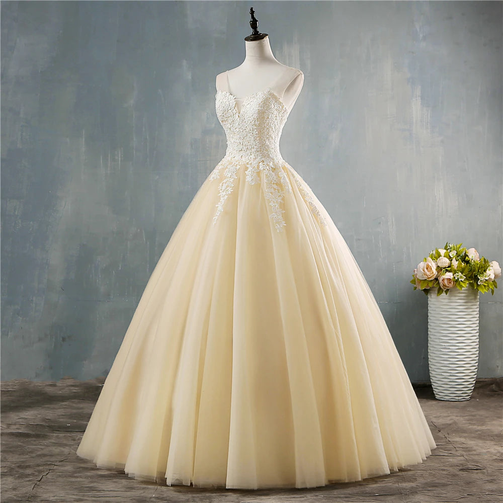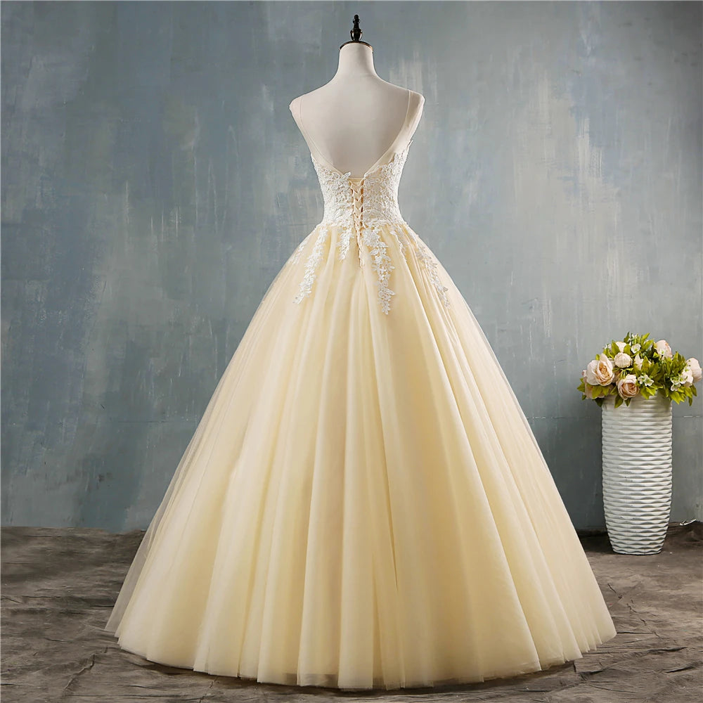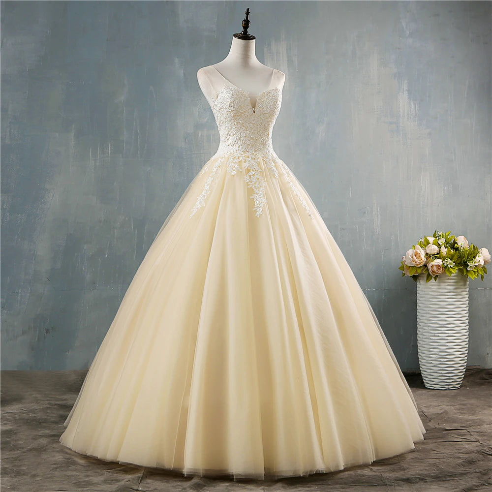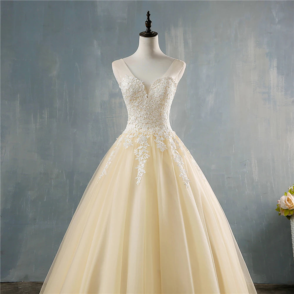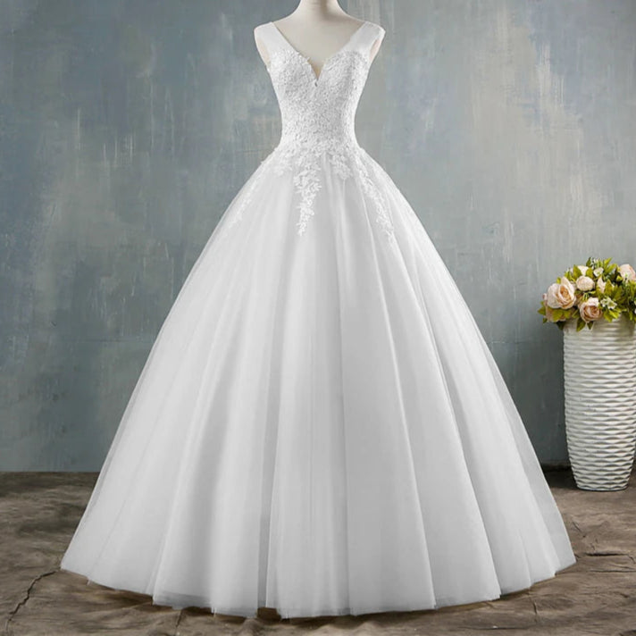 Plus Size Deep V Neck Lace Ball Gown Wedding Dress For Brides