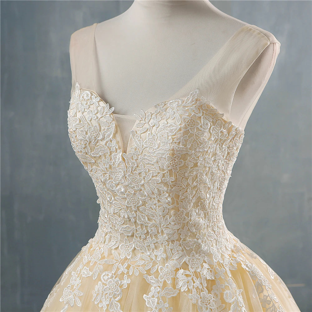 Bored with white wedding dresses? Looking for a stylish, colored ball gown for your special day. Opt for this fashionable laceworked wedding dress, which is available in pink, champagne, blue and light orange shades for an extraordinary style. The polyester keeps you cool and comfortable. Shop now!