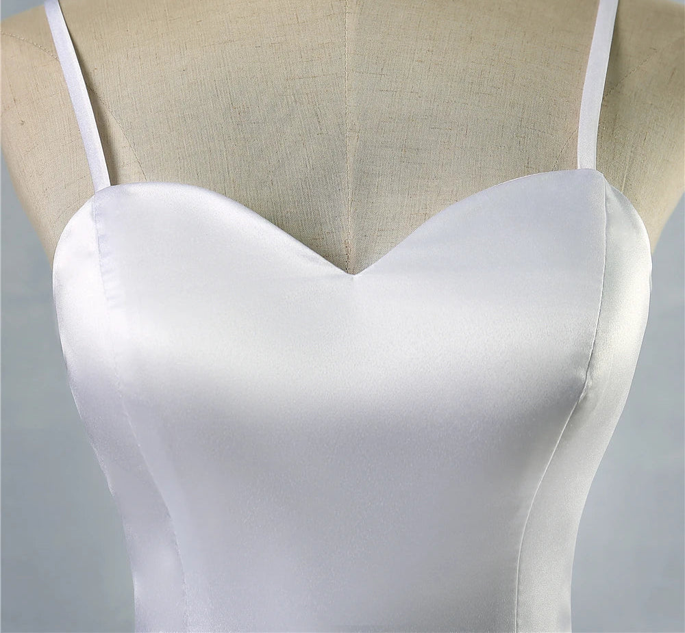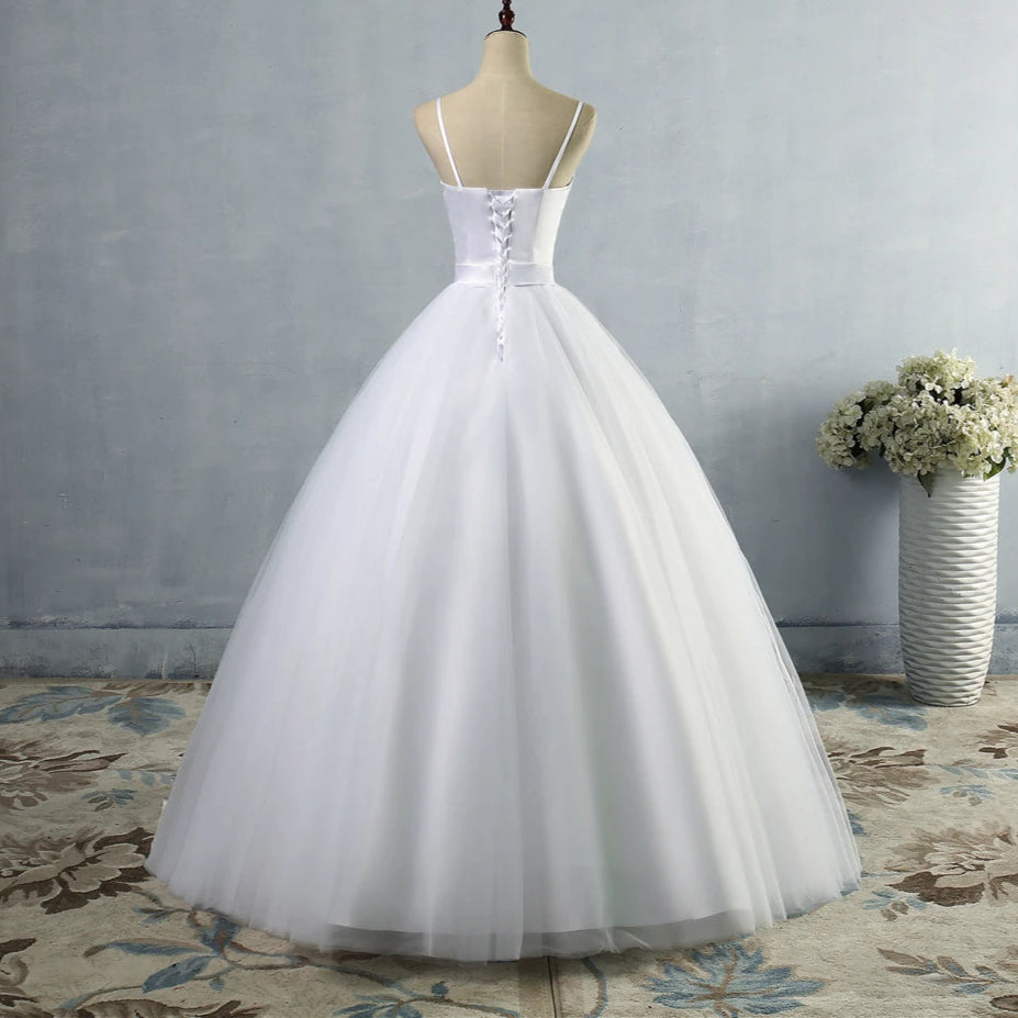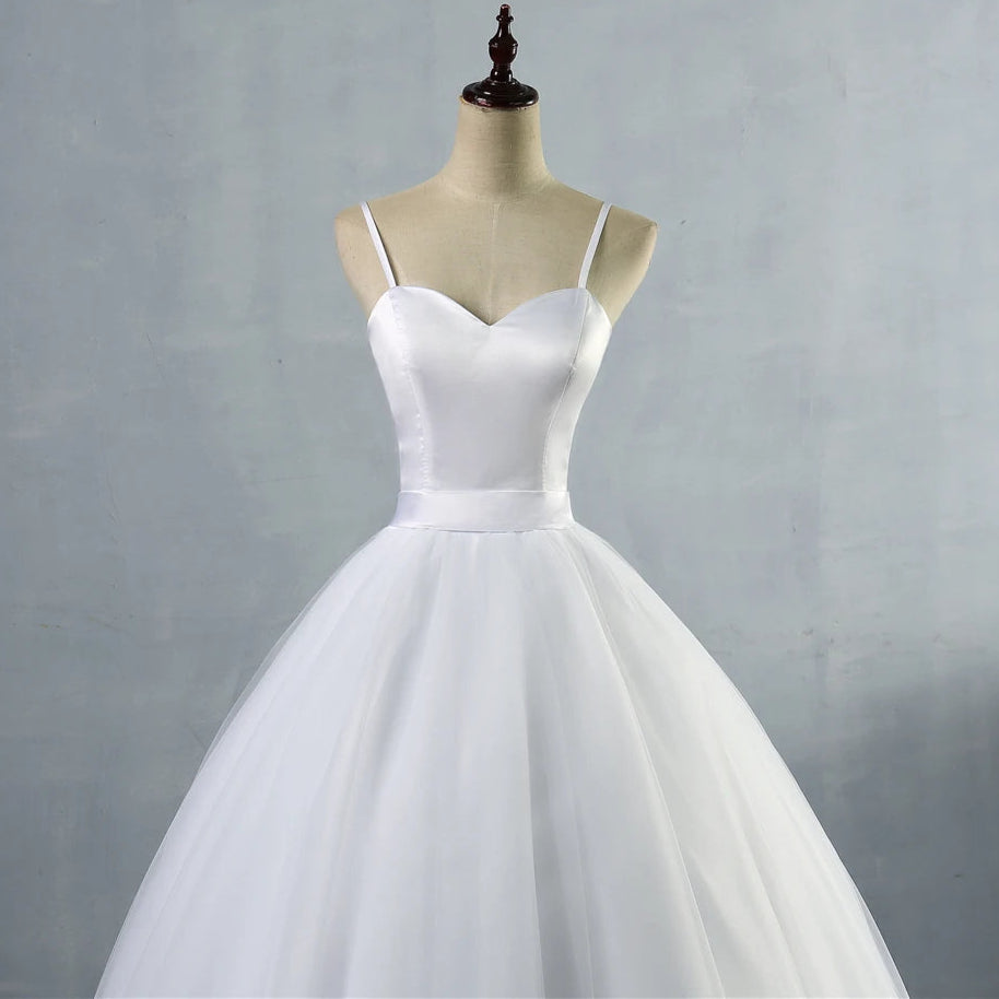 Simple Tulle Sweetheart Spaghetti Strap Beach Wedding Gown Dress