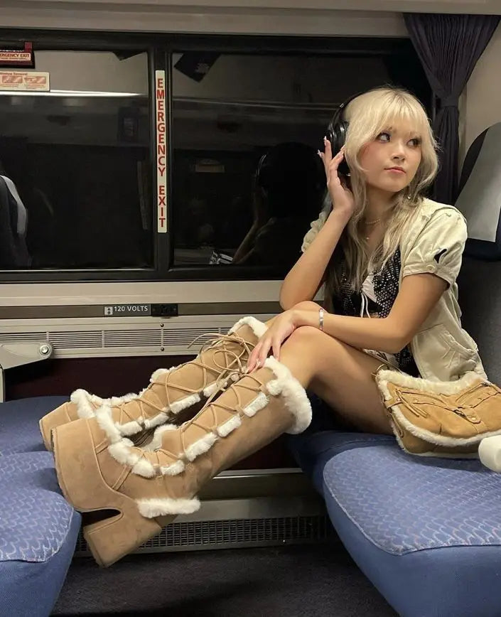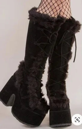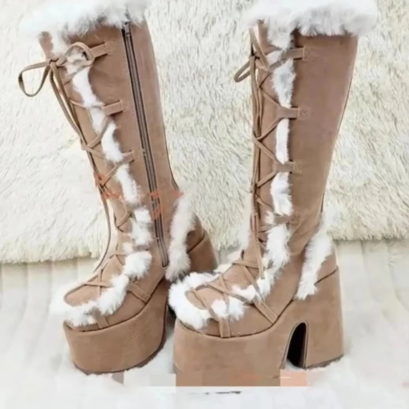 Women's Platform Wedge High Heel Plush Warm Non-slip Mid Calf Snow Boots
