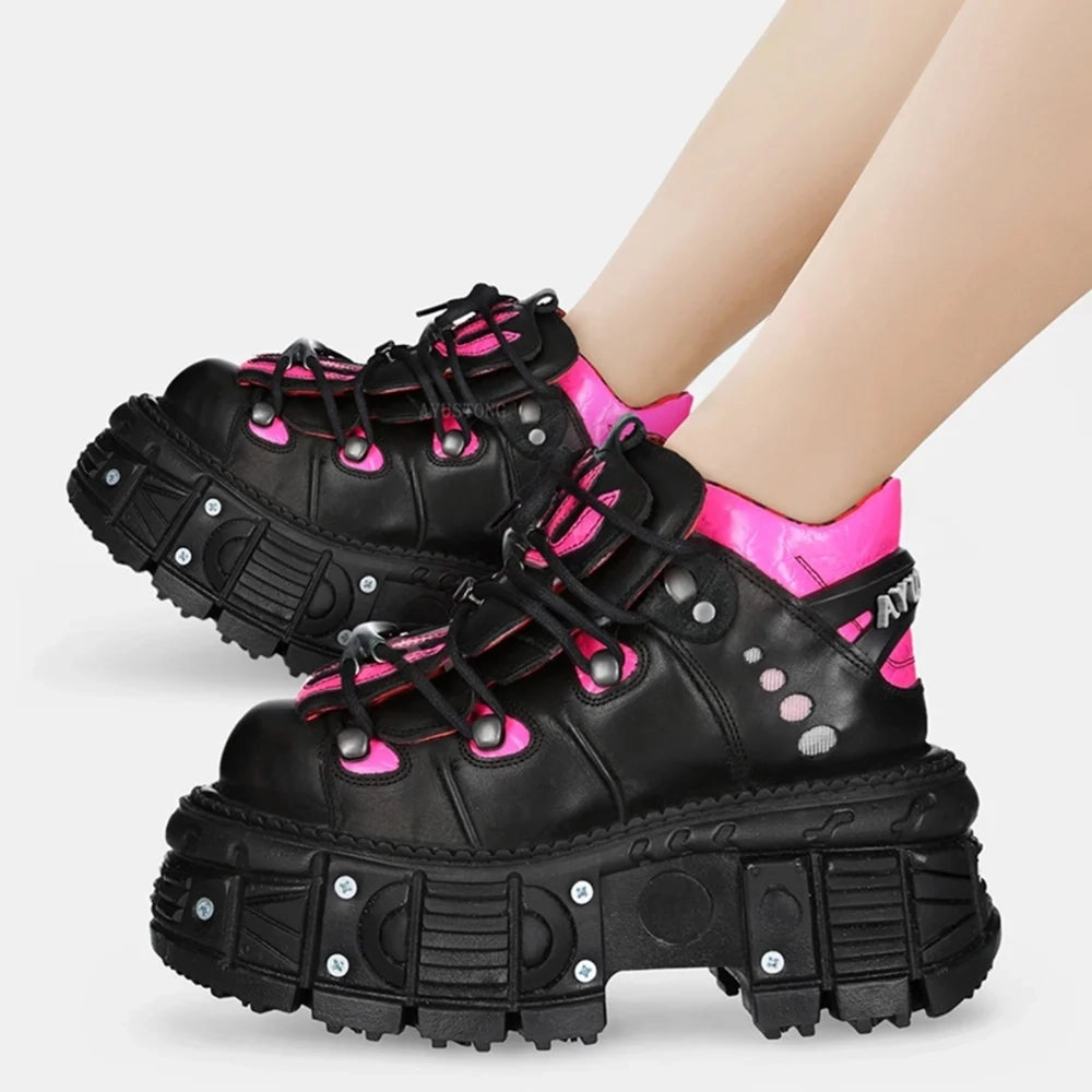product: Punk Rivet Thick Sole Y2K Motorcycle Boots